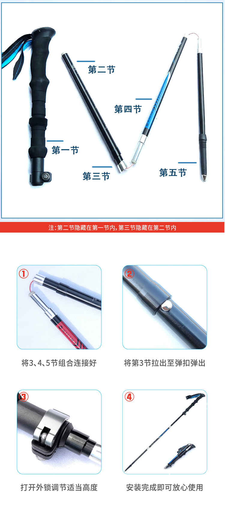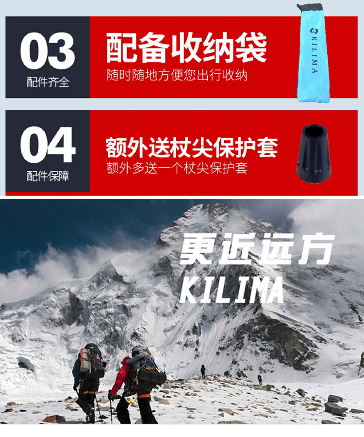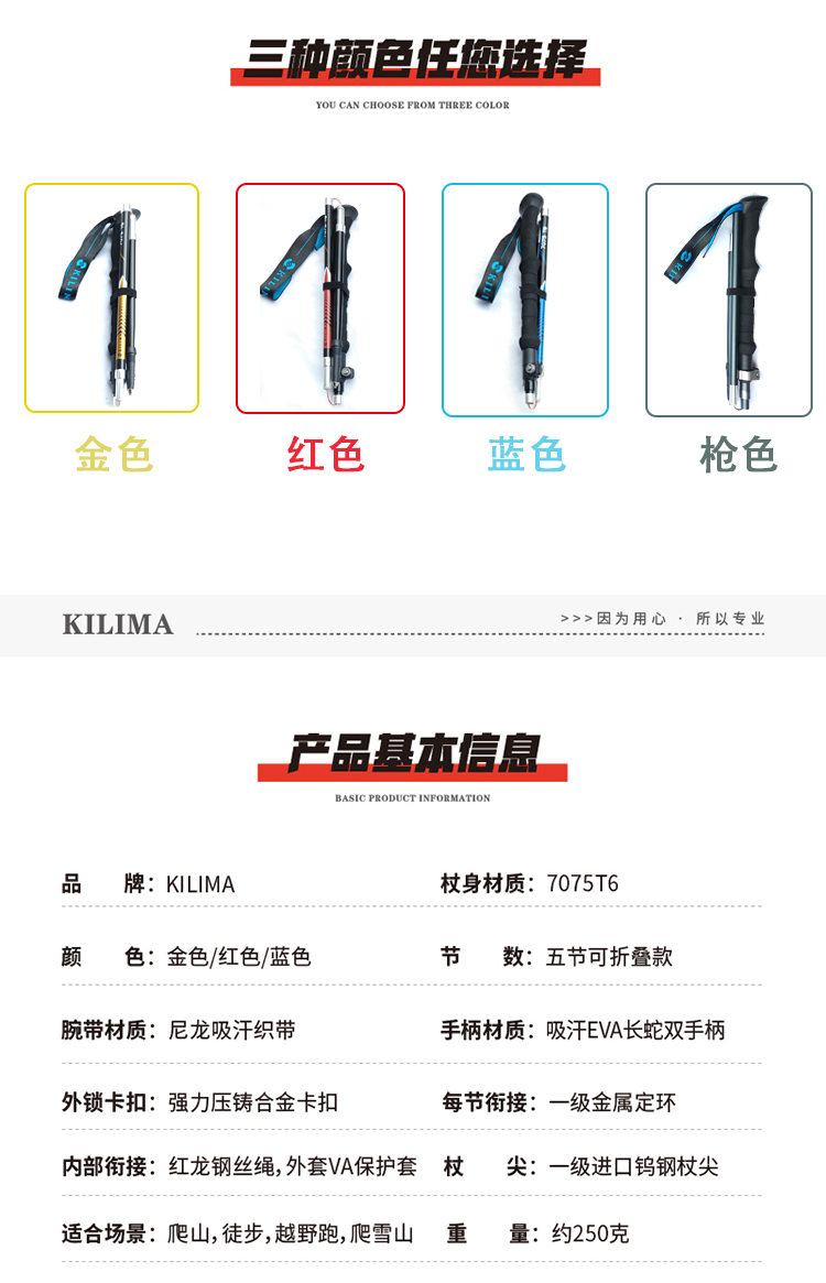 KILIMA乞力馬A01摺疊款登山杖金屬卡扣超輕直柄徒步爬山戶外雪山