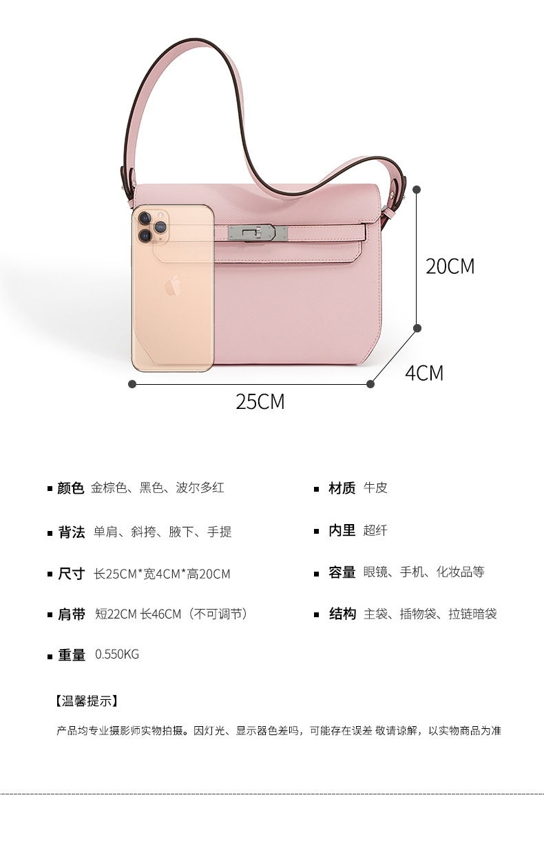 真皮复古凯莉包女秋冬高级感通勤百搭腋下邮差包大容量单肩斜挎包