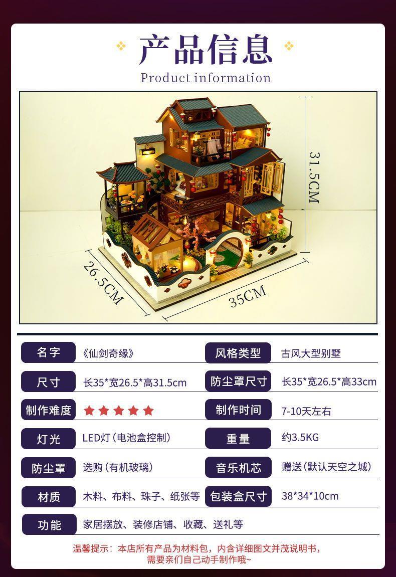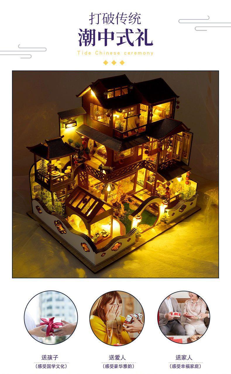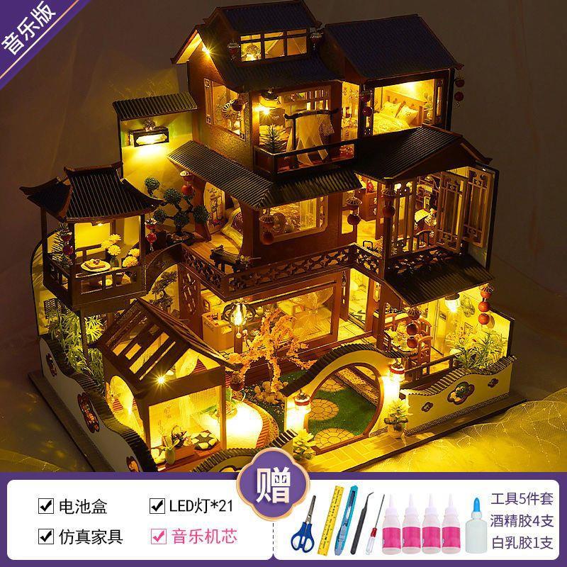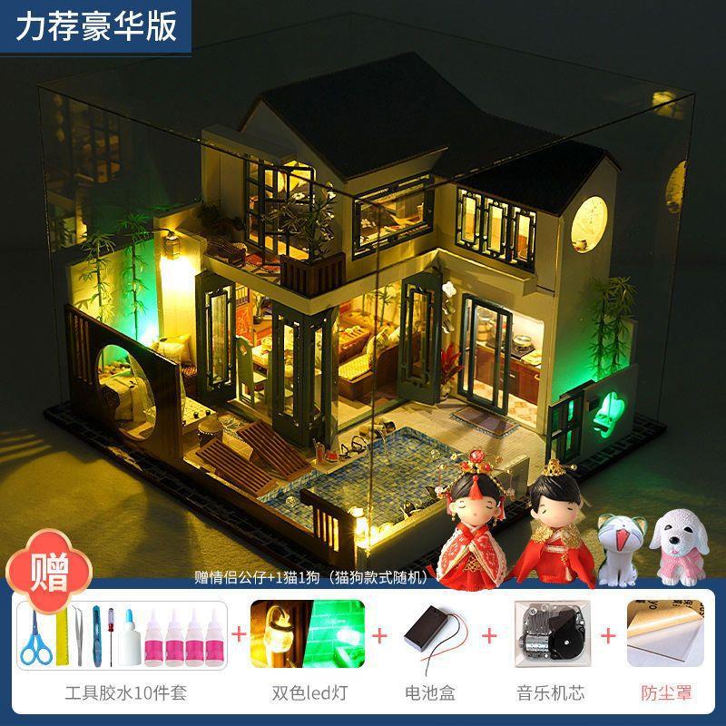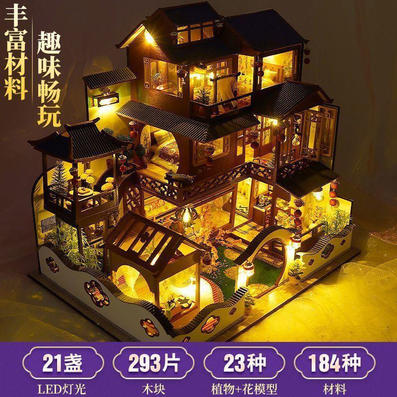 diy手工小屋古风房子大型拼装模型别墅儿童玩具生日礼物送男女生