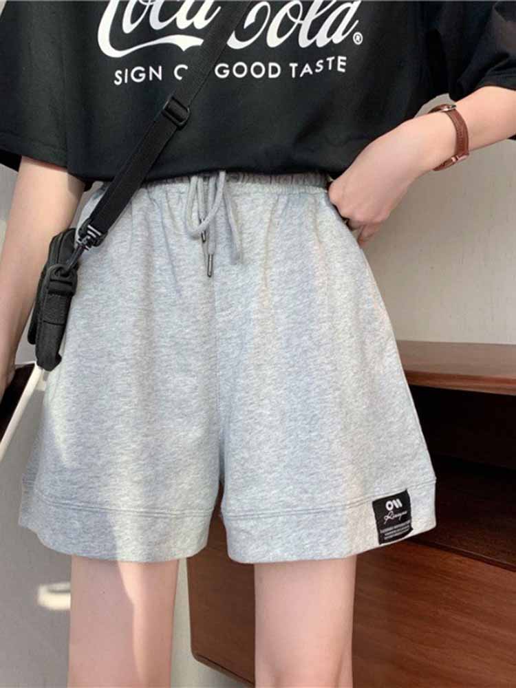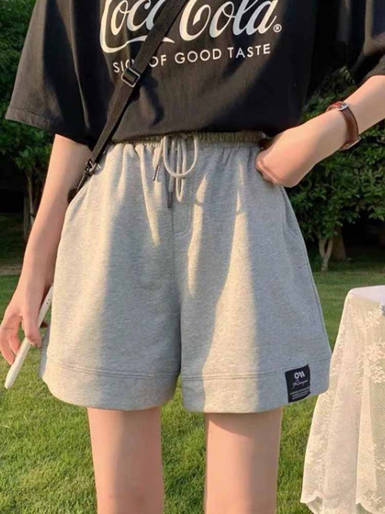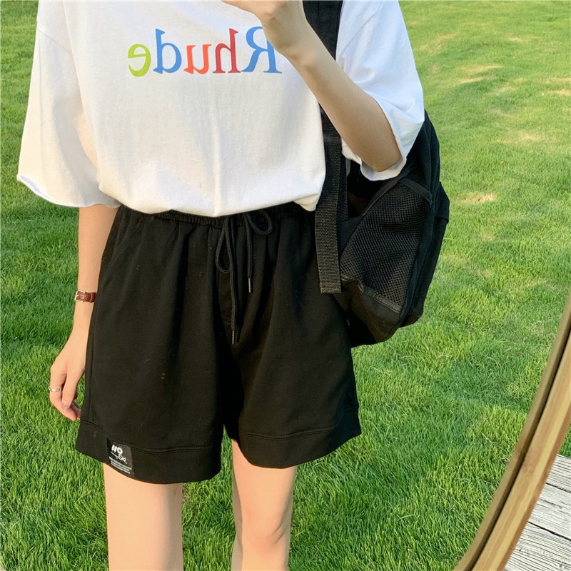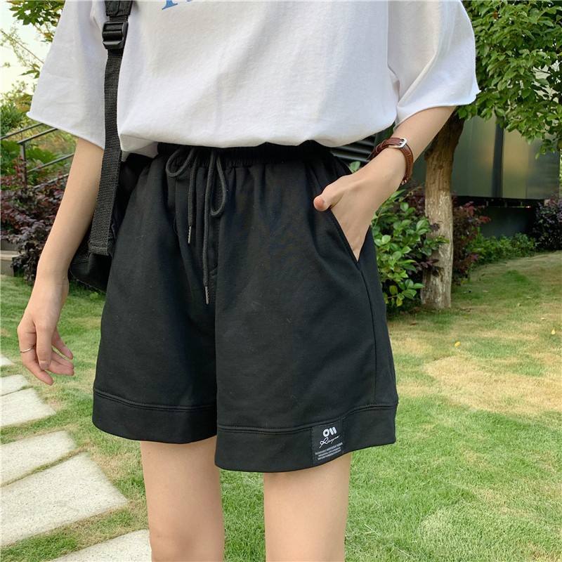 黑色運動風短褲女裝秋季新款高腰顯瘦休閒褲外穿寬鬆闊腿褲子ins