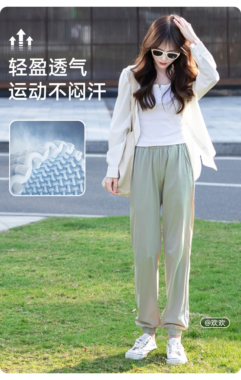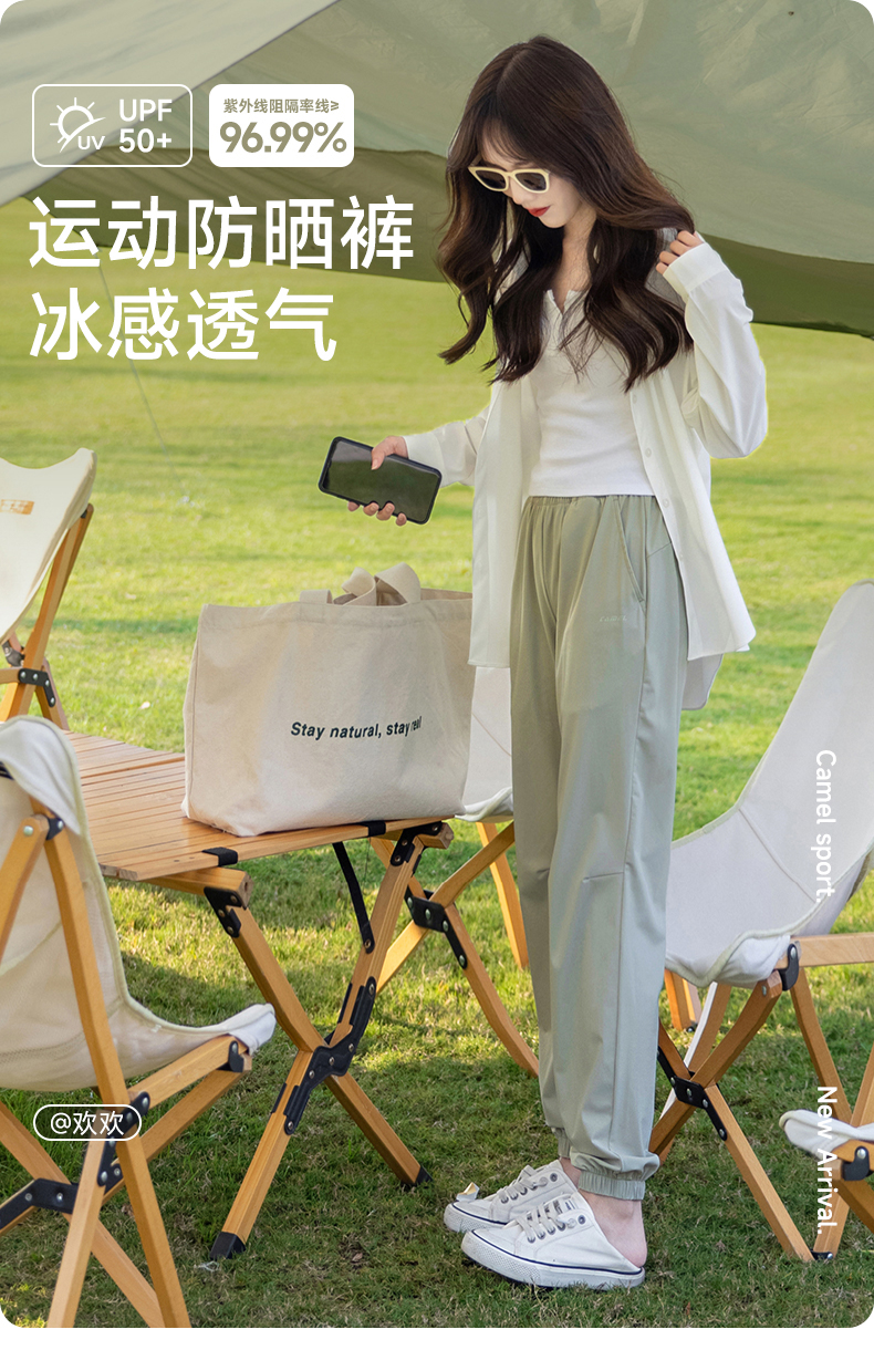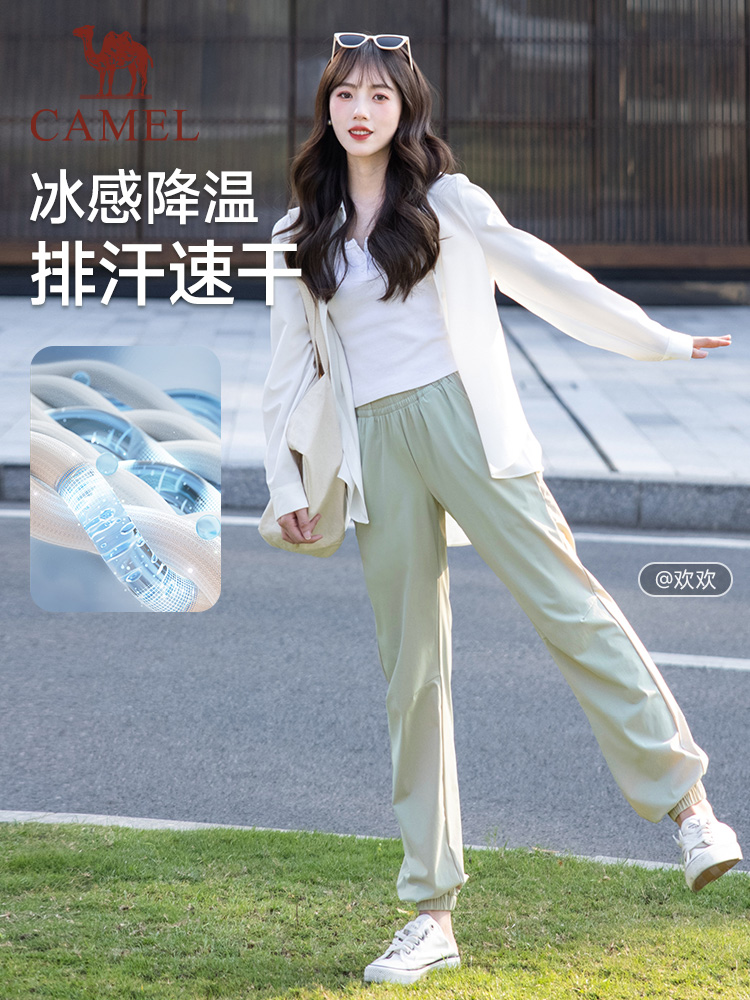 小紅書同款駱駝防曬褲速乾褲女夏季冰絲涼感透氣束腳運動戶外長褲