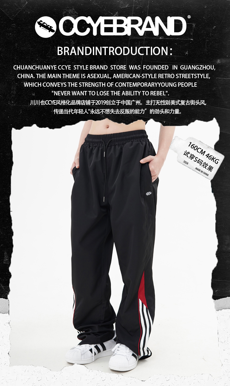 CCYE美式高街薄款街頭運動褲男女寬鬆直筒春夏季百搭休閒復古潮牌