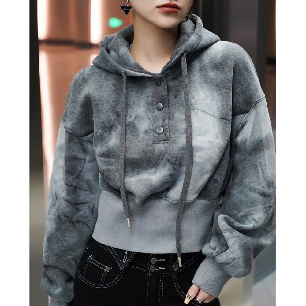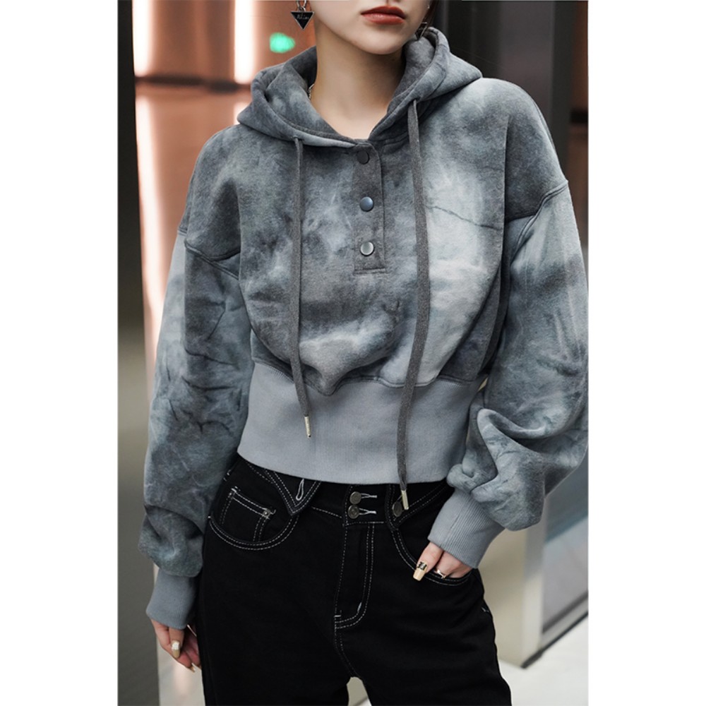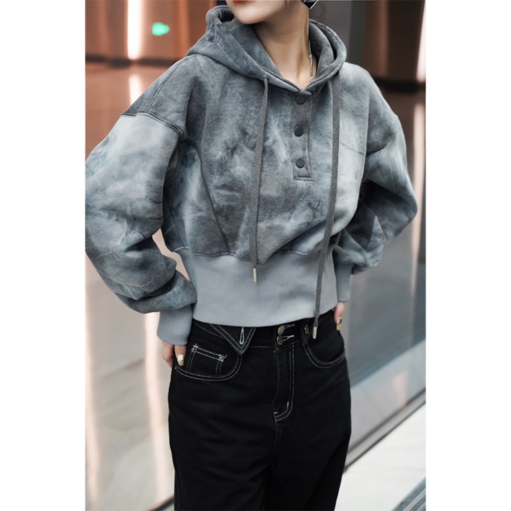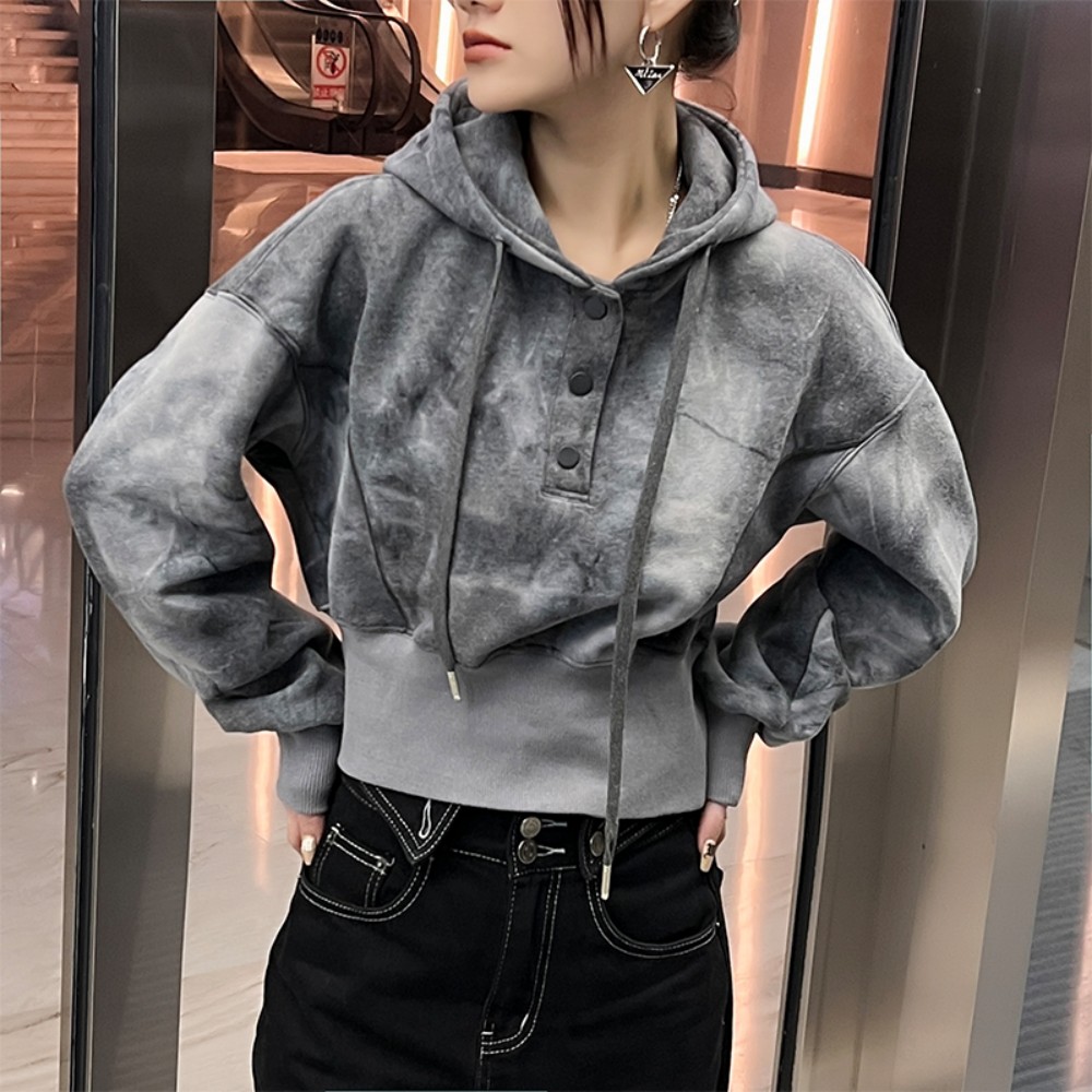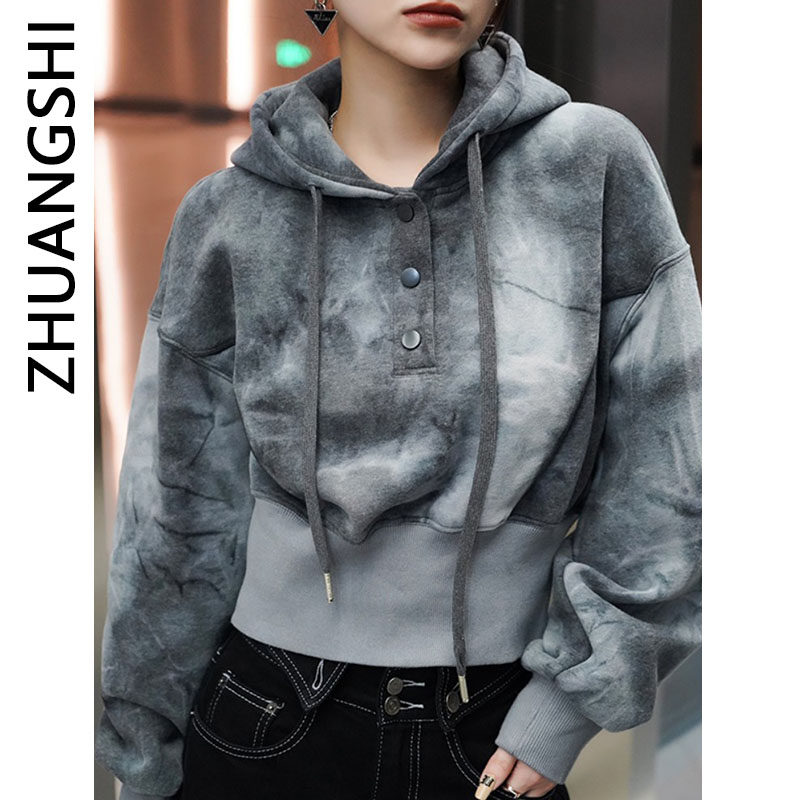獨特別致小眾設計連帽運動衫2023春秋季高級感加厚短款小個子上衣女