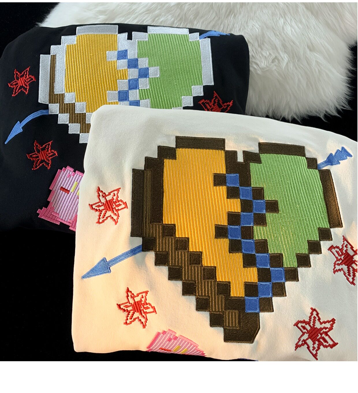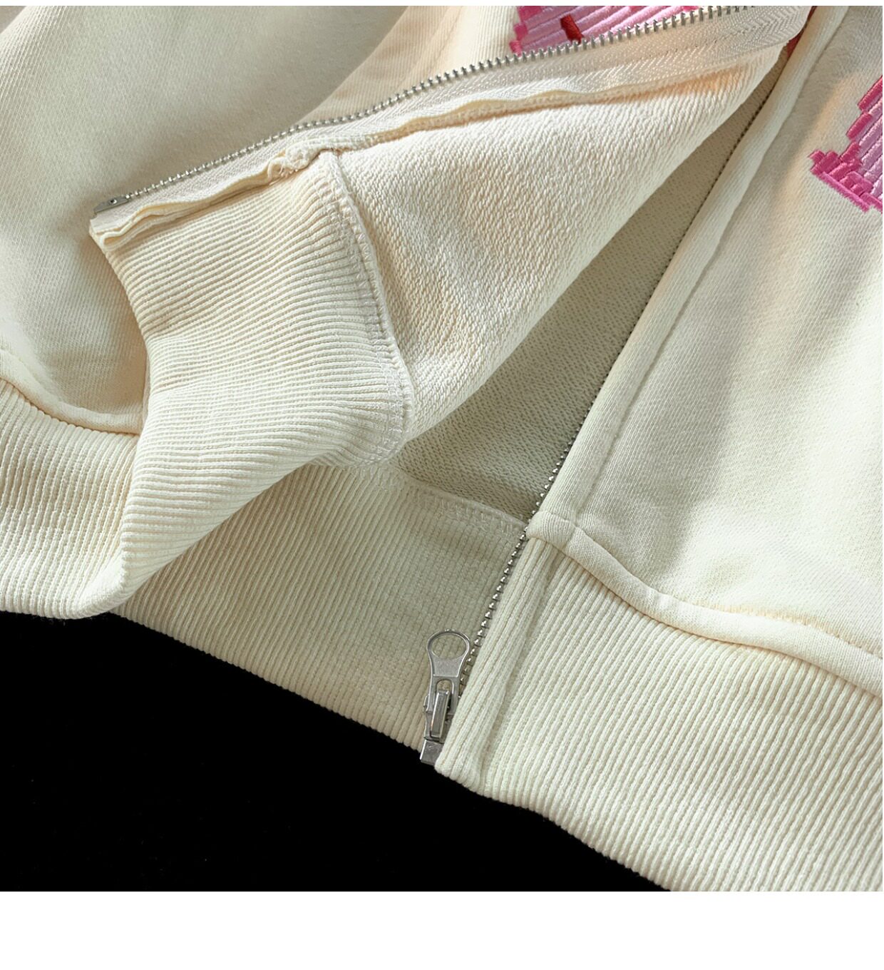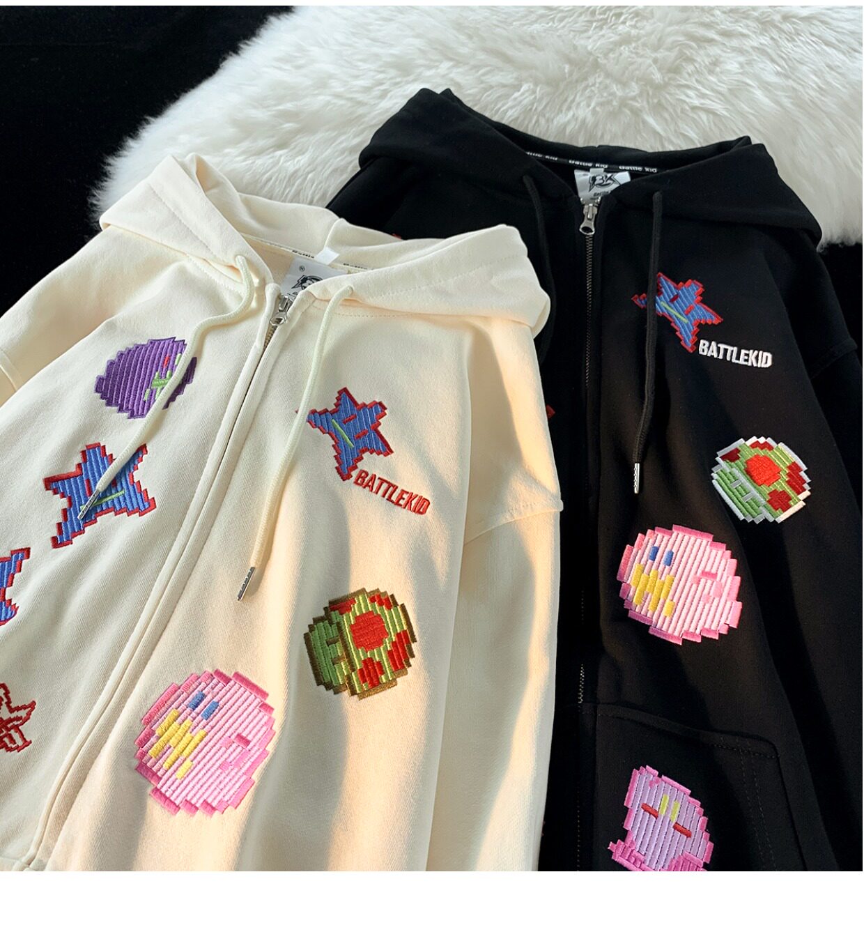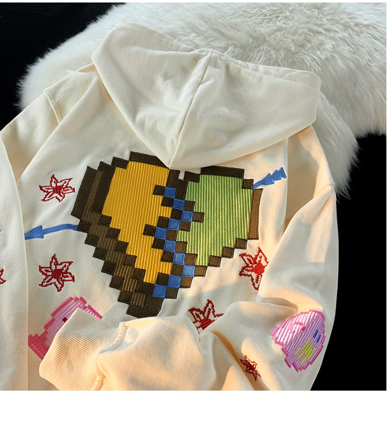JIANYINZ可愛卡通塗鴉刺繡連帽開衫衛衣男女慵懶風拉鍊情侶外套潮