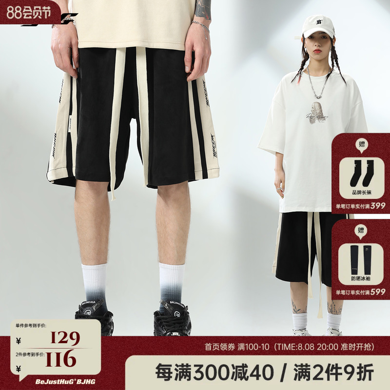 【張晚意同款】BJHG夏麂皮絨美式短褲男女潮牌寬鬆休閒運動沙灘褲