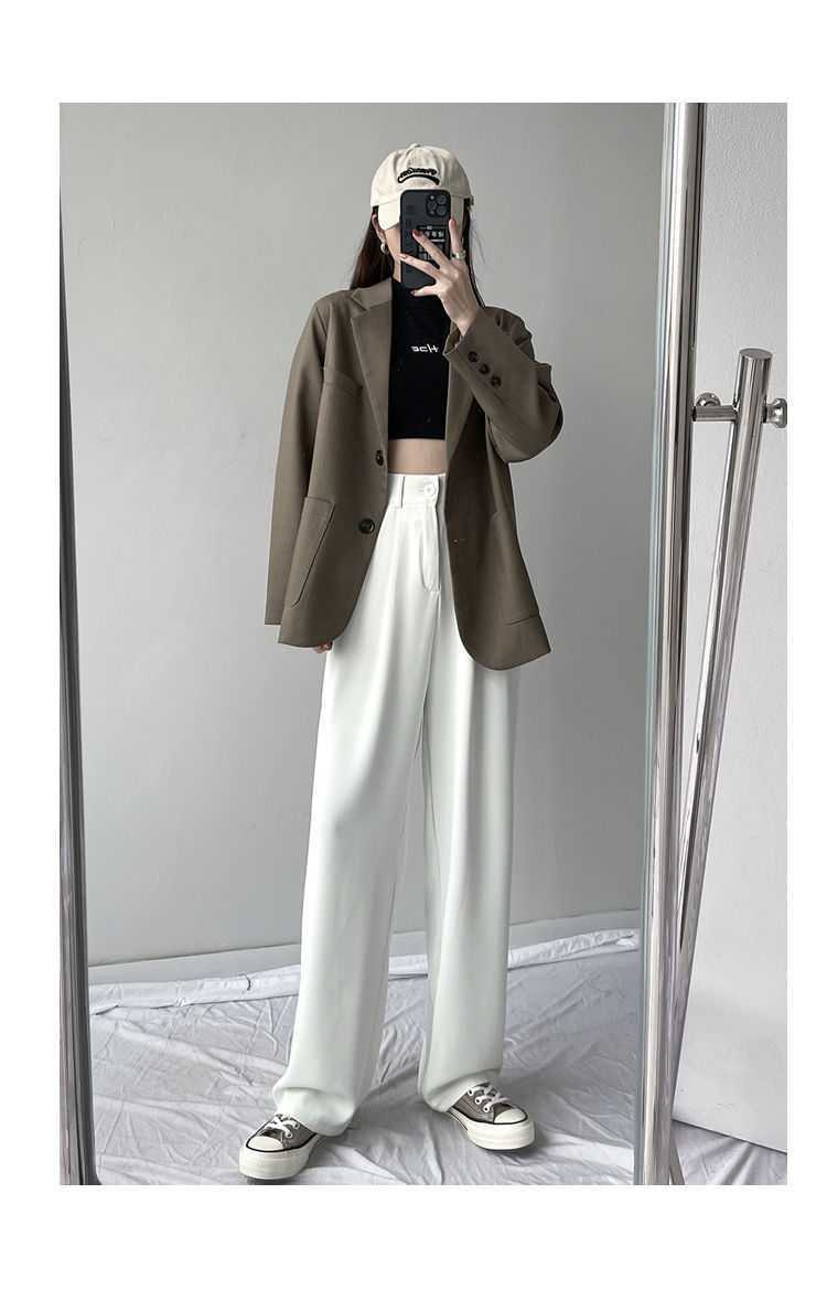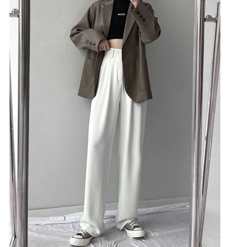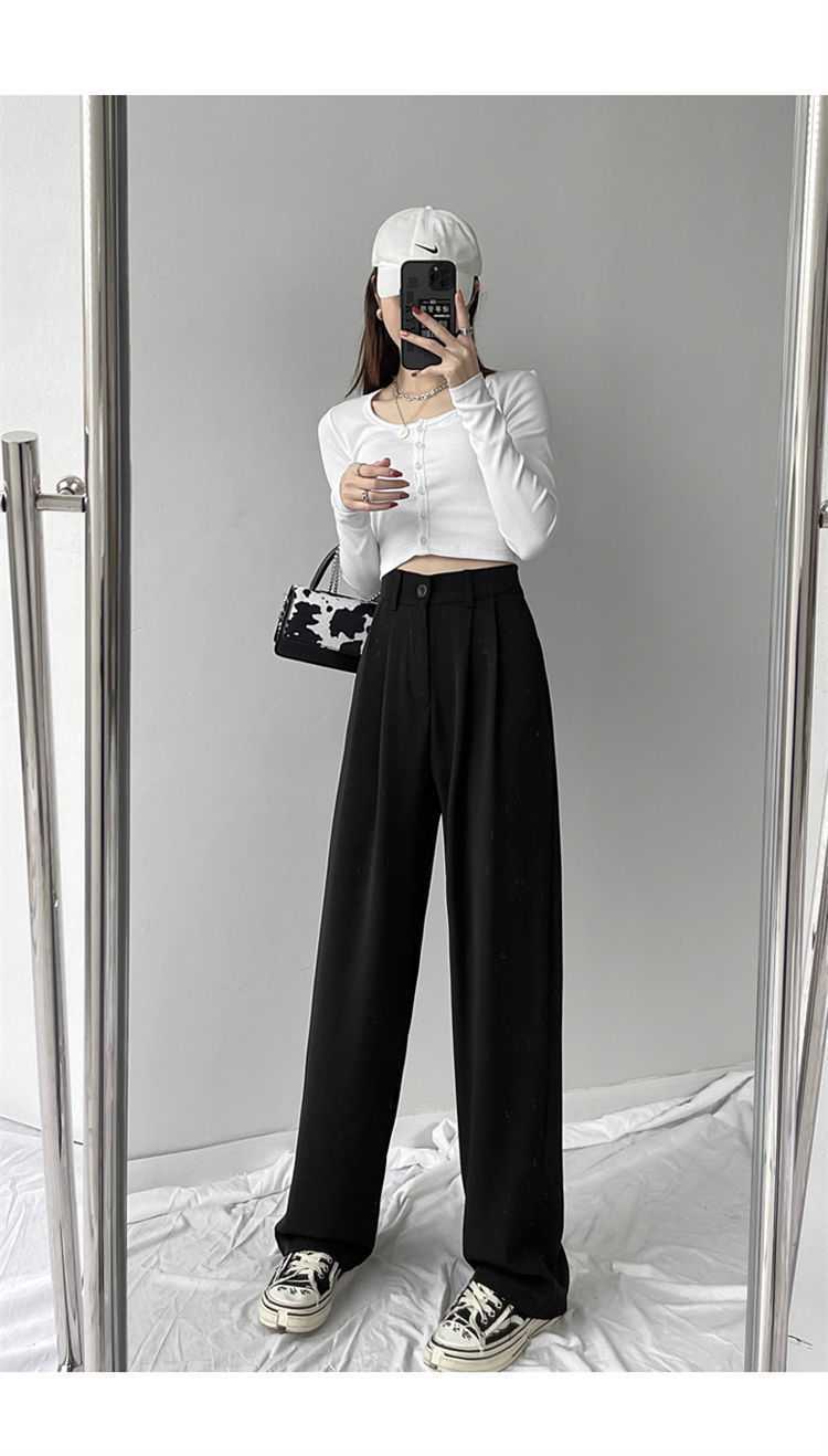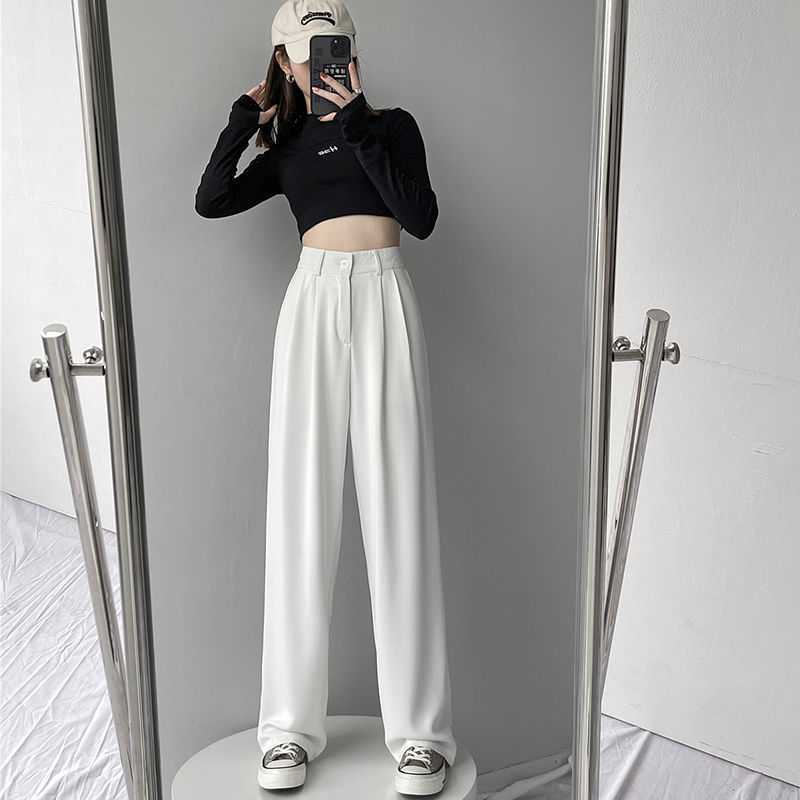 秋季新款高腰西装裤女宽松直筒裤子垂坠感拖地裤白色阔腿裤矮个子