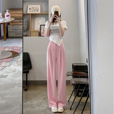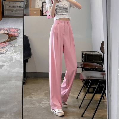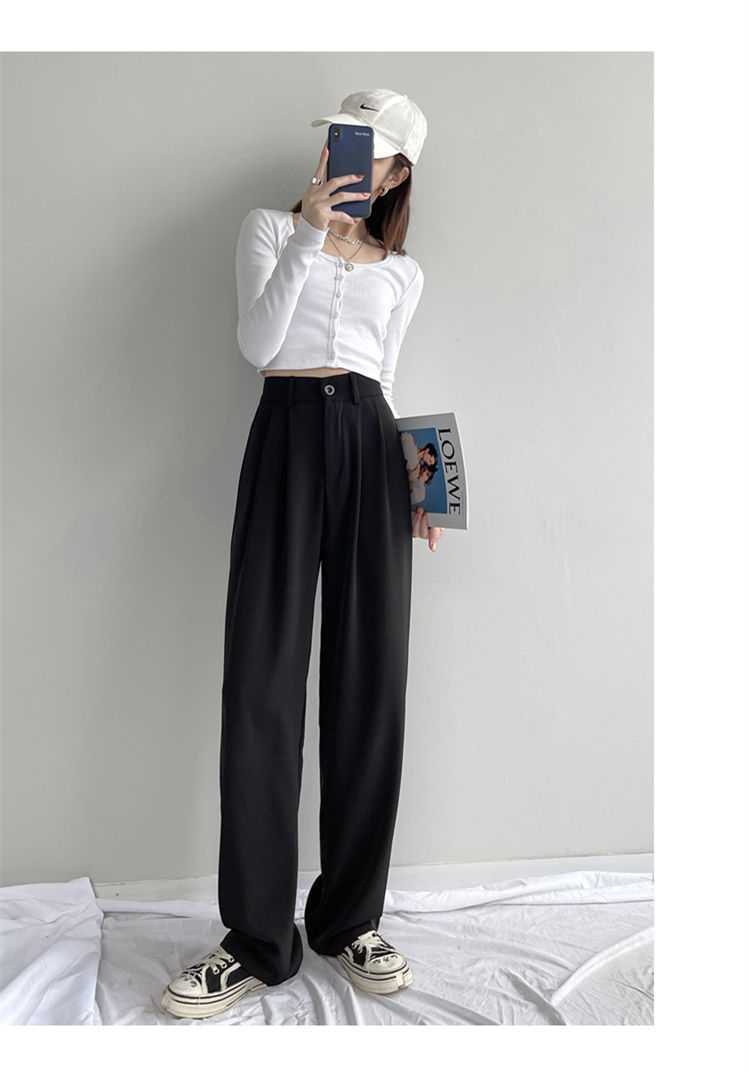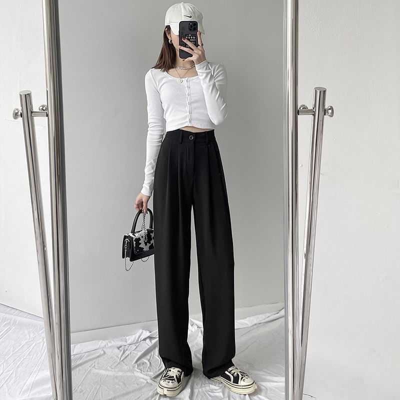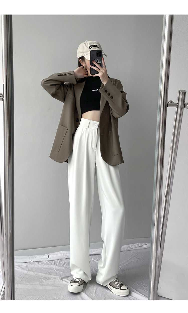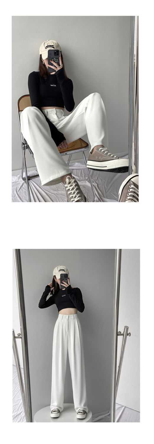秋季新款高腰西装裤女宽松直筒裤子垂坠感拖地裤白色阔腿裤矮个子