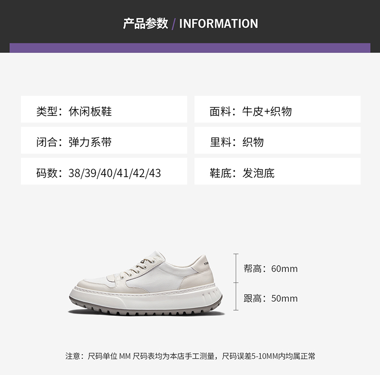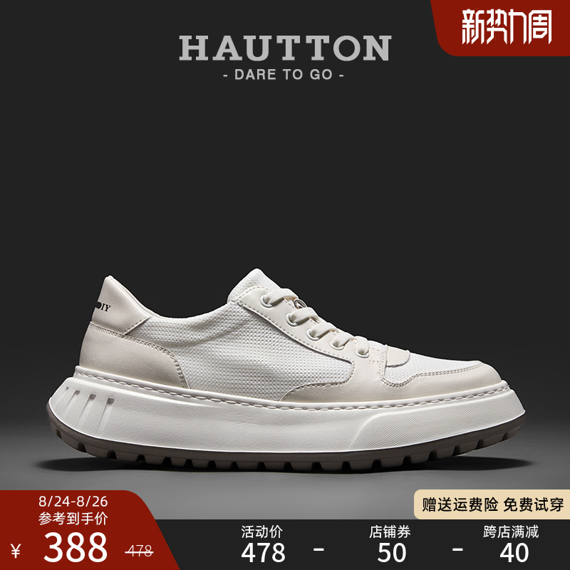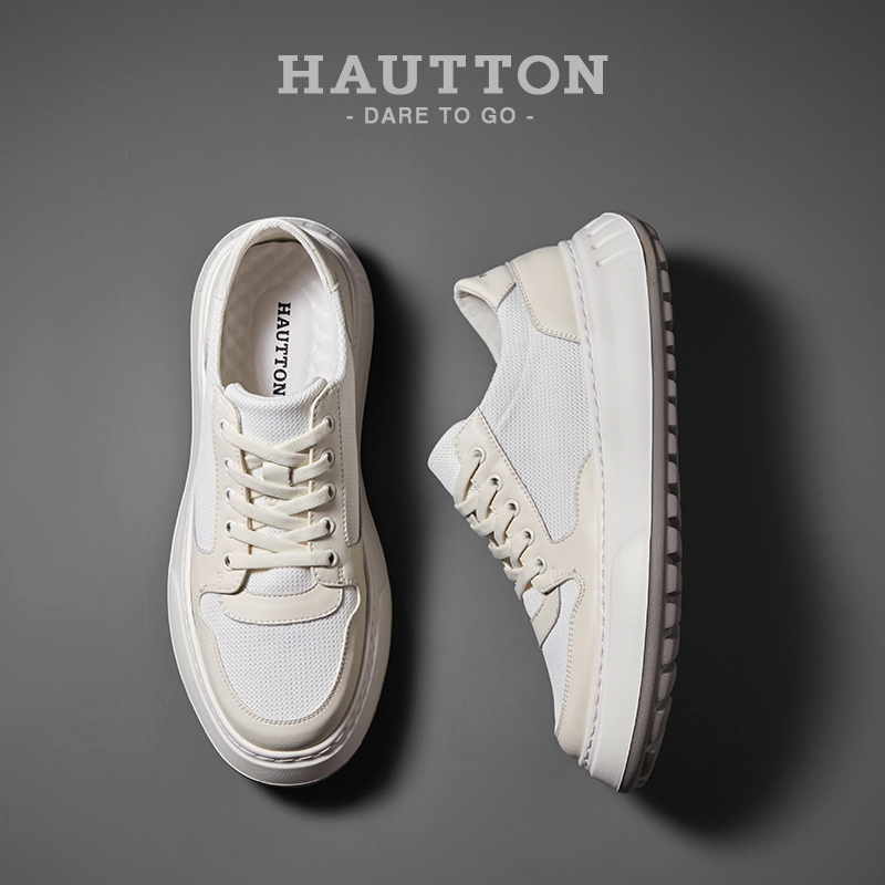 HT皓頓鞋子男夏季新款厚底小白鞋百搭休閒運動鞋透氣輕便白色板鞋