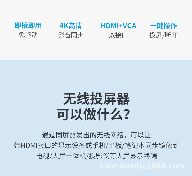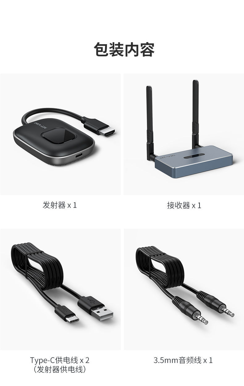 颜色 发送端(不可单独用),发送+接收一套,接收端(可单独手机无线投屏使用)