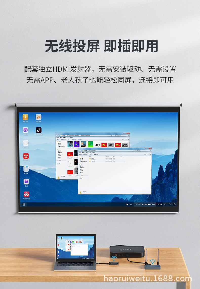 200米高清HDMI无线传输器wifi投屏同屏器手机电脑摄像机视频展台
