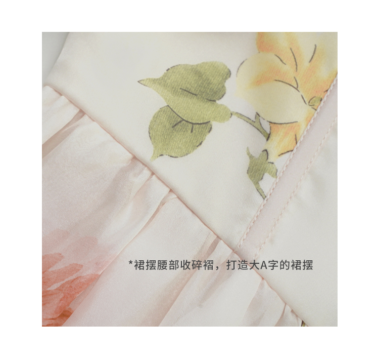 裙摆在腰部收碎褶,打造大A字的裙摆