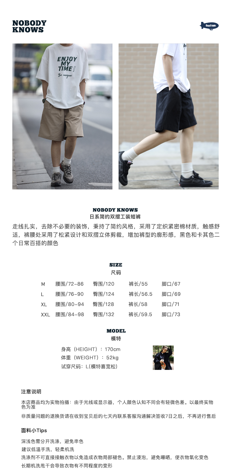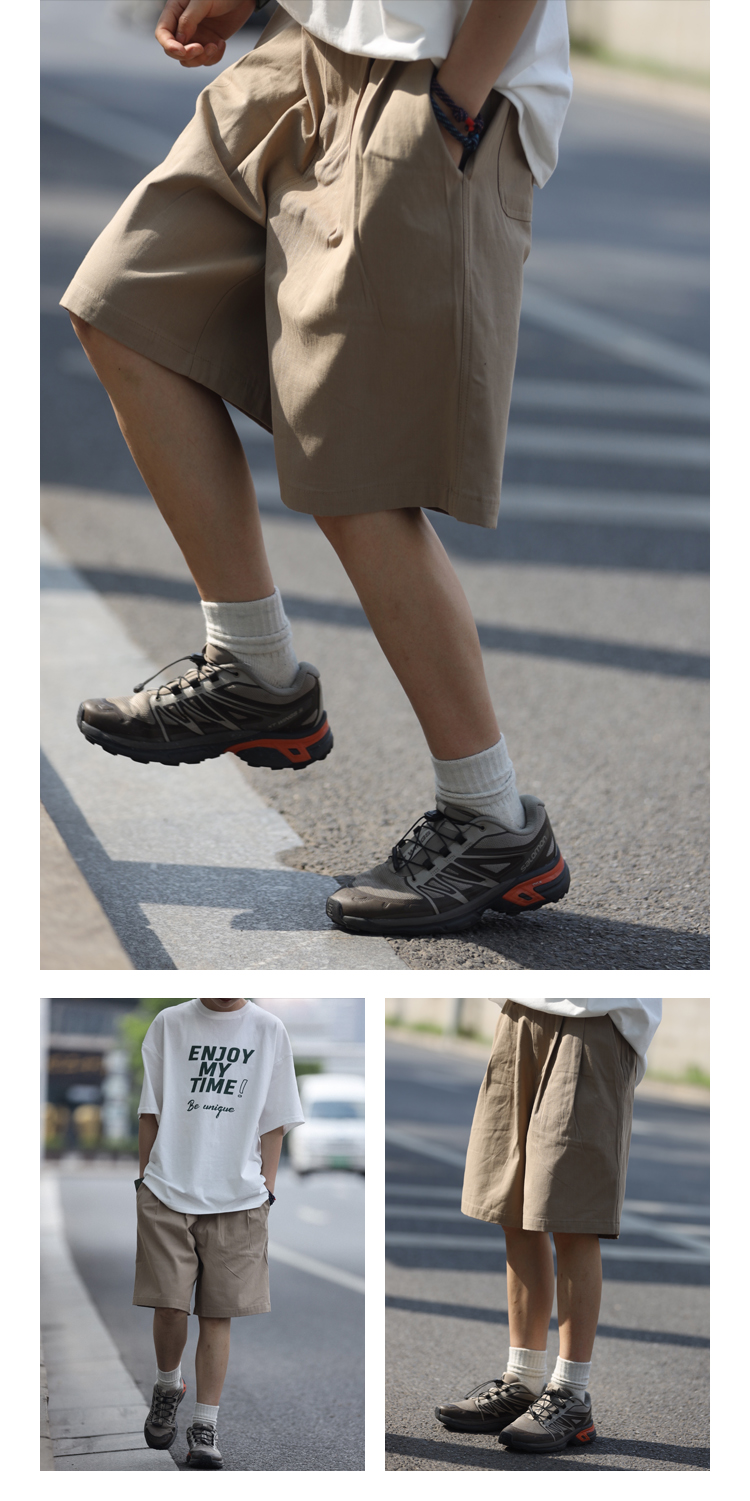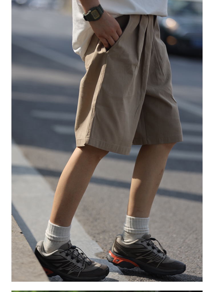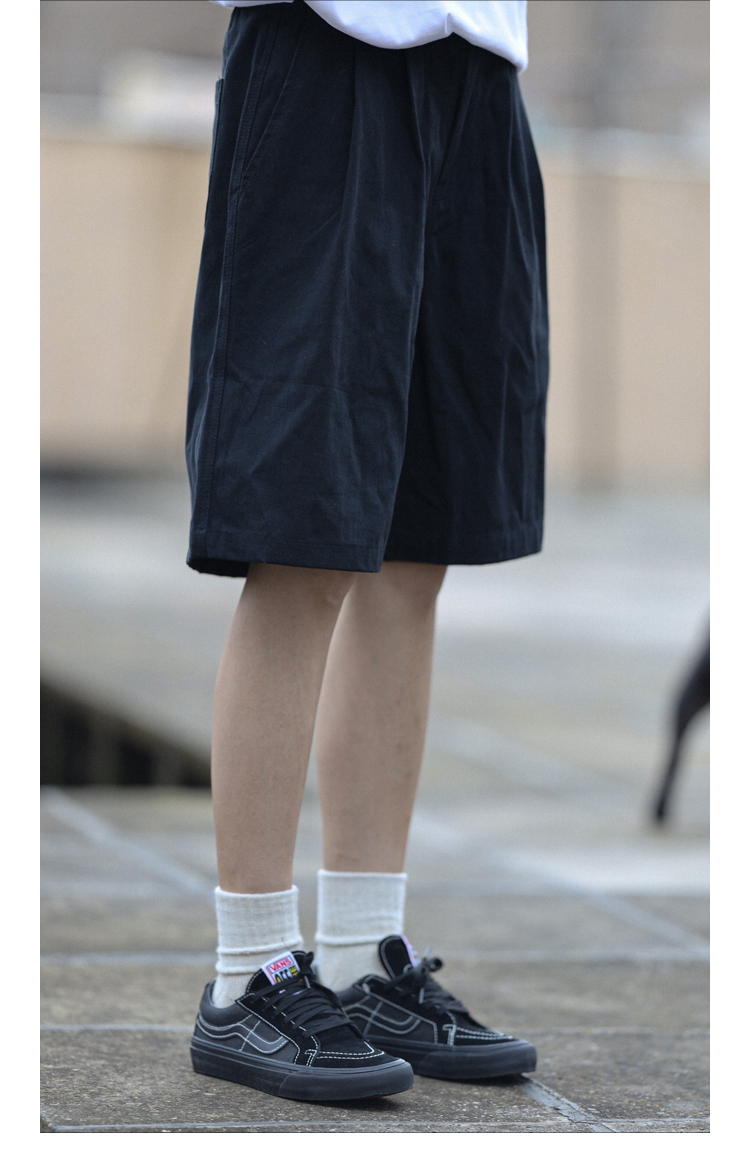 Nobodyknows夏季日系基礎純色雙摺休閒百搭男潮cityboy五分褲短褲