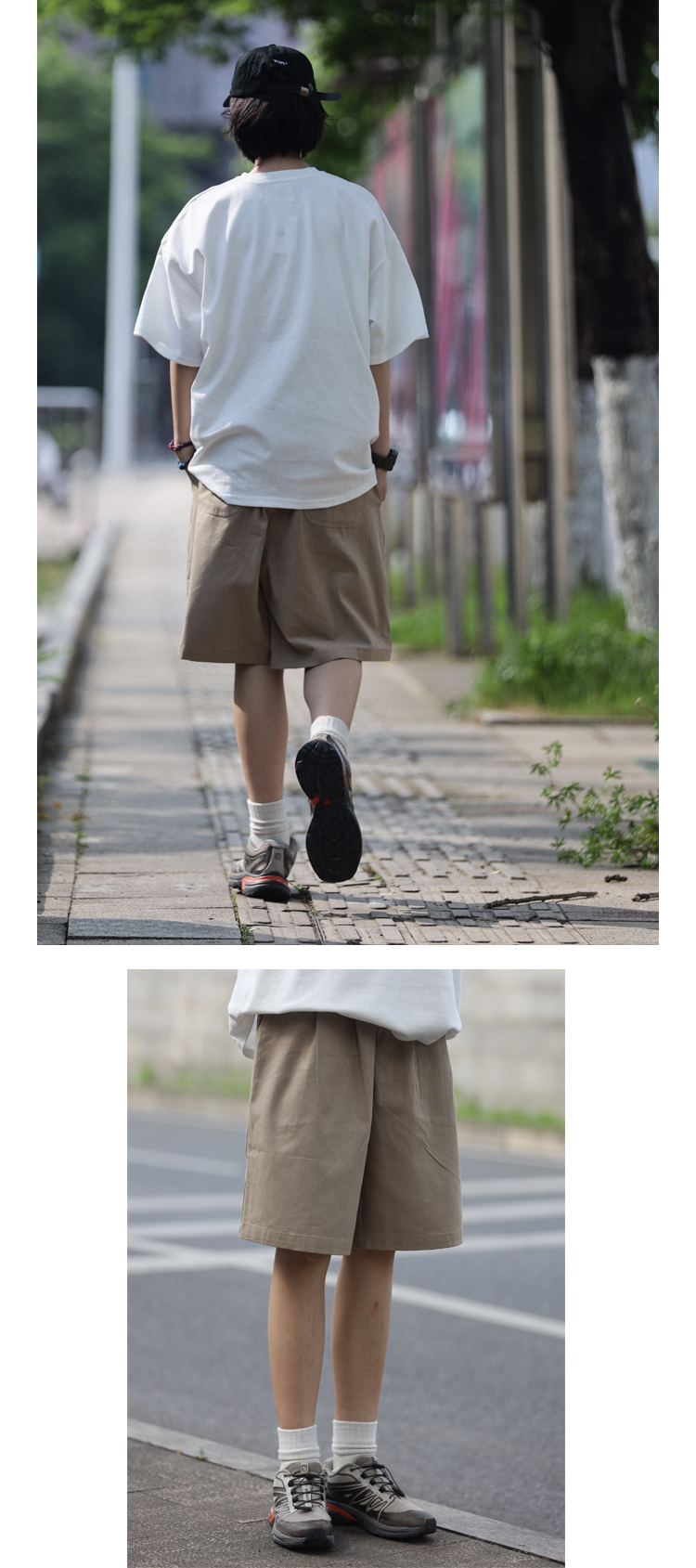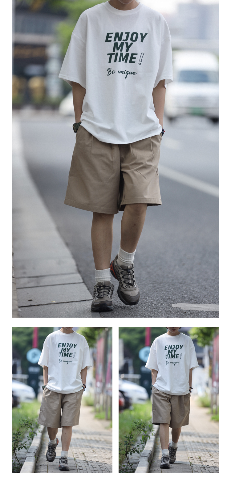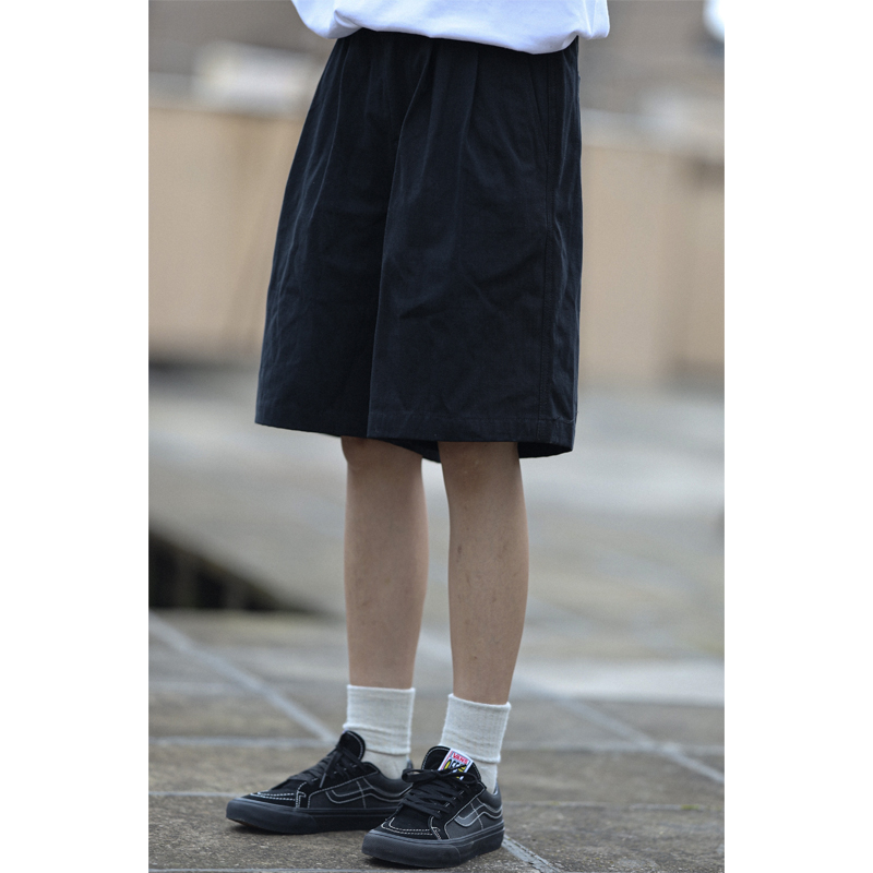 Nobodyknows夏季日系基礎純色雙摺休閒百搭男潮cityboy五分褲短褲