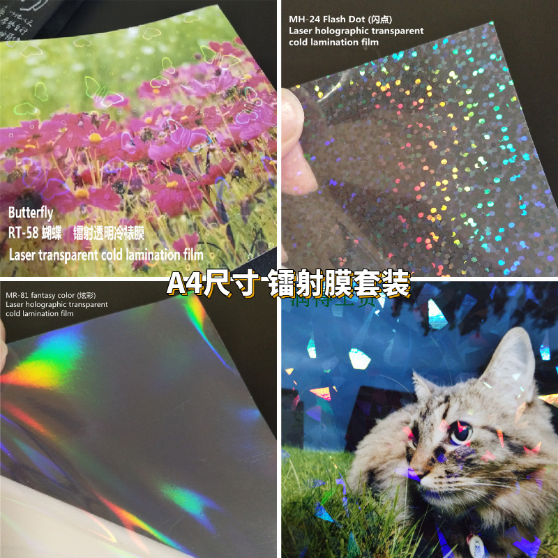 A4套装 PET镭射冷裱膜碎玻璃/闪点/幻彩/五角花/蝴蝶/星星x10款