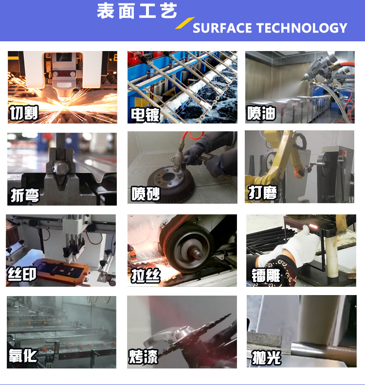表面处理工艺 打磨、喷油、丝印、抛光、喷砂、镭雕、电镀、氧化、电泳、喷粉、镀锌镀铜等
