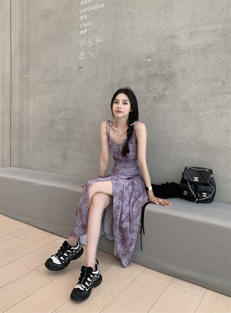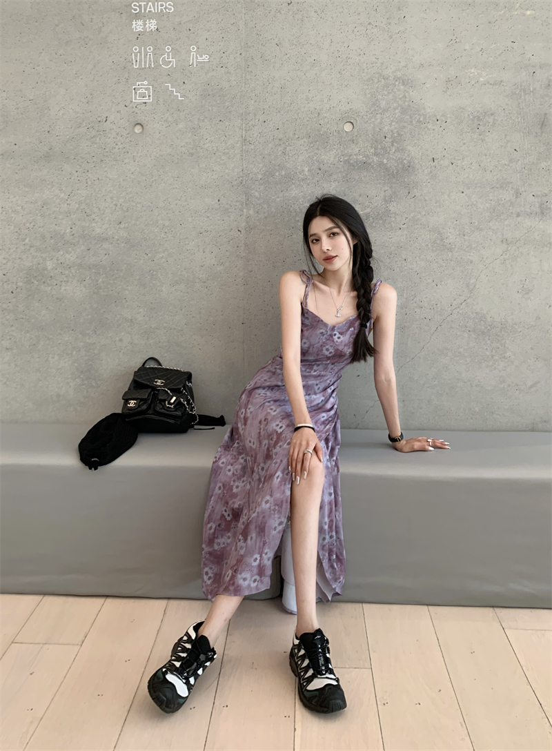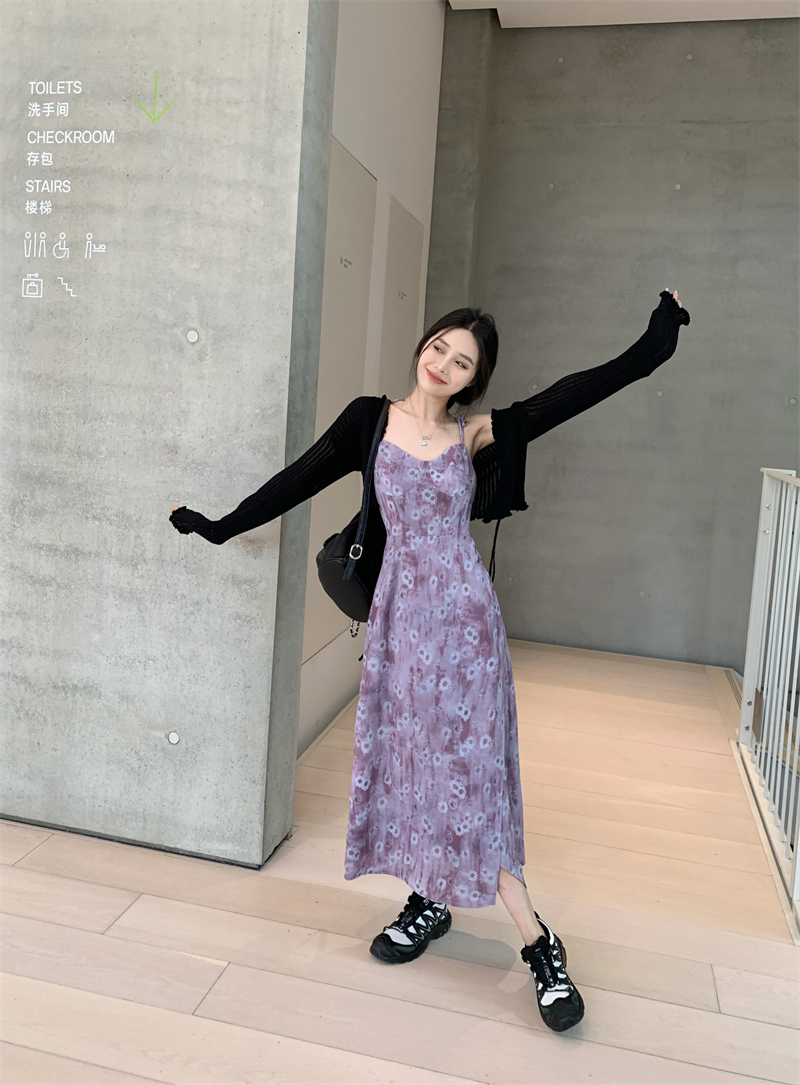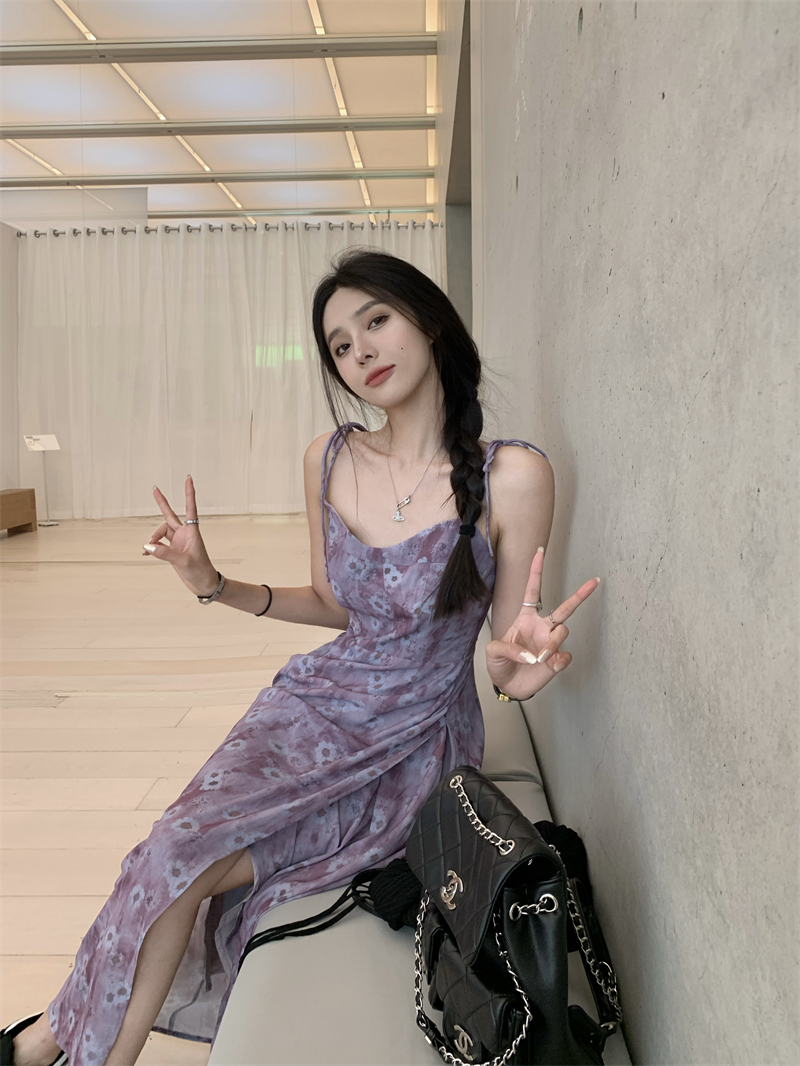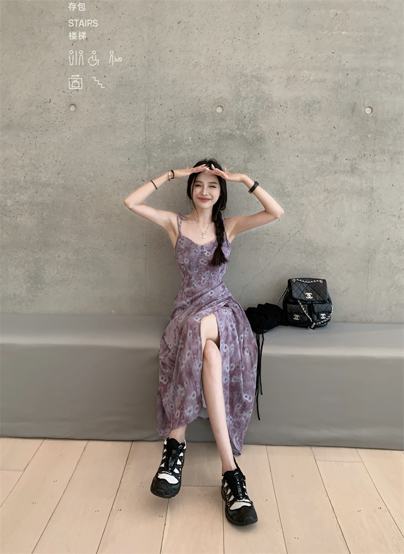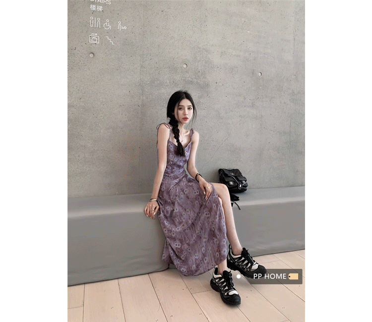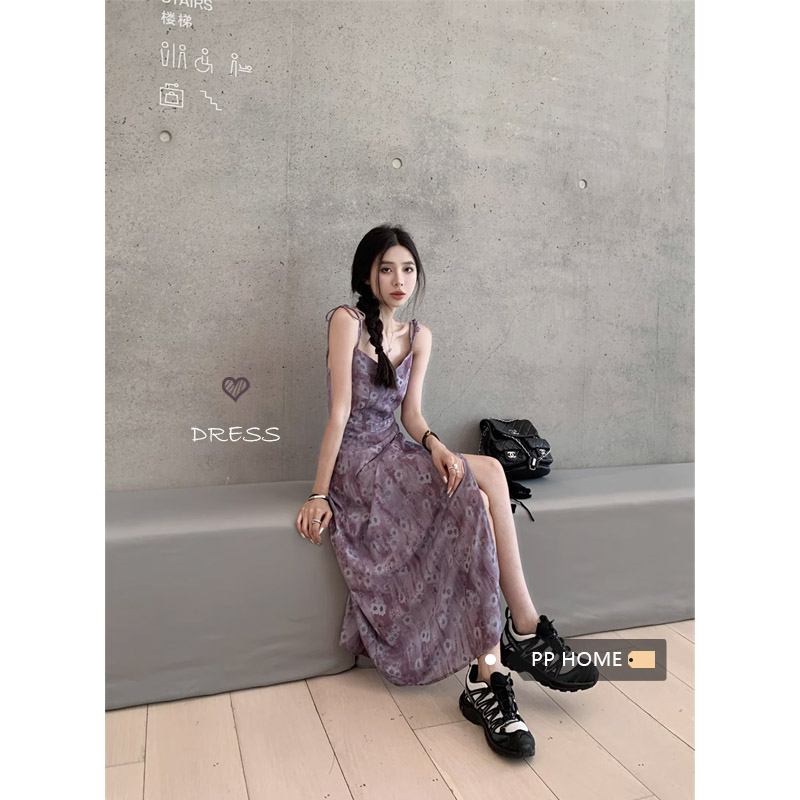 PPHOME欲調姐姐~純欲風時尚設計吊帶碎花洋裝女法式顯瘦茶歇裙