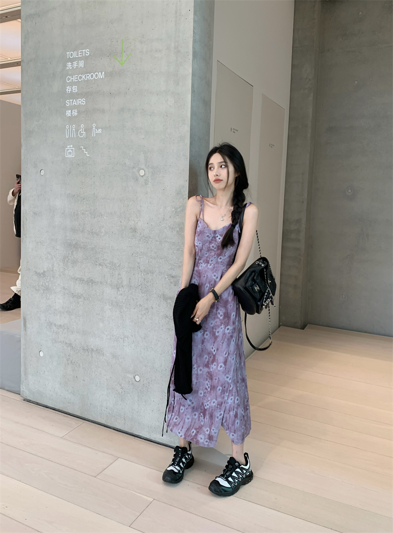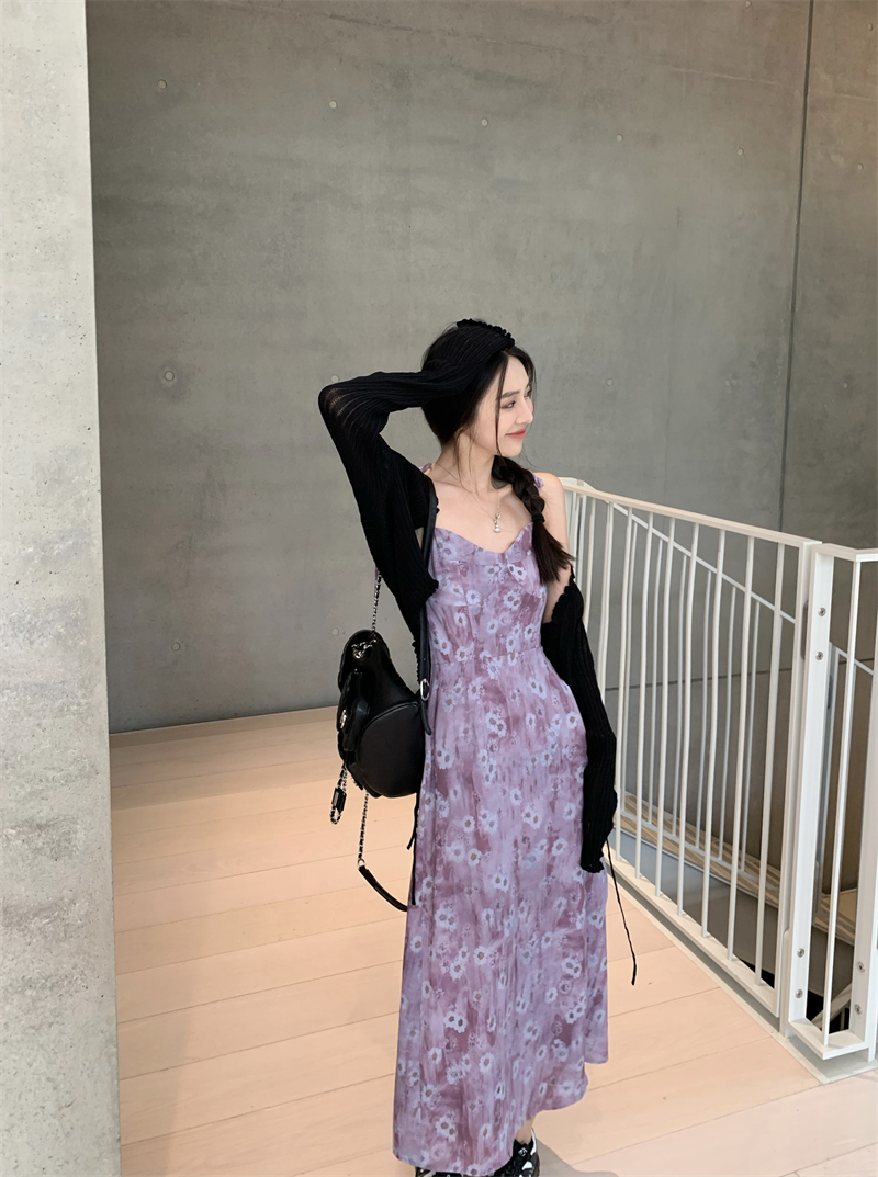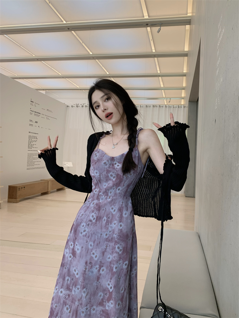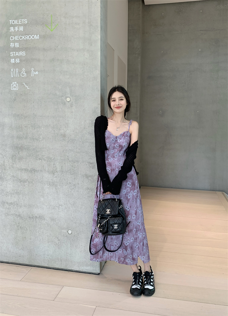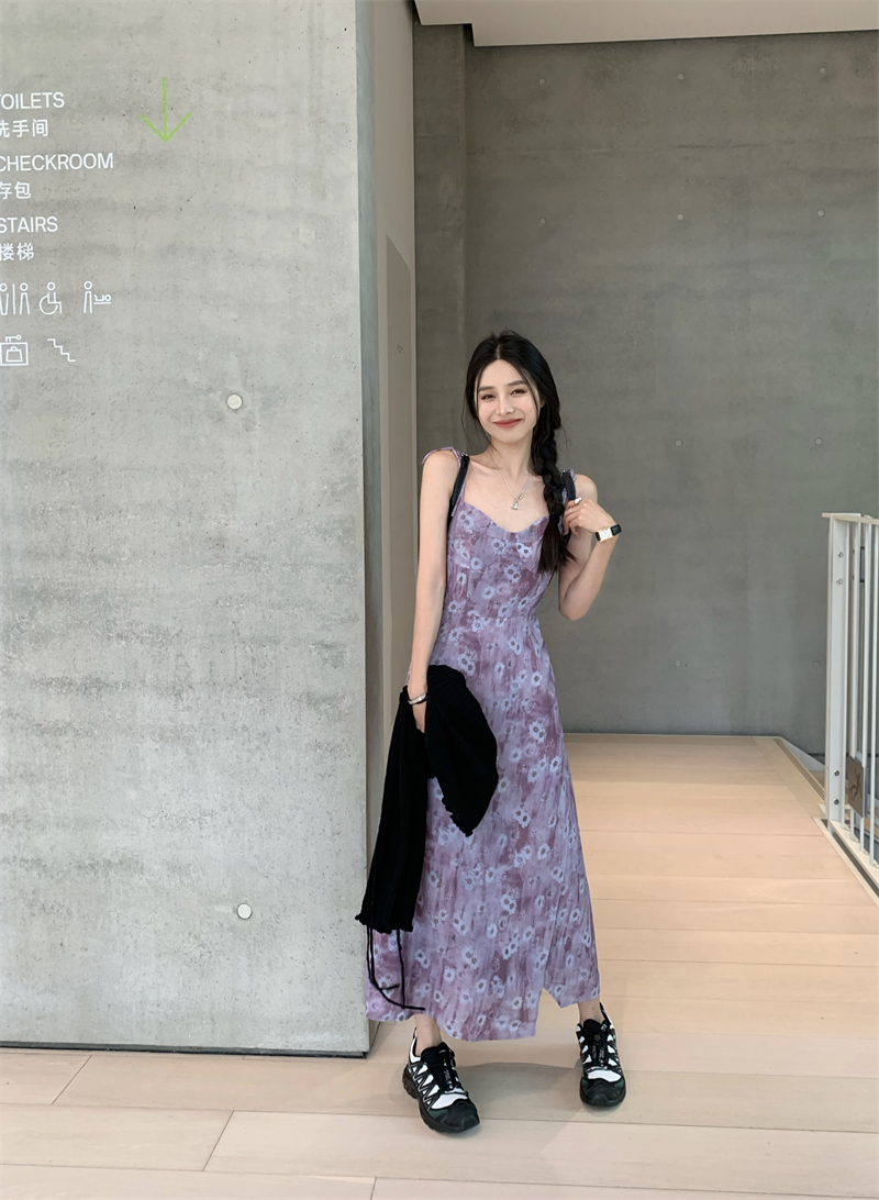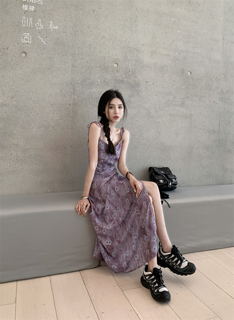 PPHOME欲調姐姐~純欲風時尚設計吊帶碎花洋裝女法式顯瘦茶歇裙