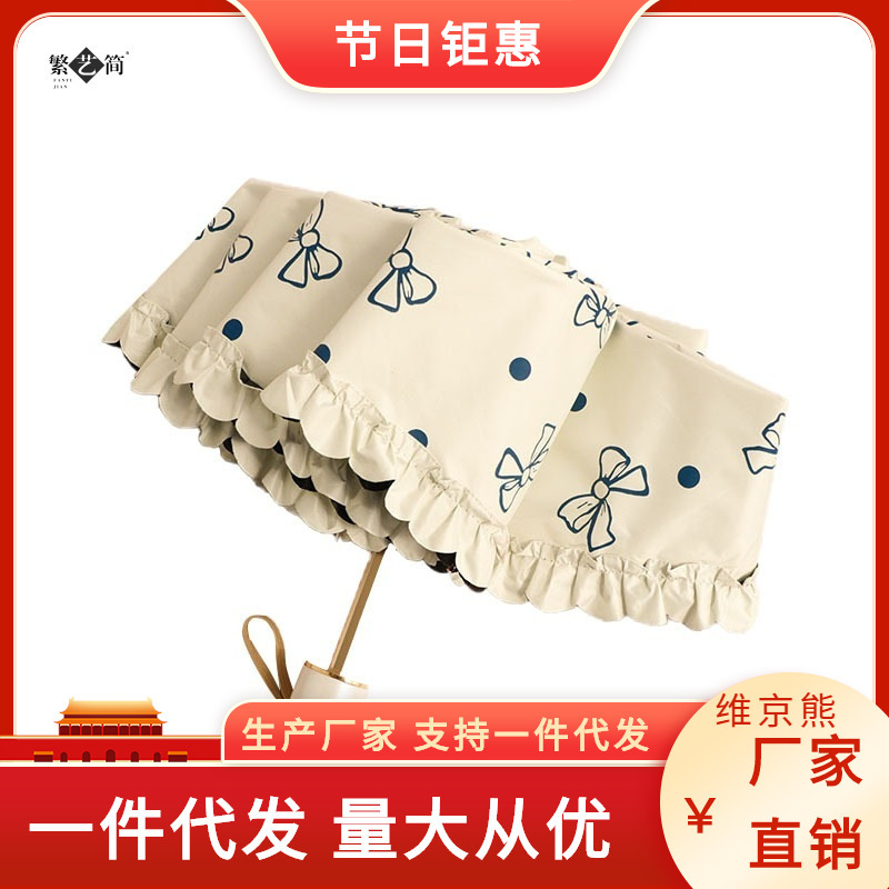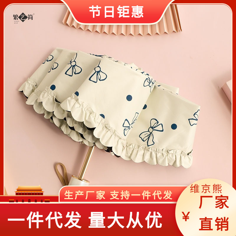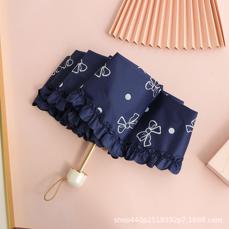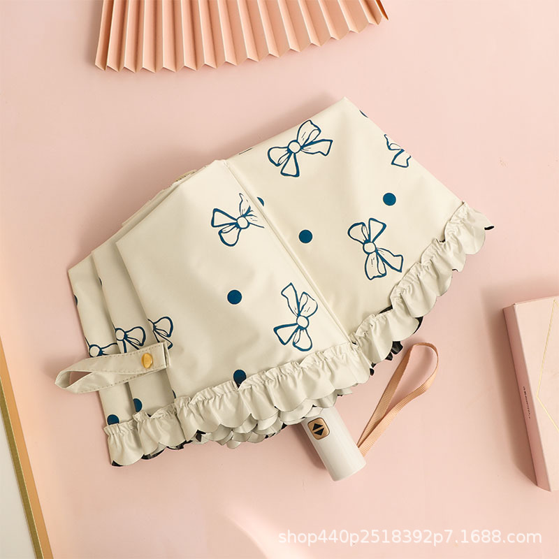 超轻迷你便携五折伞蝴蝶结女黑胶晴雨两用八骨防紫外线太阳伞