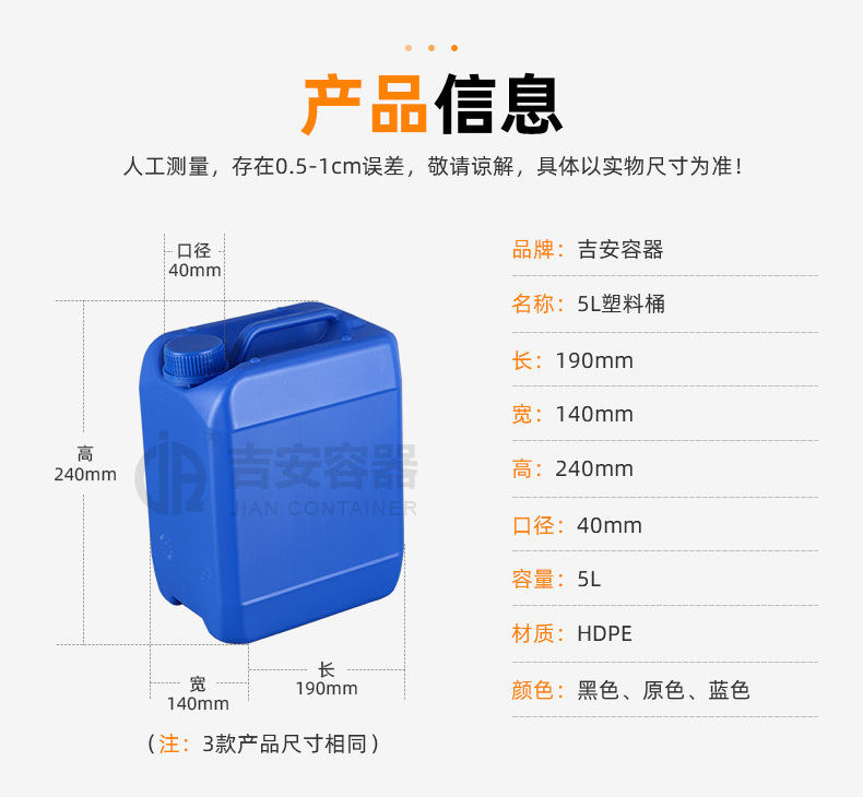 规格 5L塑料桶 蓝色,5L塑料桶 原色,5L塑料桶 黑色(加厚),5L塑料桶 原色(红盖)