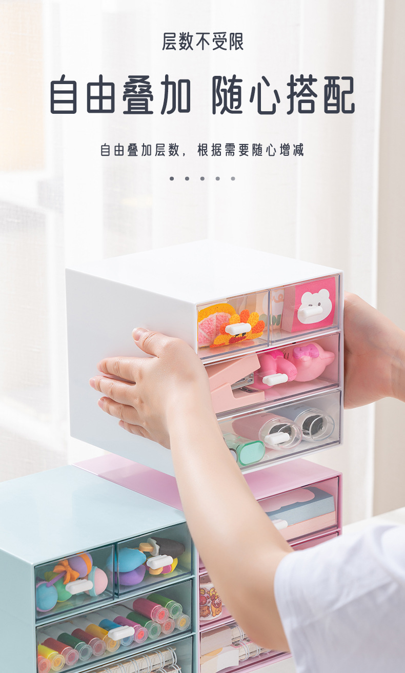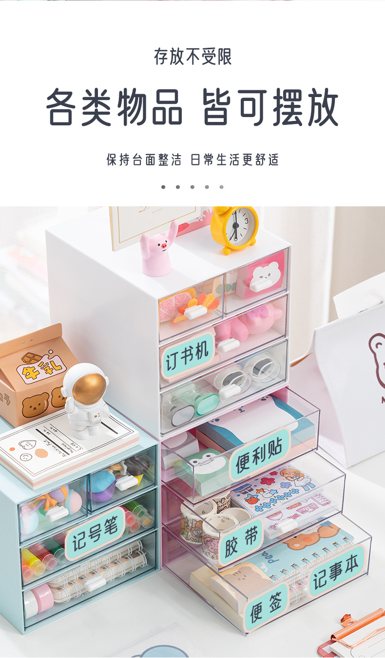 ins简约收纳盒批发抽屉式diy桌面塑料透明化妆品首饰盒文具整理盒