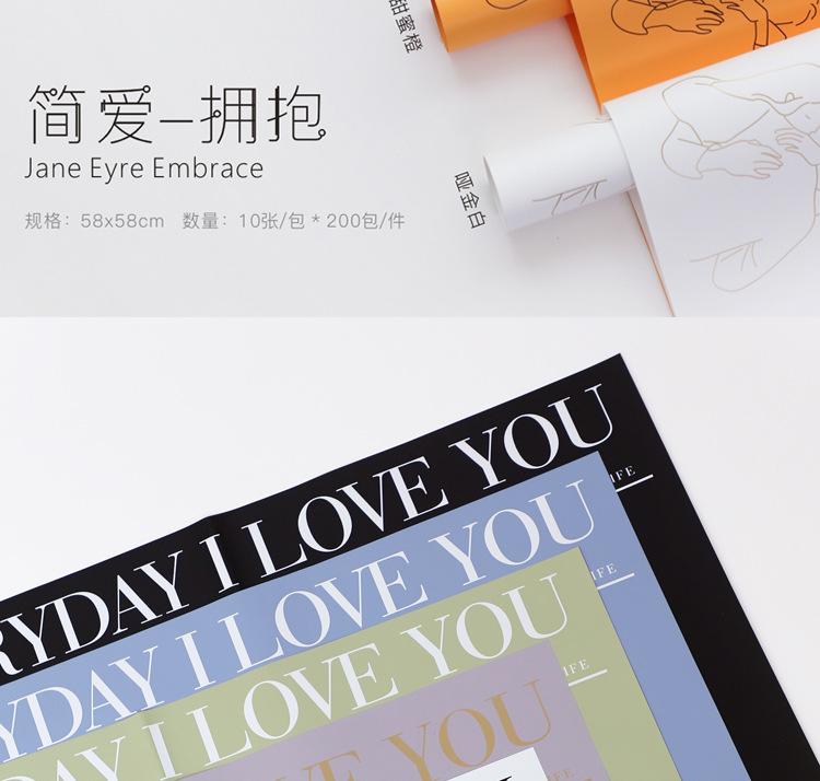 520情人节礼物新款简爱纸拥抱鲜花包装纸 礼品花束包装材料七夕表白创意鲜花包装纸花店包花纸鲜花包装辅助材料 diy包装材料包 花艺纸花店用品手捧花小花束
