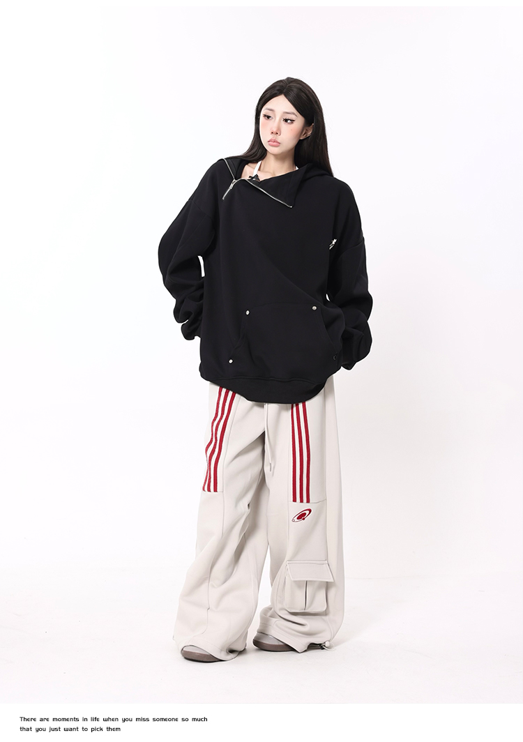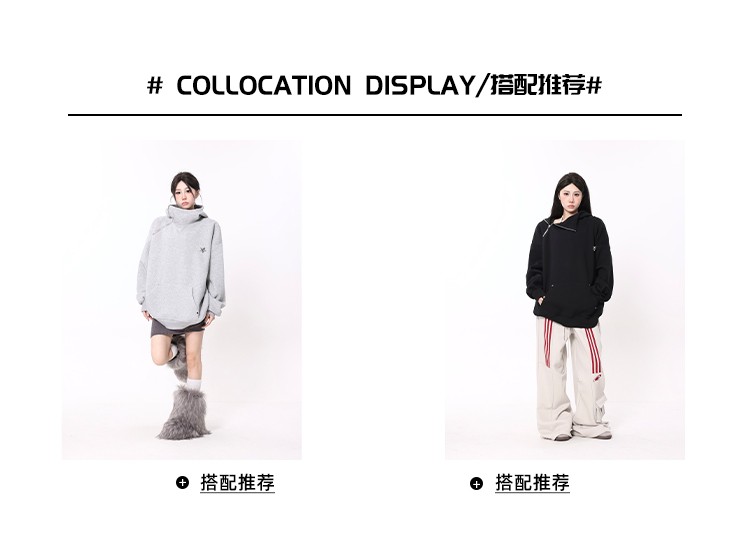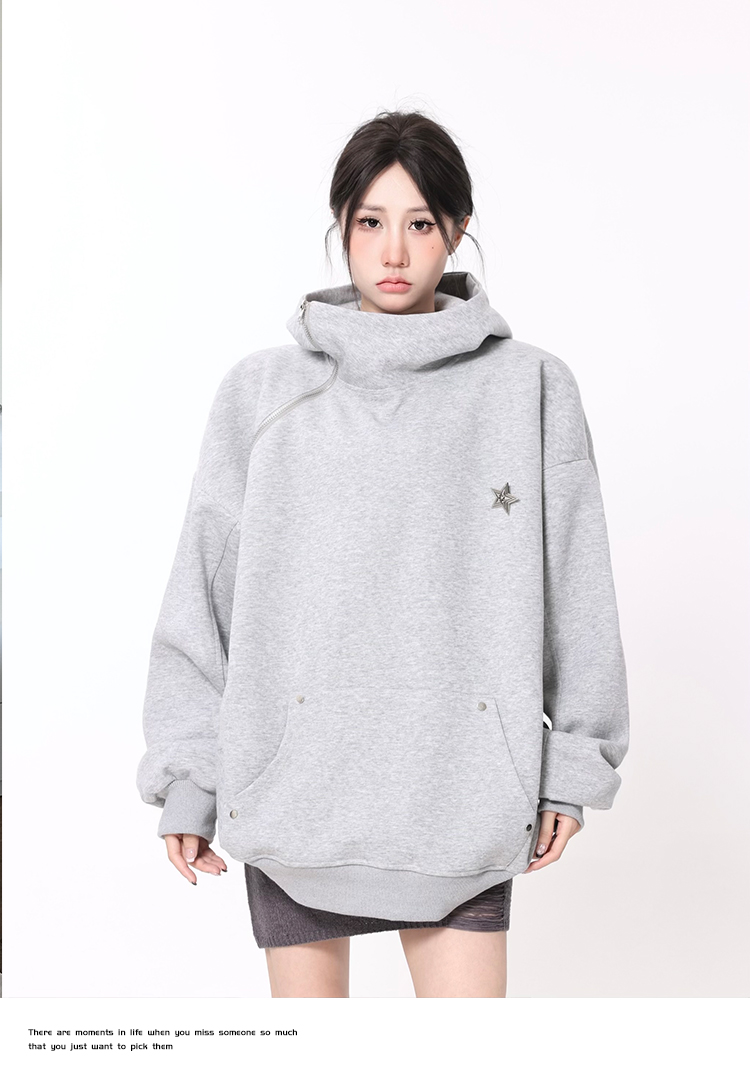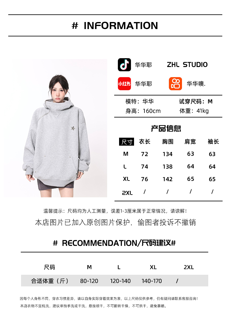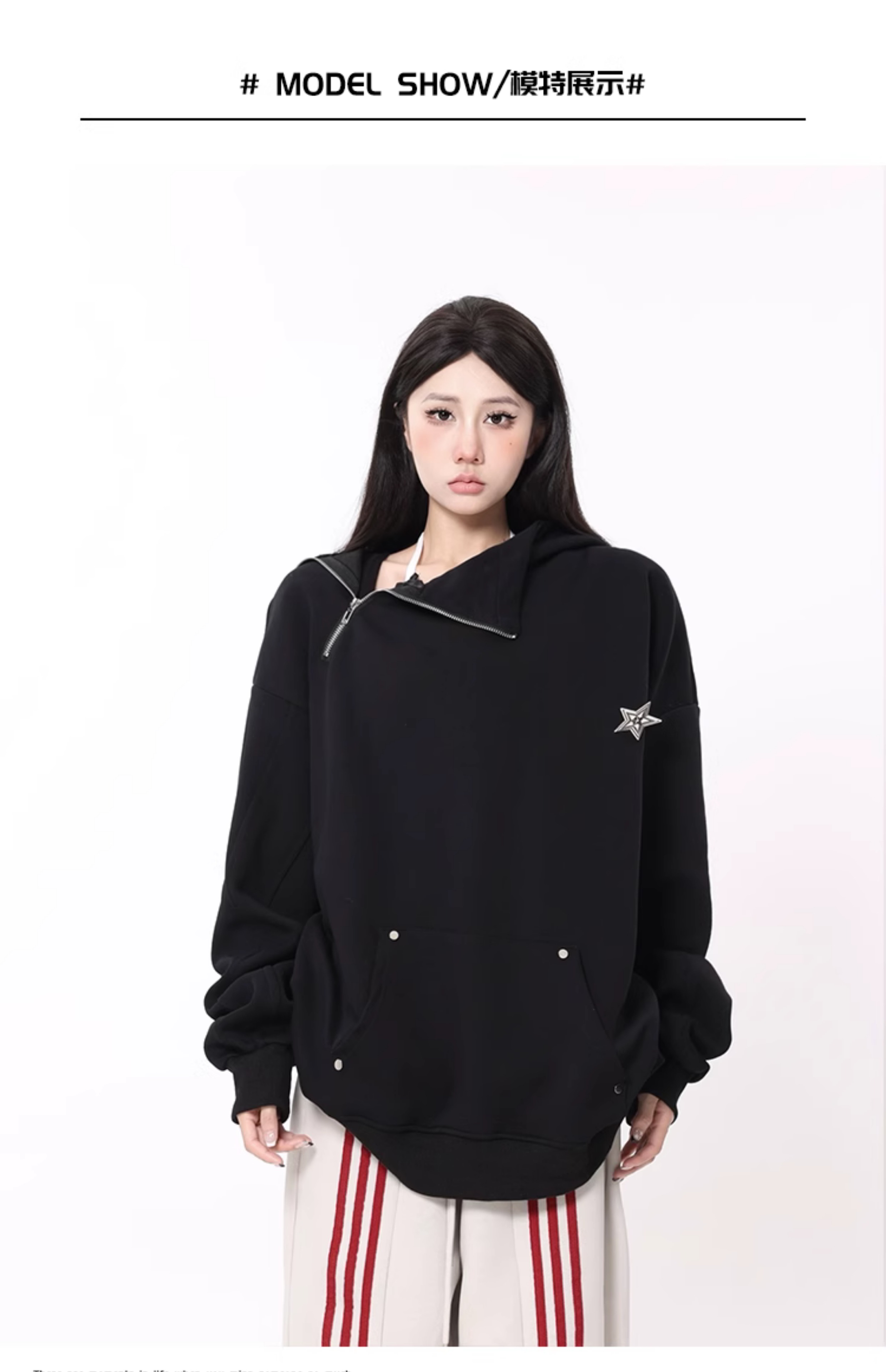 ZHL Studio 美式半拉鍊衛衣女春秋款寬鬆休閒潮牌設計感小眾外套