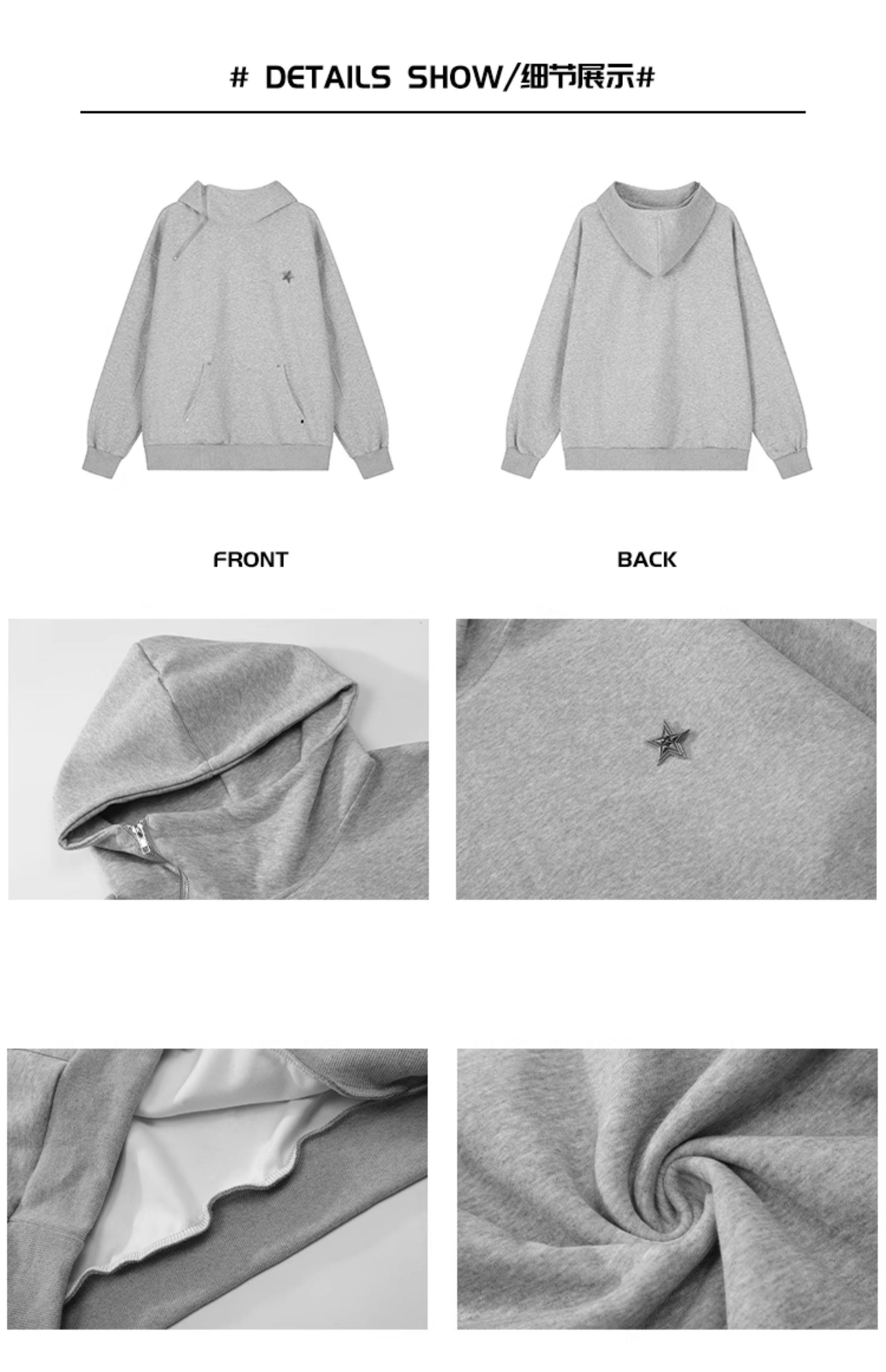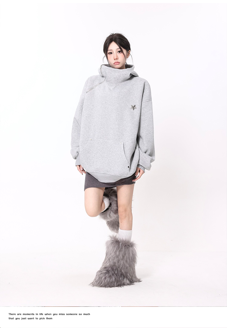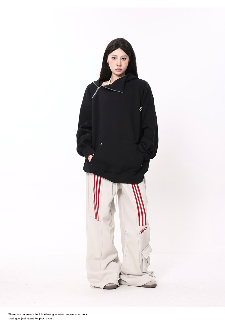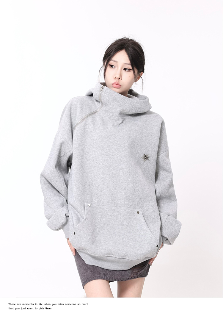 ZHL Studio 美式半拉鍊衛衣女春秋款寬鬆休閒潮牌設計感小眾外套