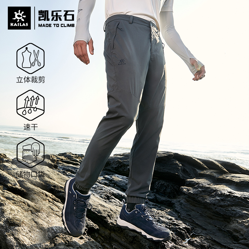 凱樂石速乾褲男款夏季戶外耐磨徒步長褲防潑透氣快乾褲彈力束口褲