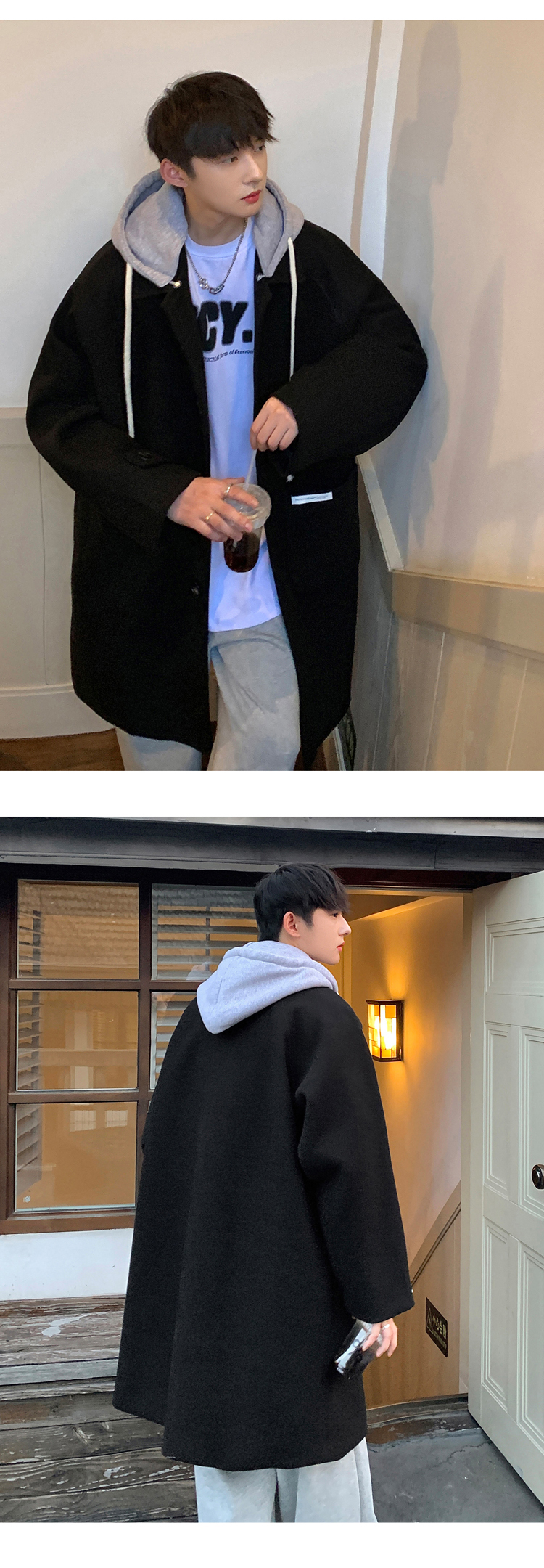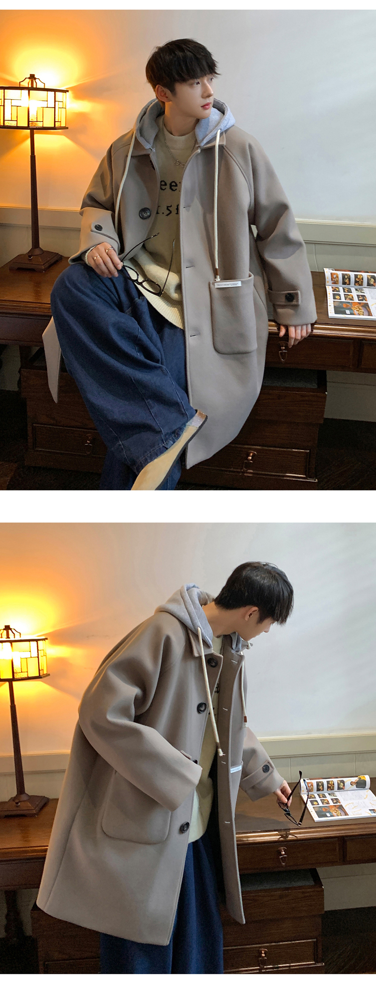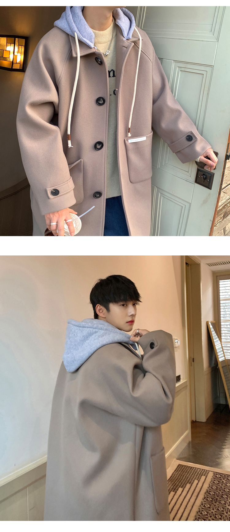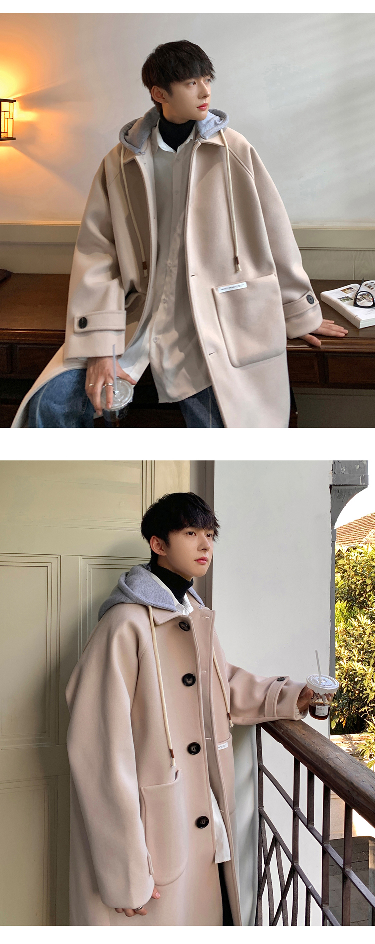 毛呢風衣男中長版春秋潮牌高級感連帽外套痞帥加厚保暖情侶呢大衣
