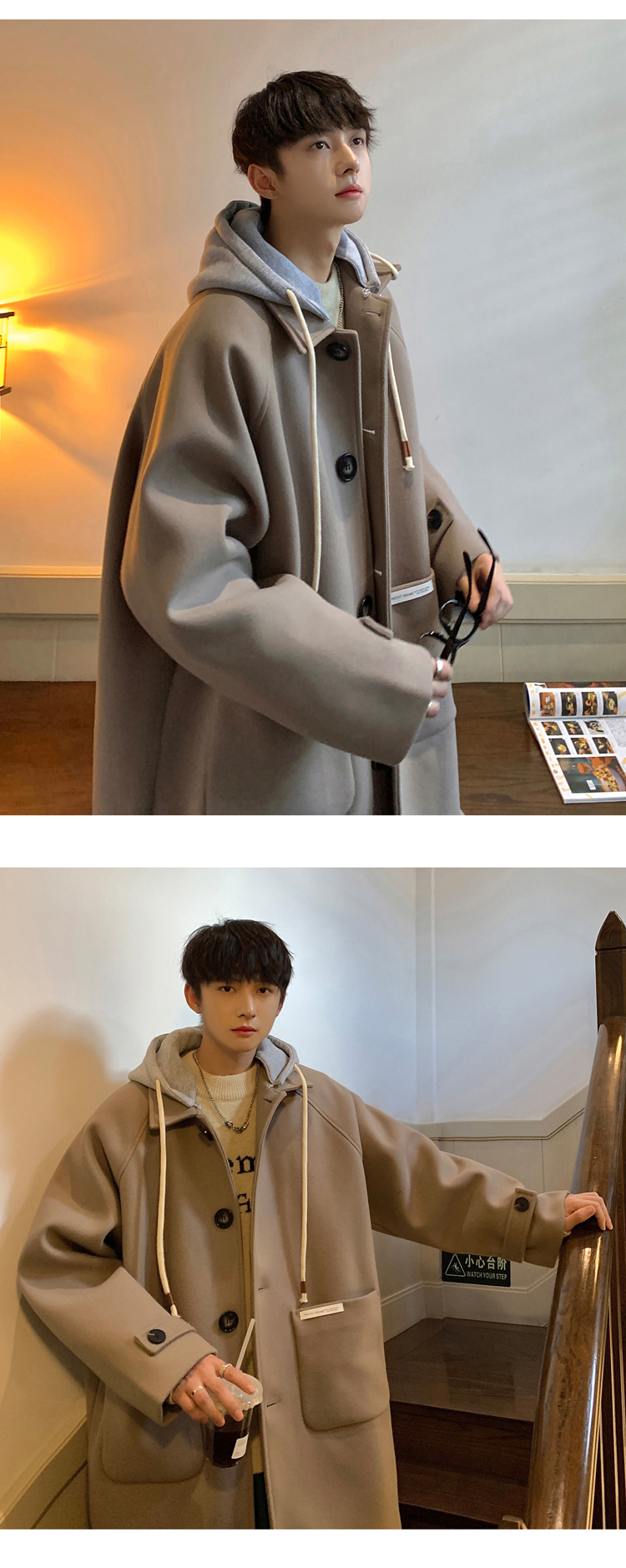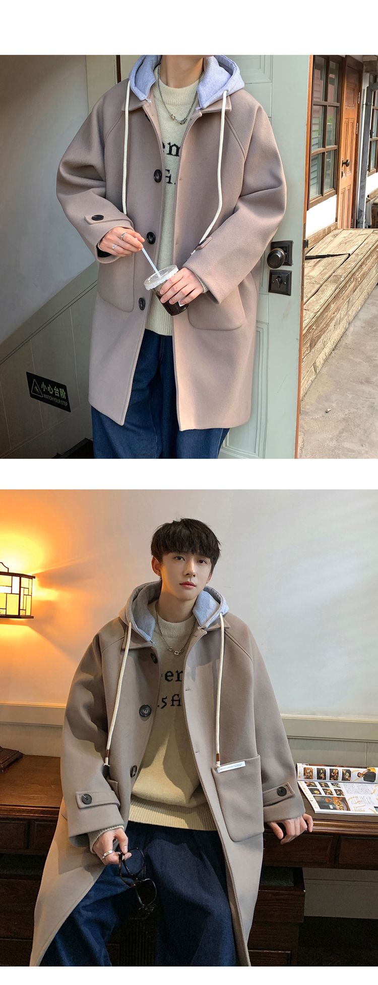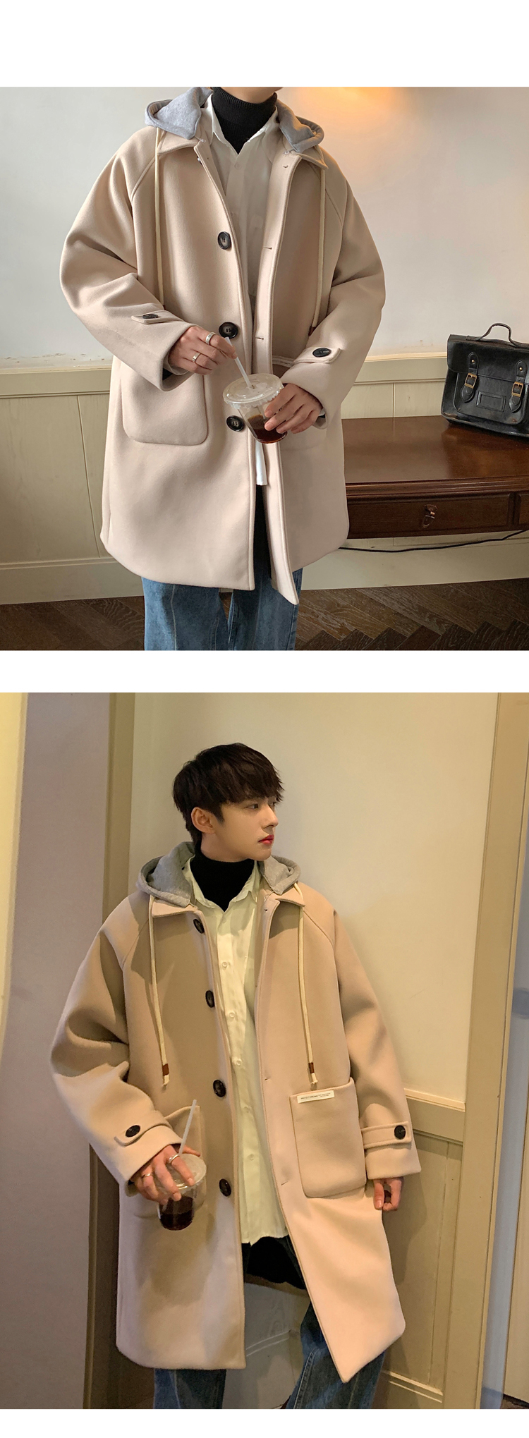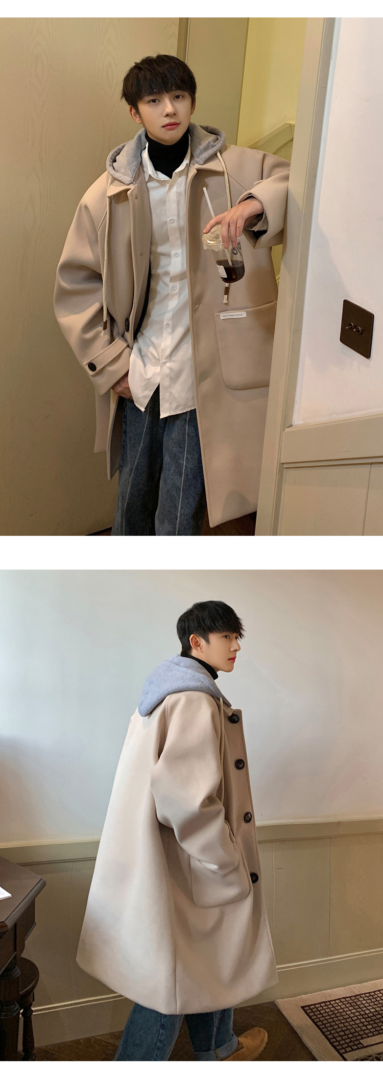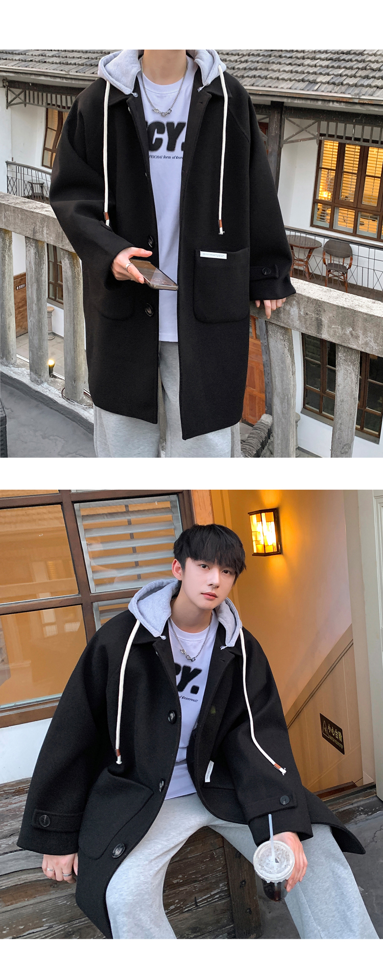 毛呢風衣男中長版春秋潮牌高級感連帽外套痞帥加厚保暖情侶呢大衣