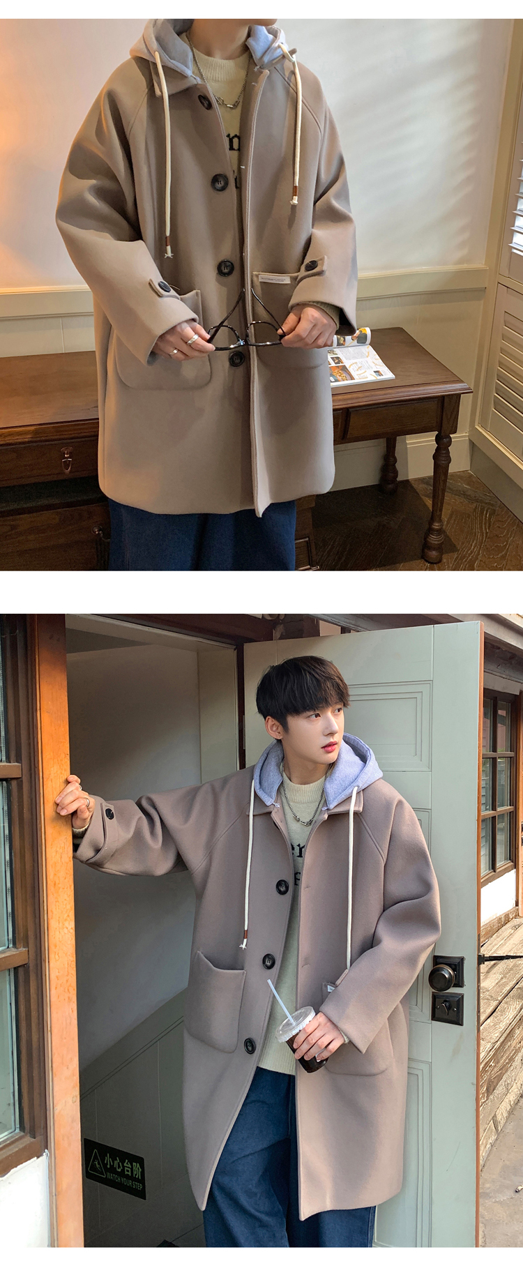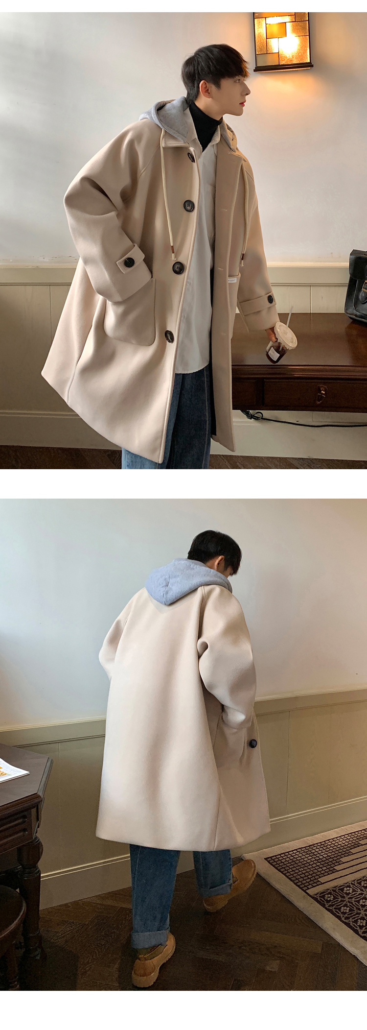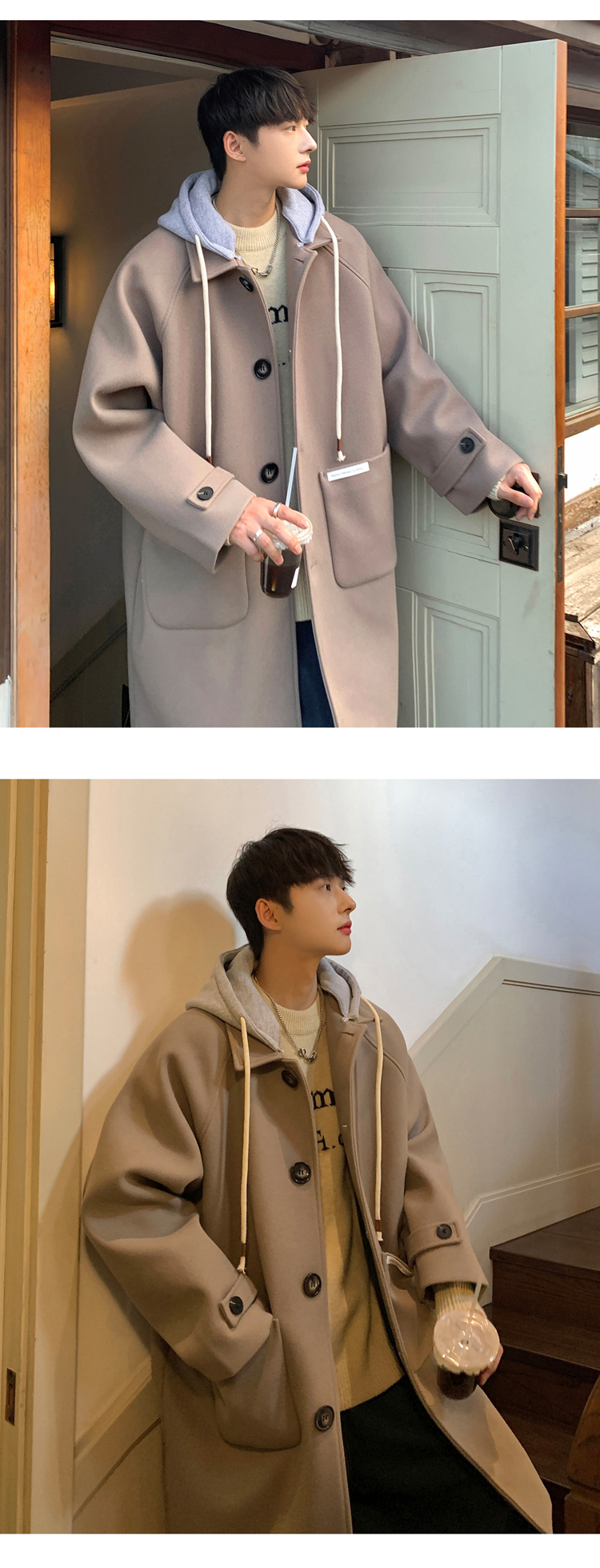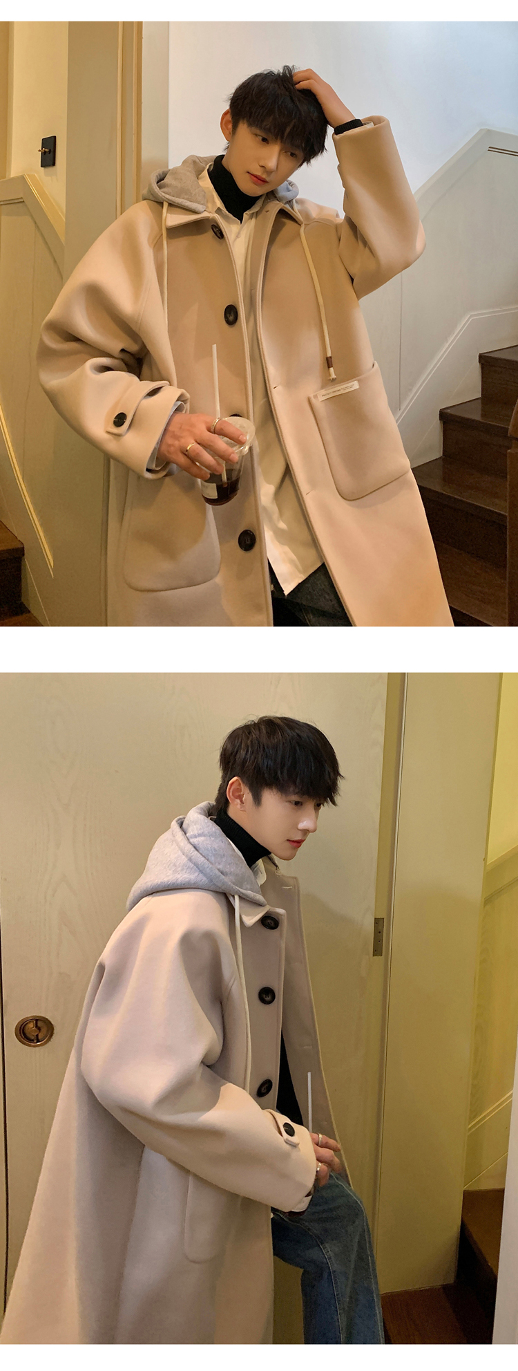 毛呢風衣男中長版春秋潮牌高級感連帽外套痞帥加厚保暖情侶呢大衣