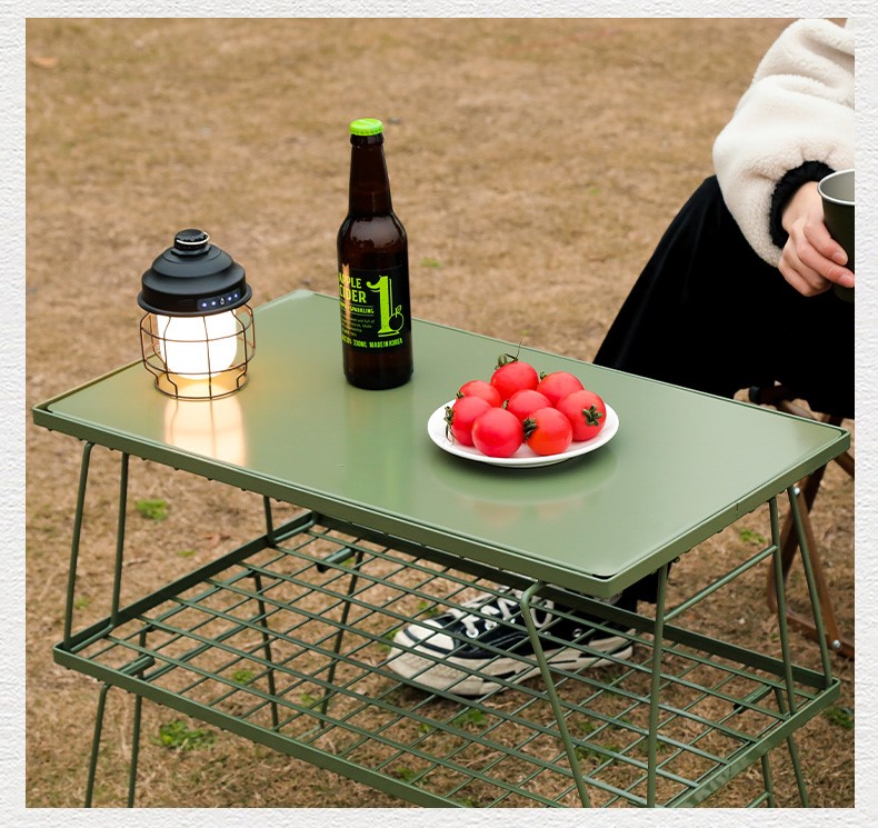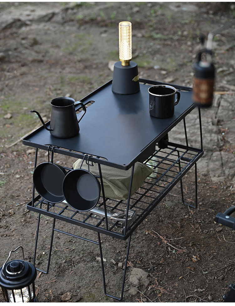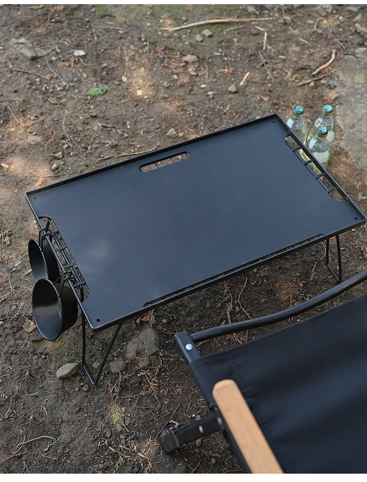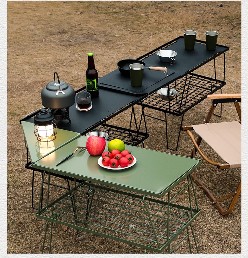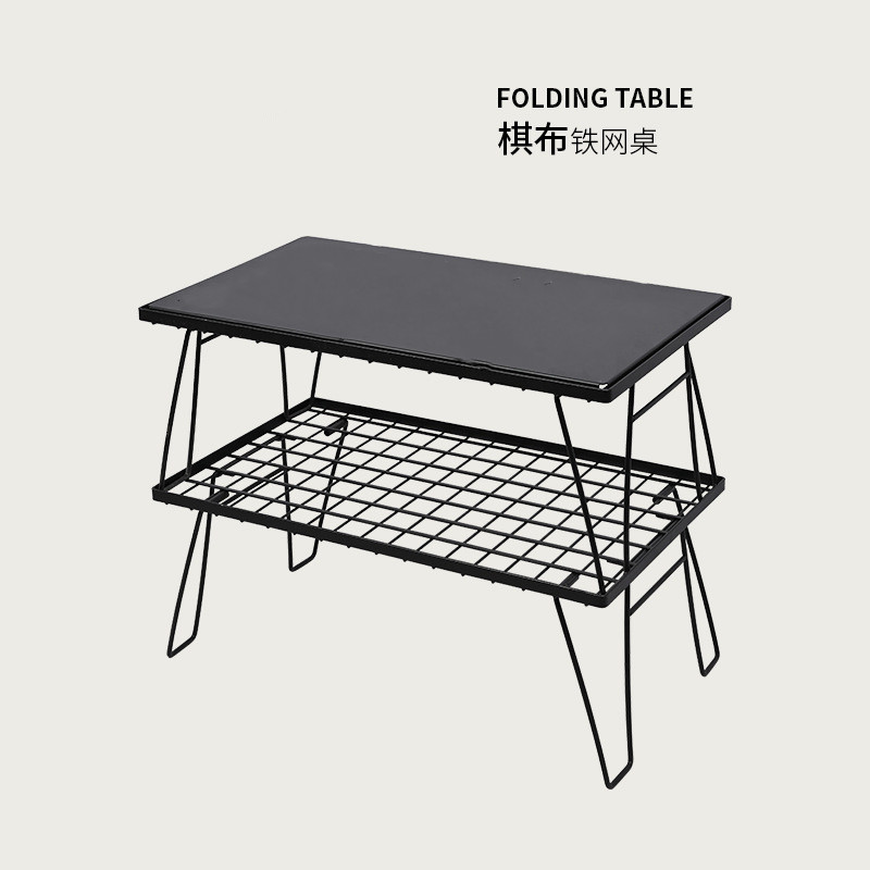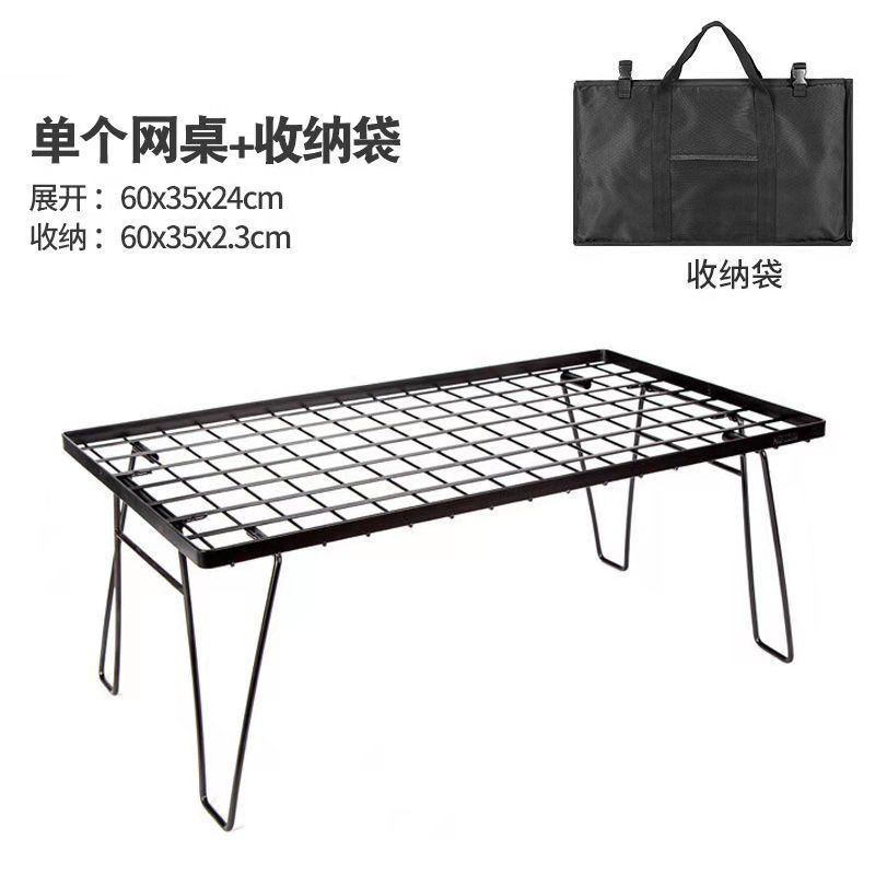 野營自駕野餐桌燒烤桌茶幾鐵桌瀝水架網格桌戶外摺疊網桌竹板桌子
