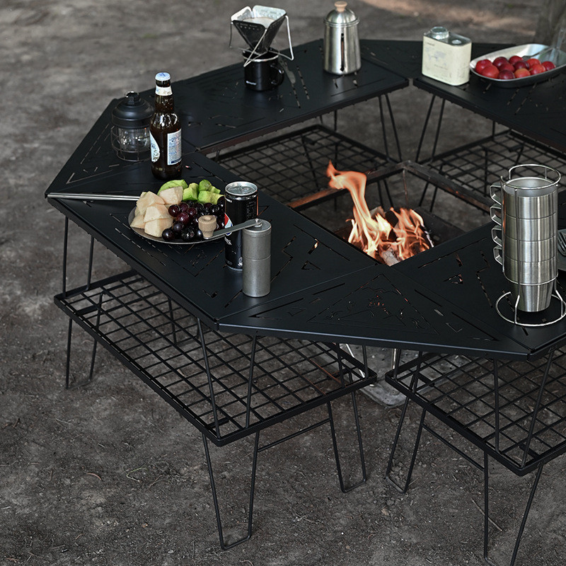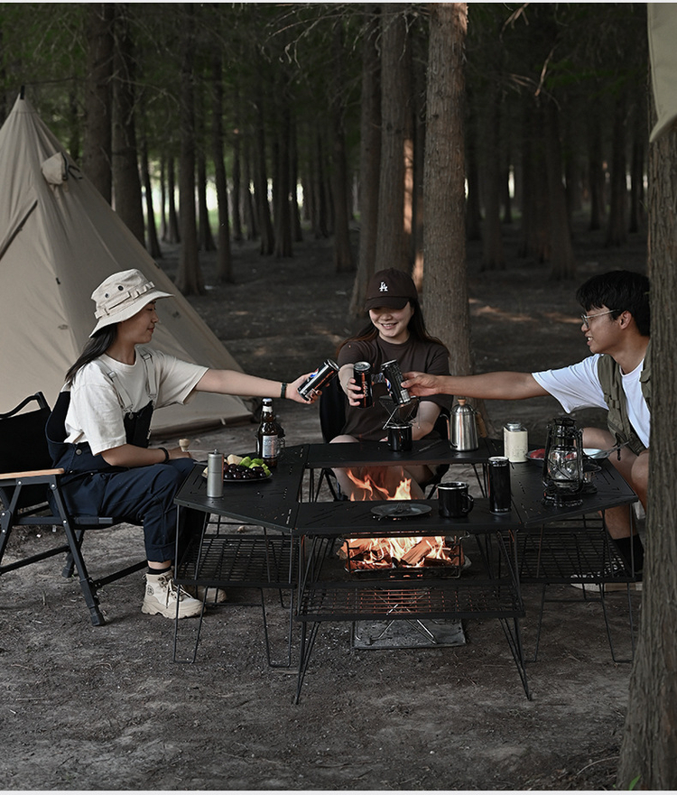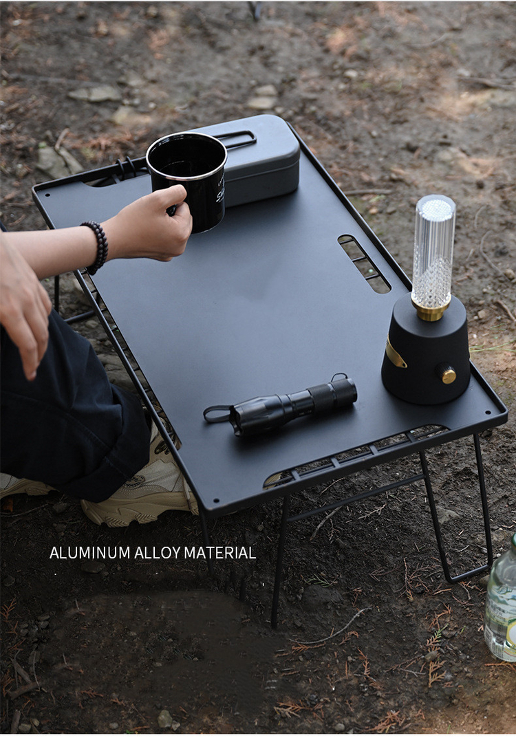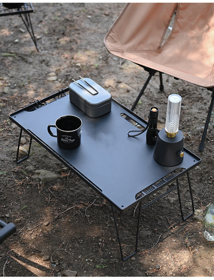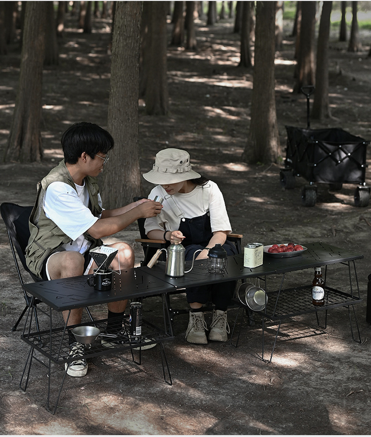 野營自駕野餐桌燒烤桌茶幾鐵桌瀝水架網格桌戶外摺疊網桌竹板桌子