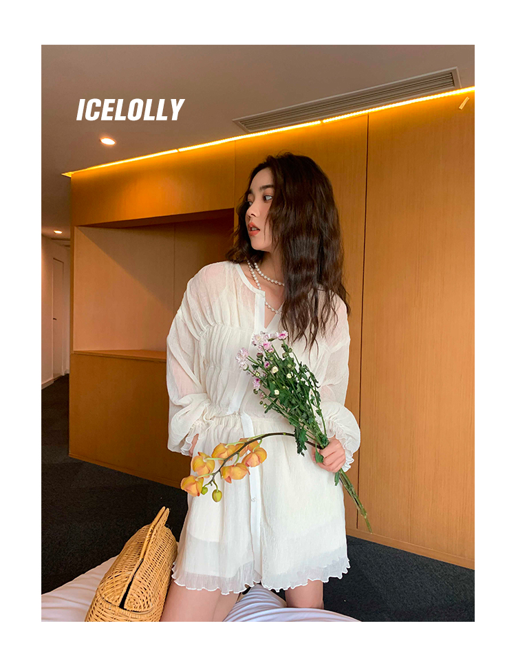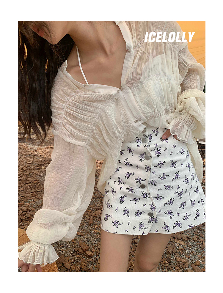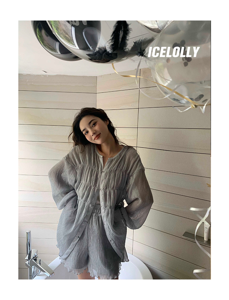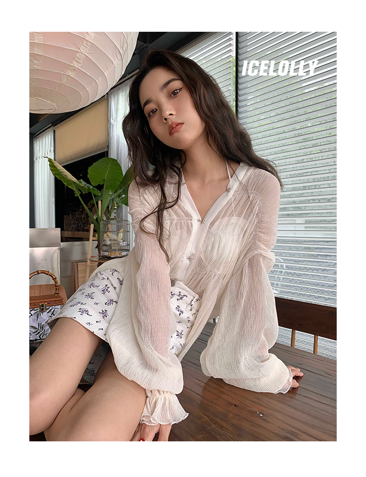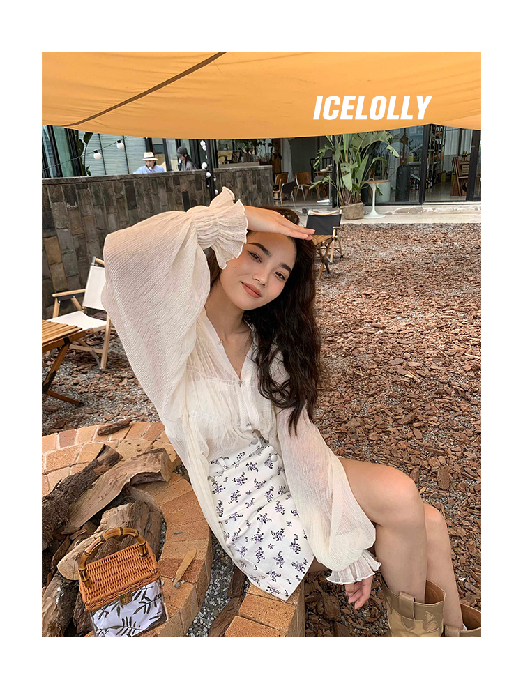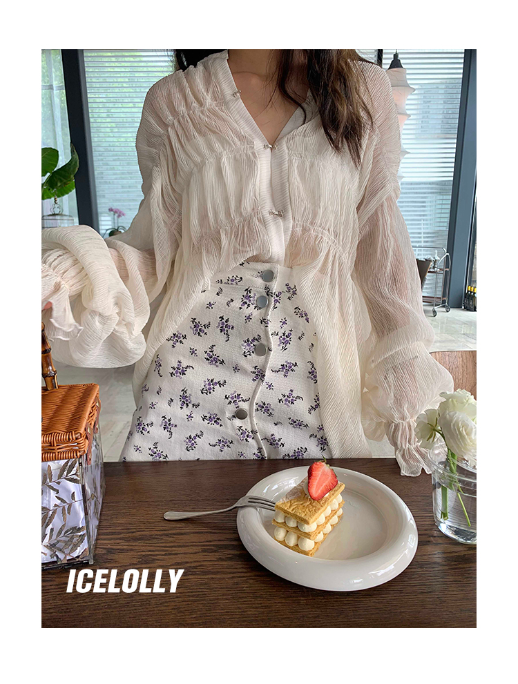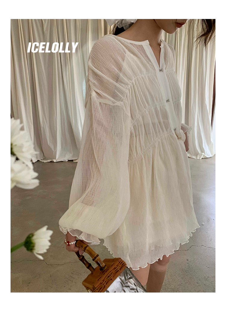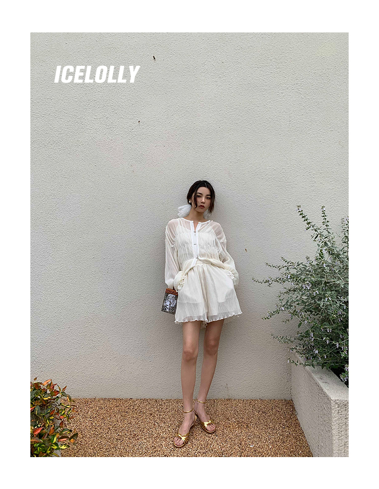 【69元福利款】ICELOLLY法式泡泡袖t襯衫女夏季防曬衫長袖上衣套裝