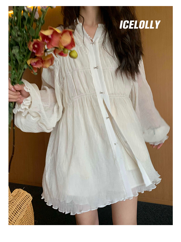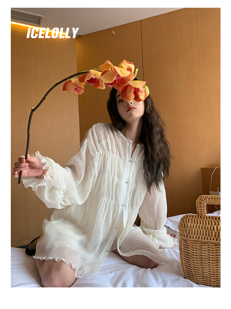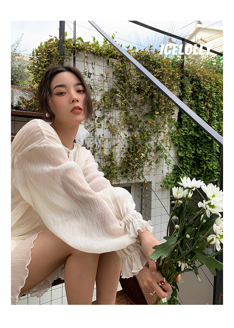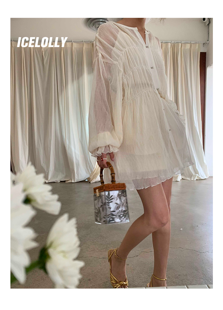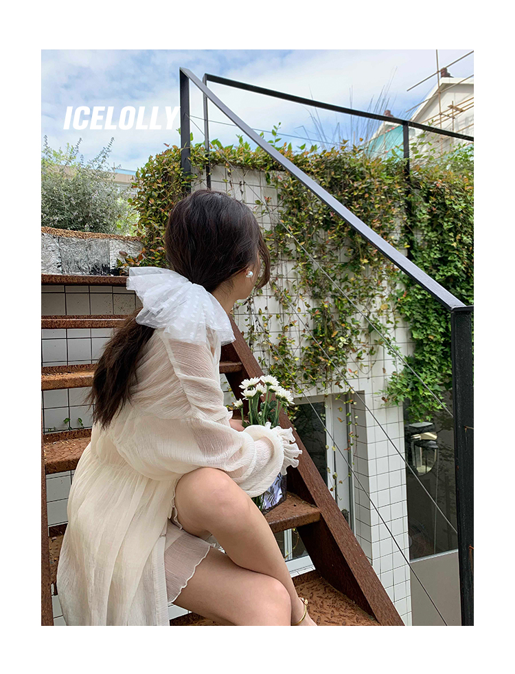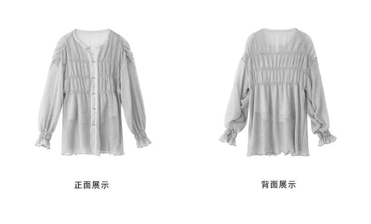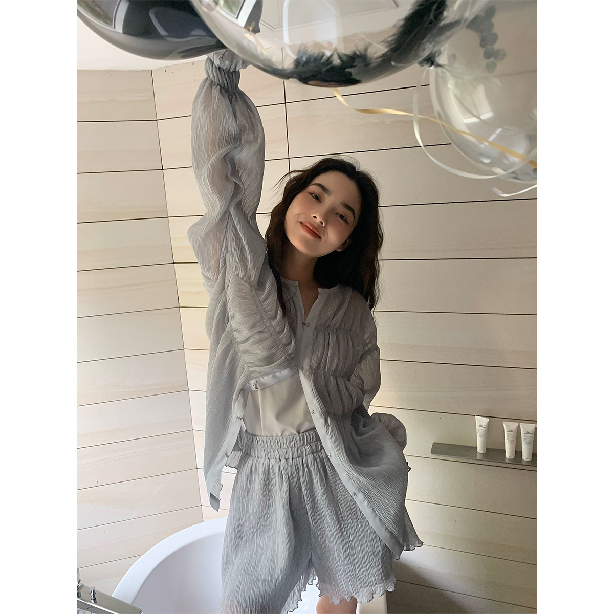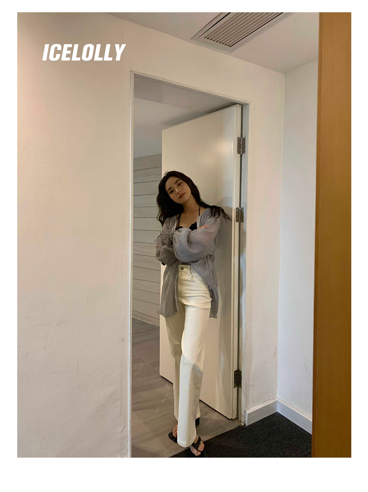 【69元福利款】ICELOLLY法式泡泡袖t襯衫女夏季防曬衫長袖上衣套裝