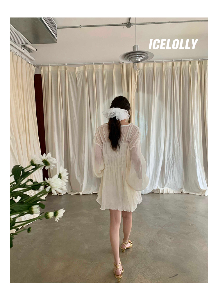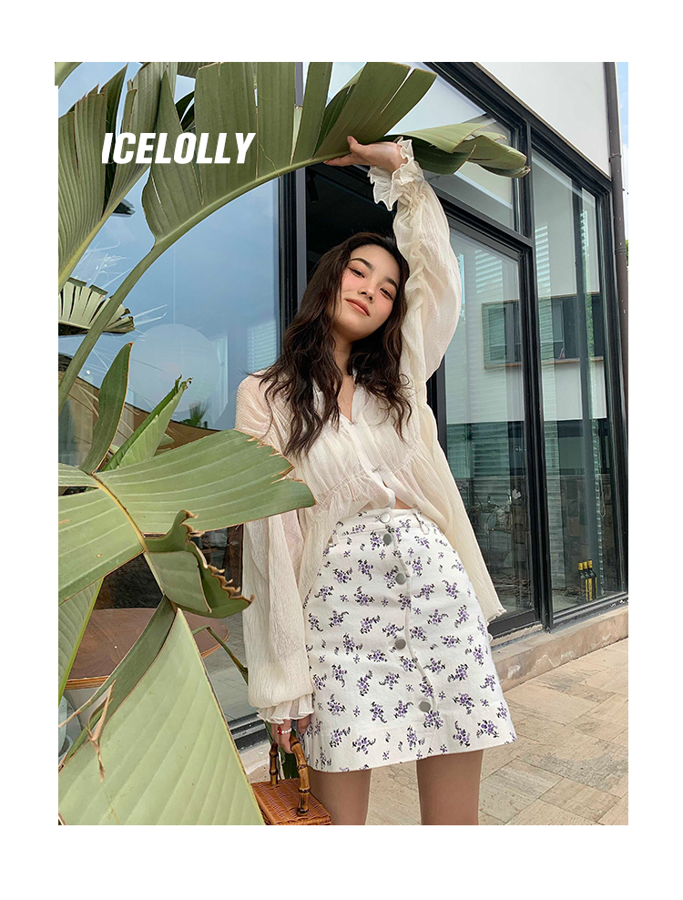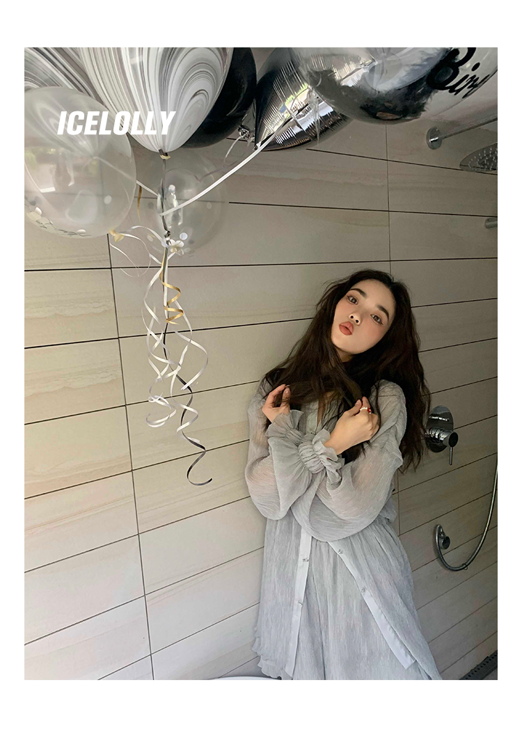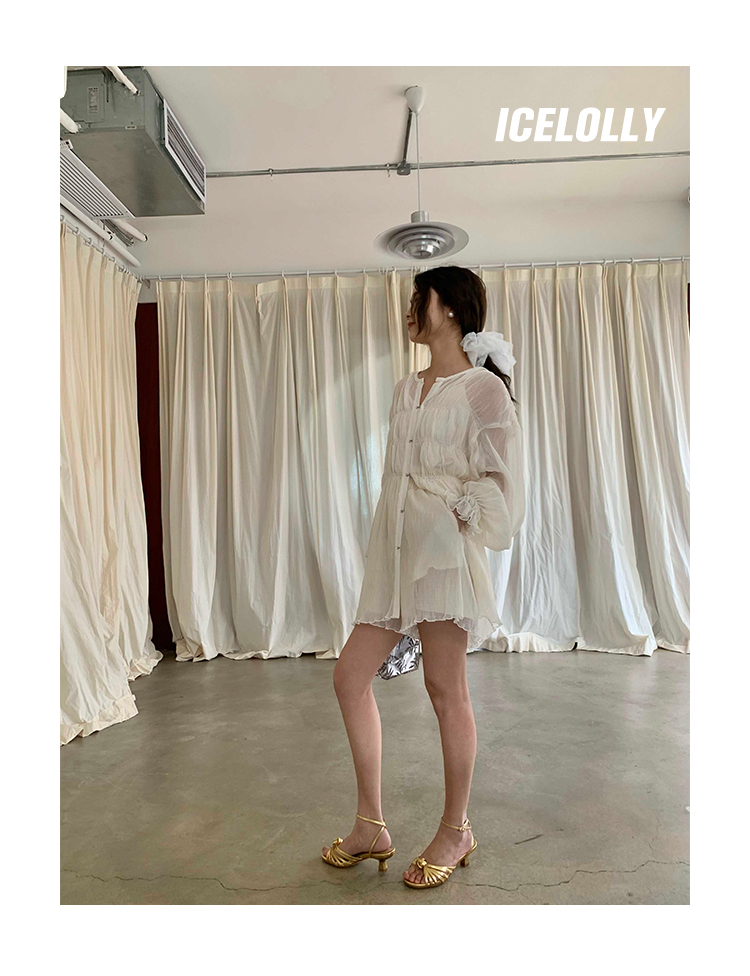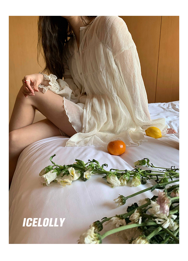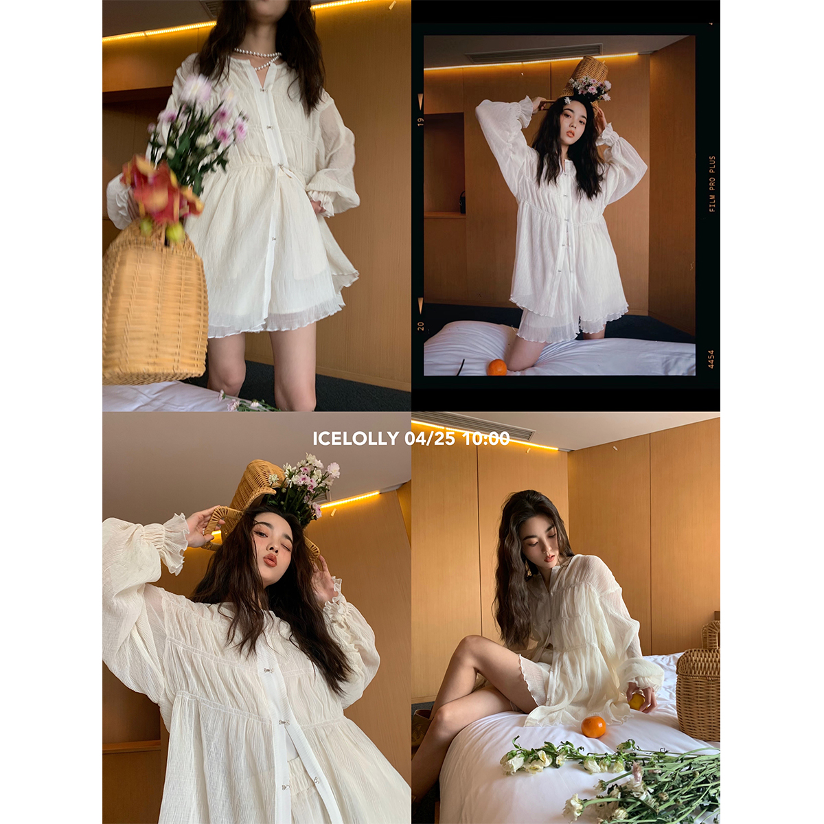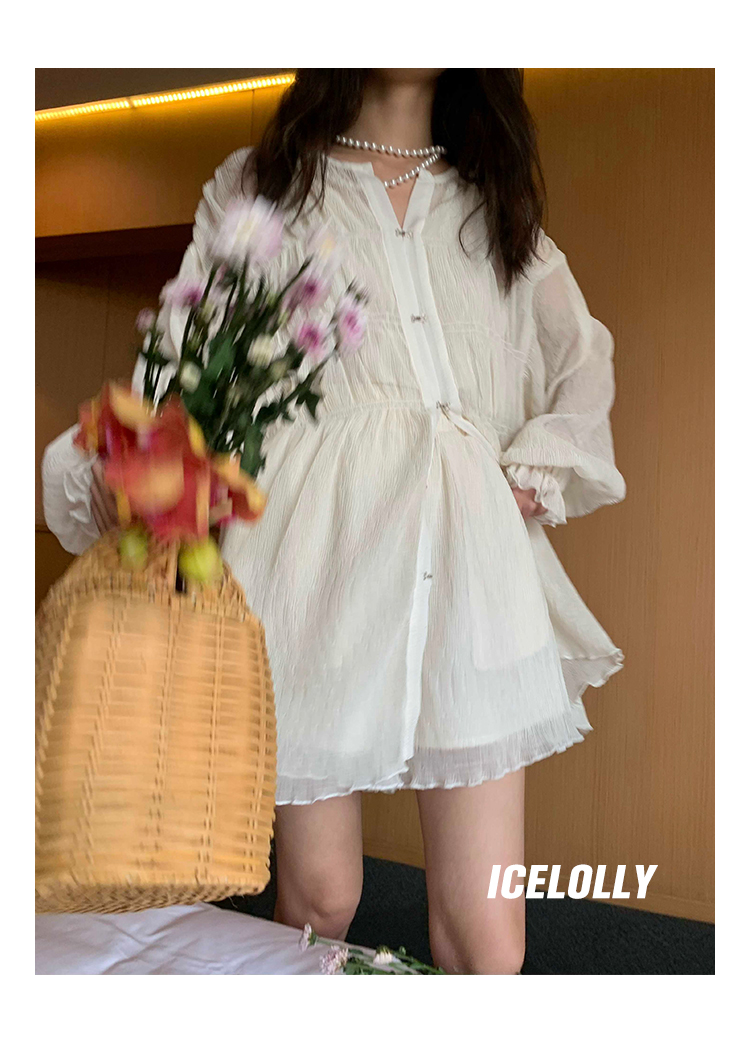 【69元福利款】ICELOLLY法式泡泡袖t襯衫女夏季防曬衫長袖上衣套裝