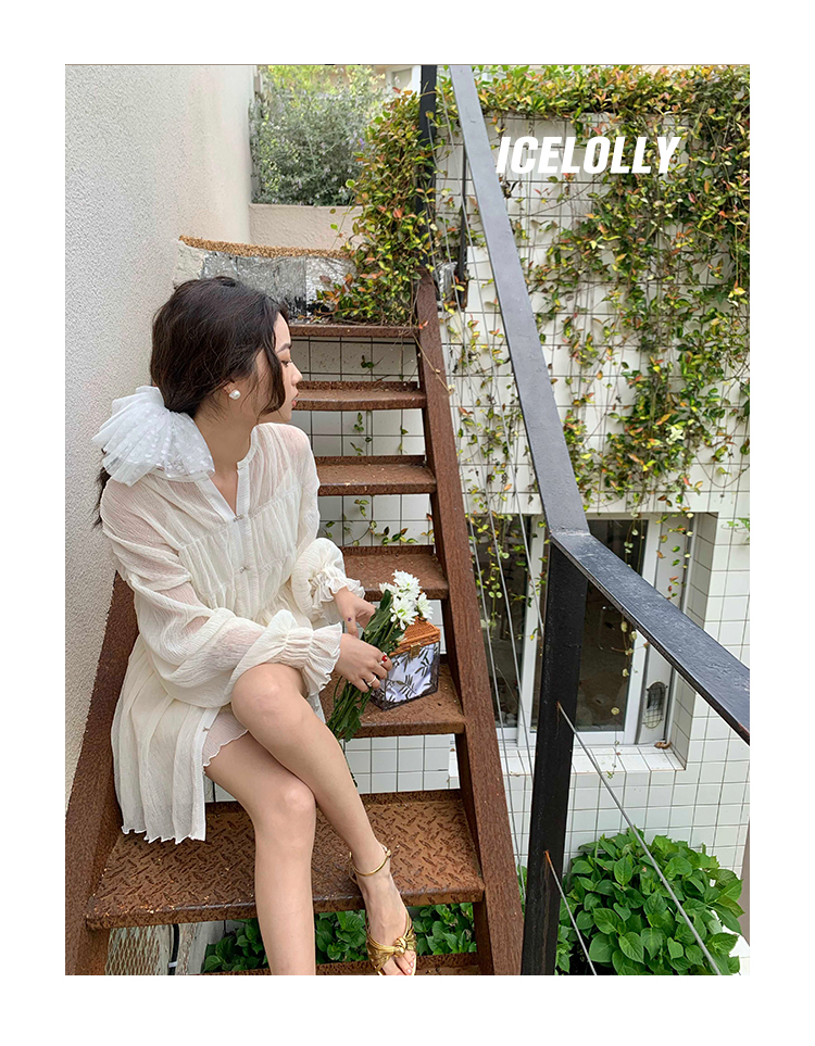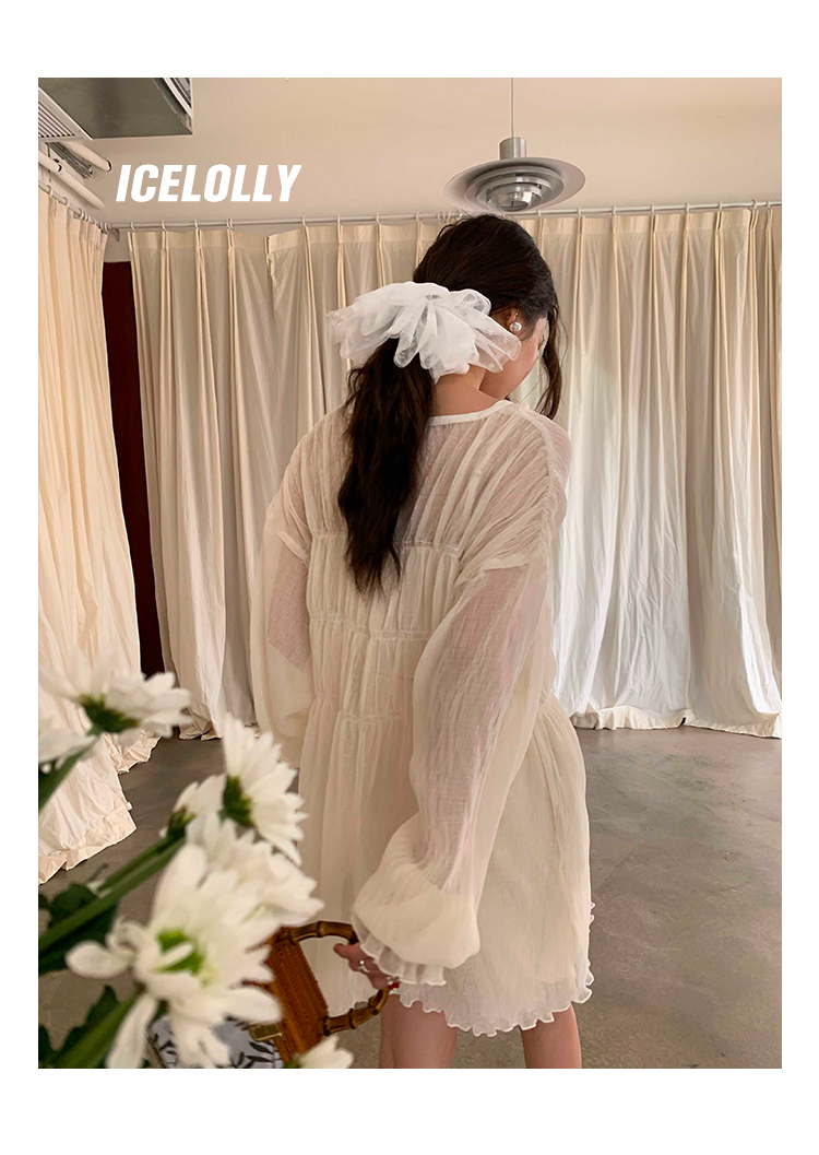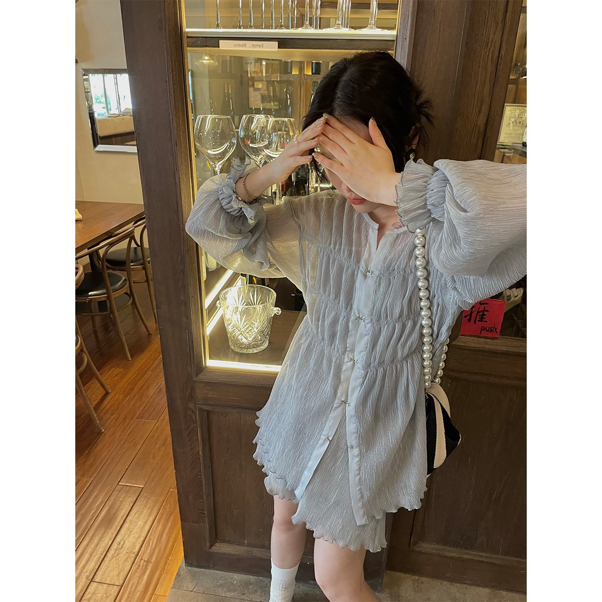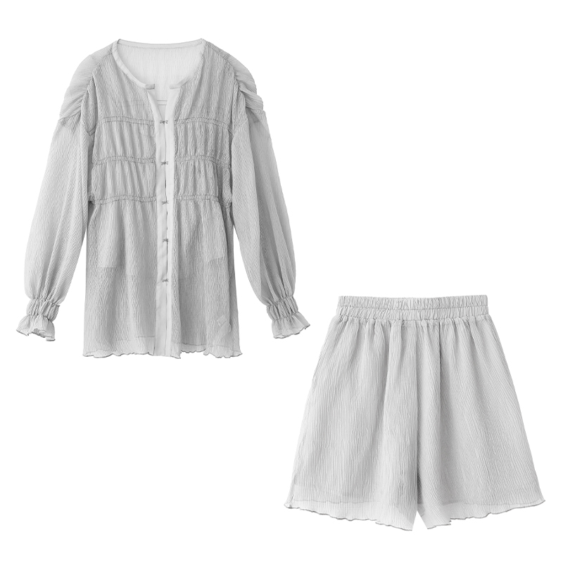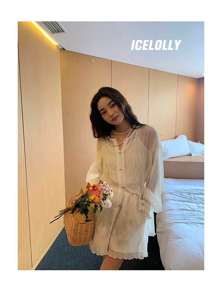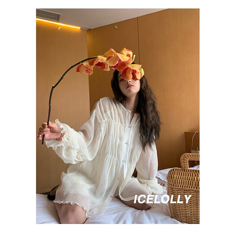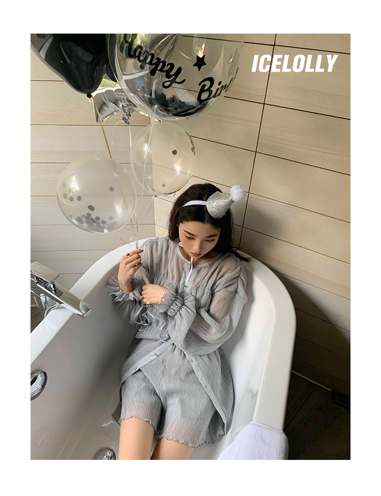 【69元福利款】ICELOLLY法式泡泡袖t襯衫女夏季防曬衫長袖上衣套裝