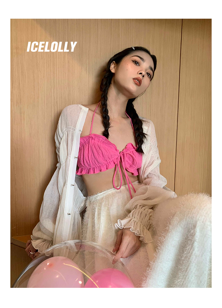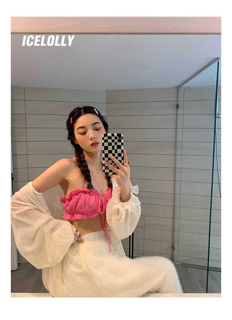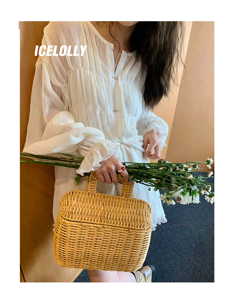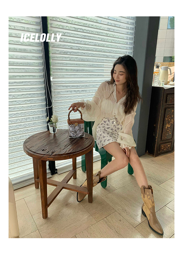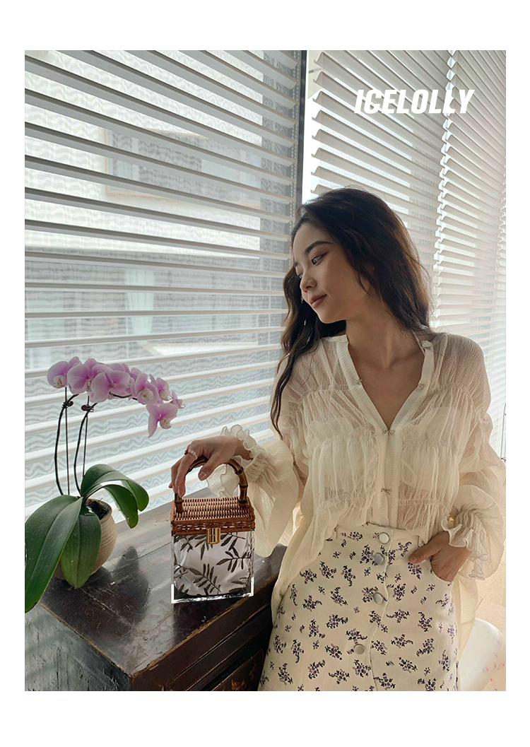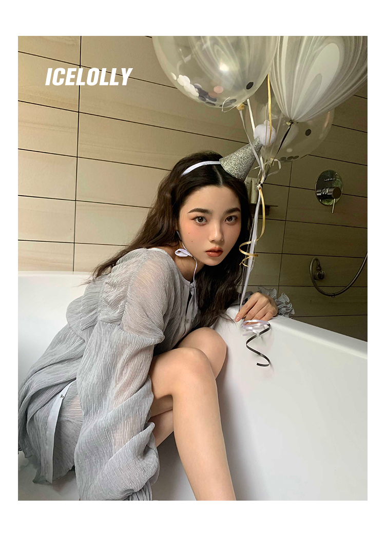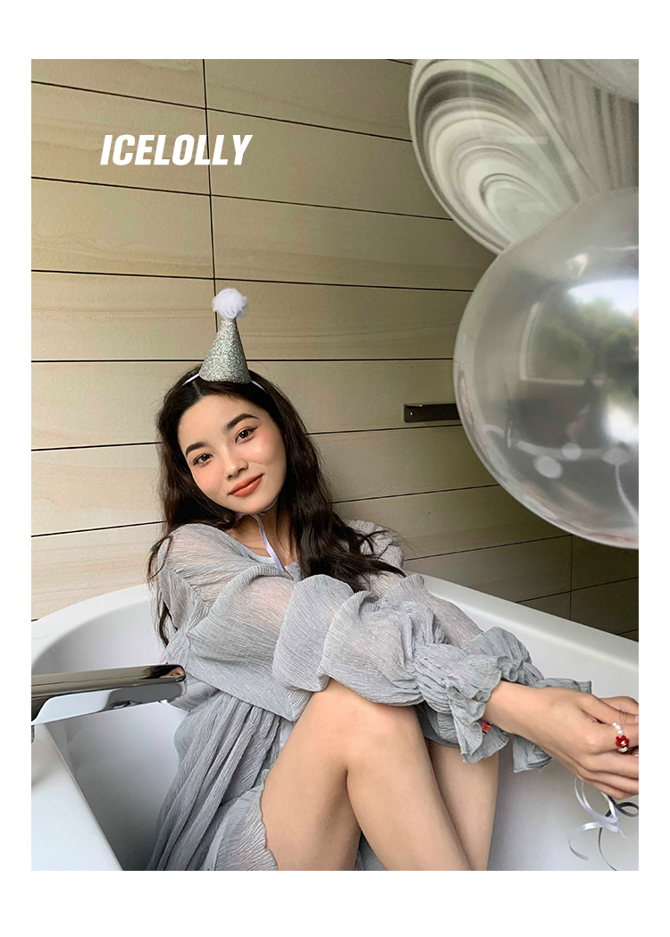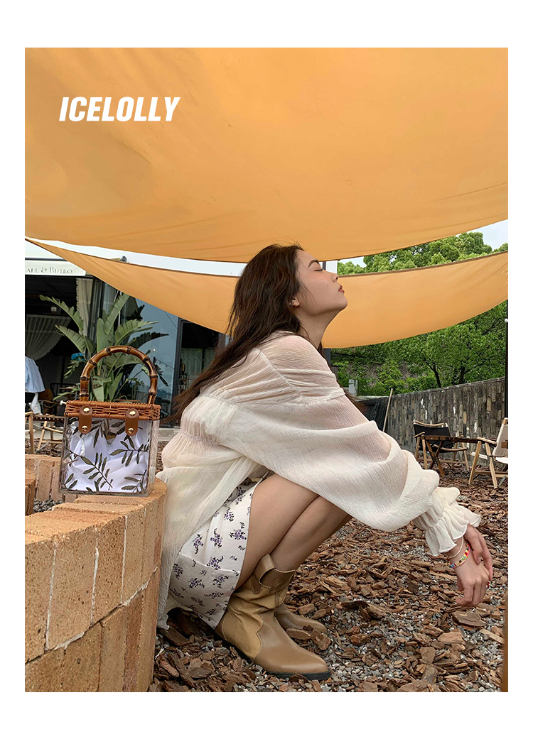 【69元福利款】ICELOLLY法式泡泡袖t襯衫女夏季防曬衫長袖上衣套裝