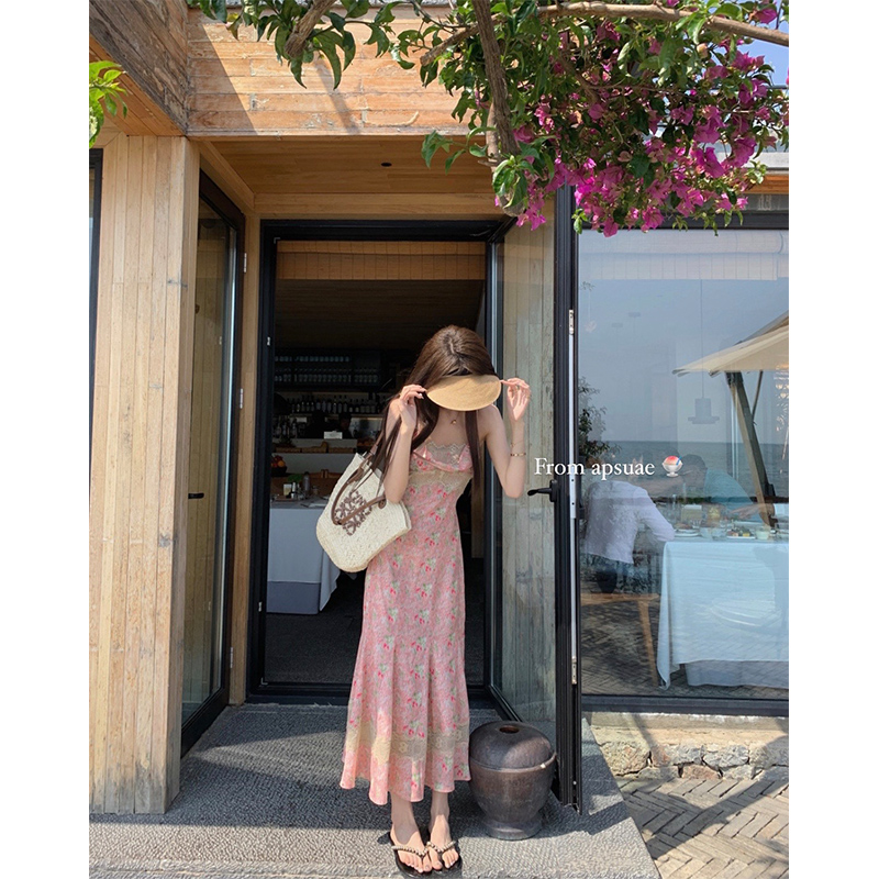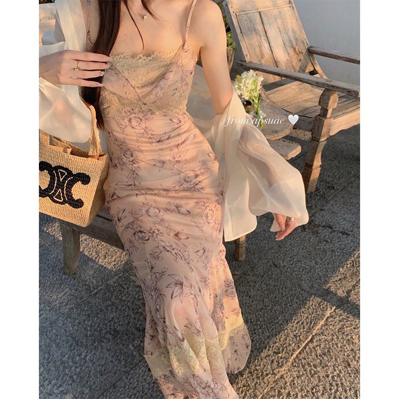 白水女【江南美人】新中式蕾絲吊帶洋裝女性感純欲修身包臀長裙