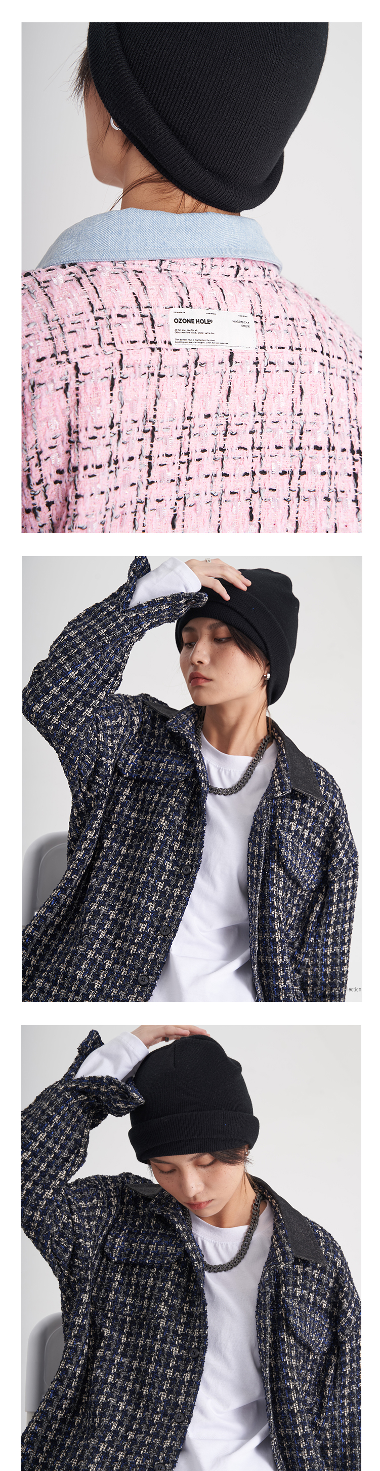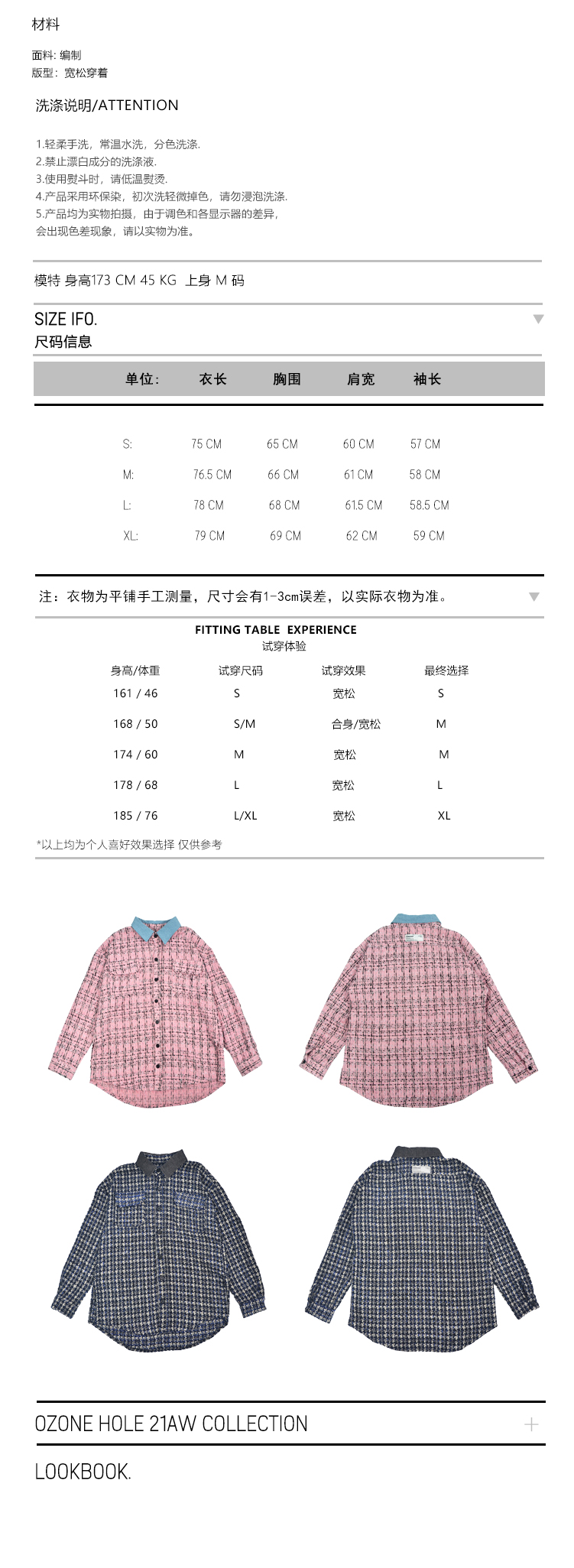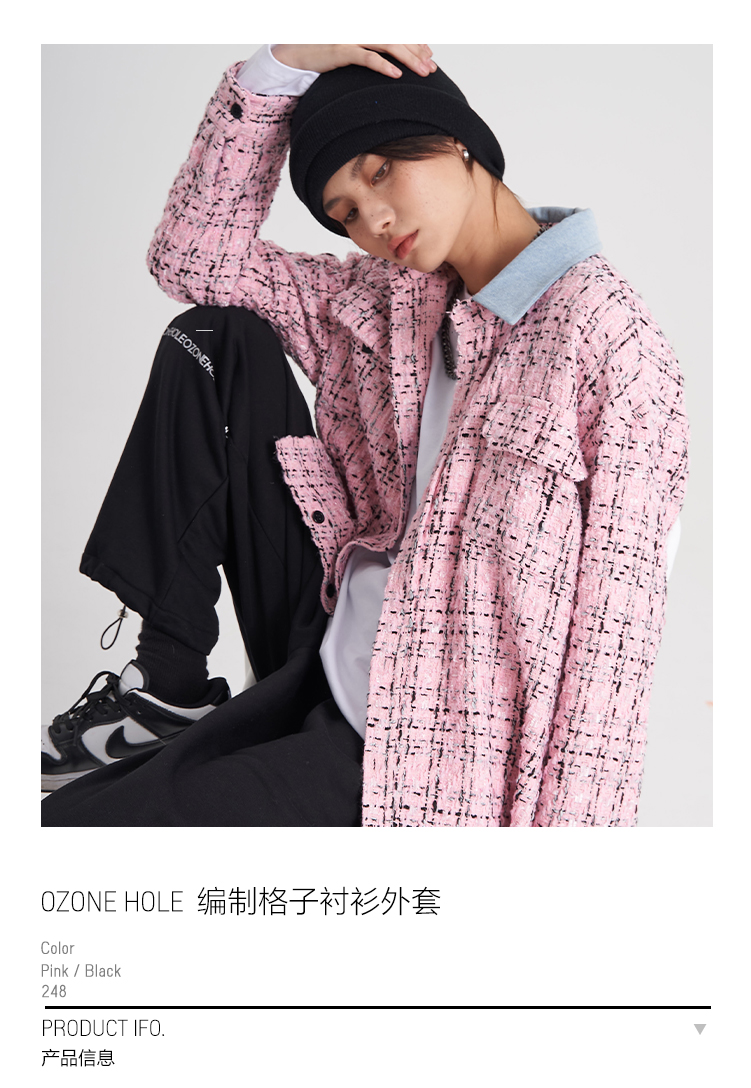 OZOL/Ozone Hole小香風襯衫潮牌格子男女情侶裝 寬鬆百搭顯瘦外套