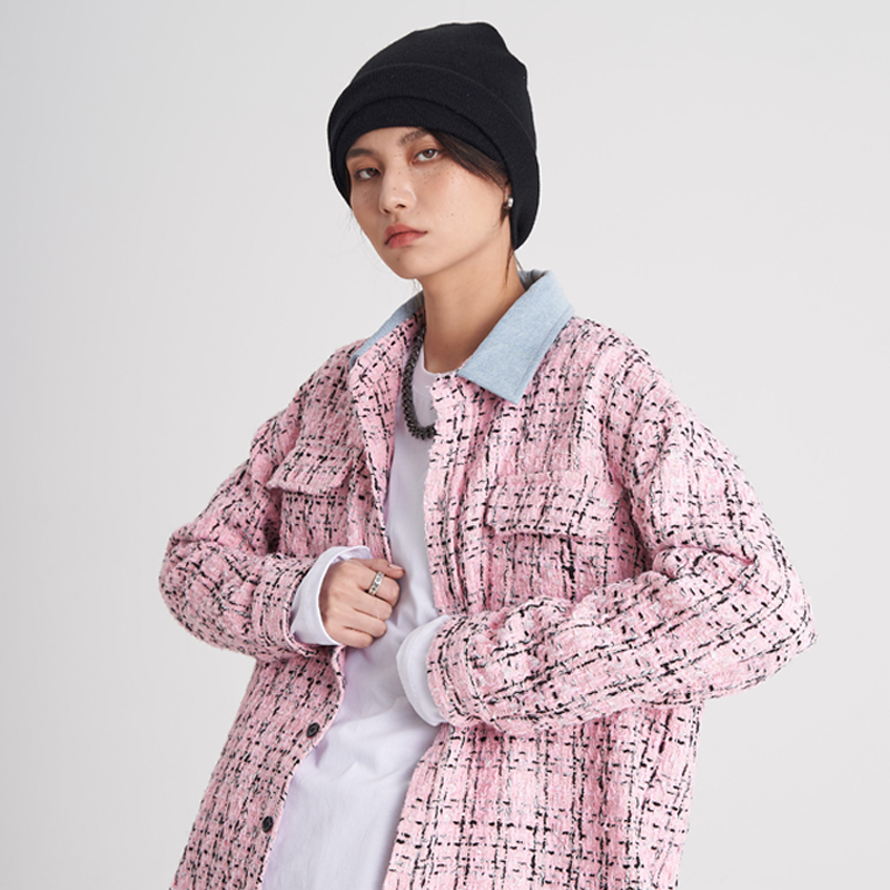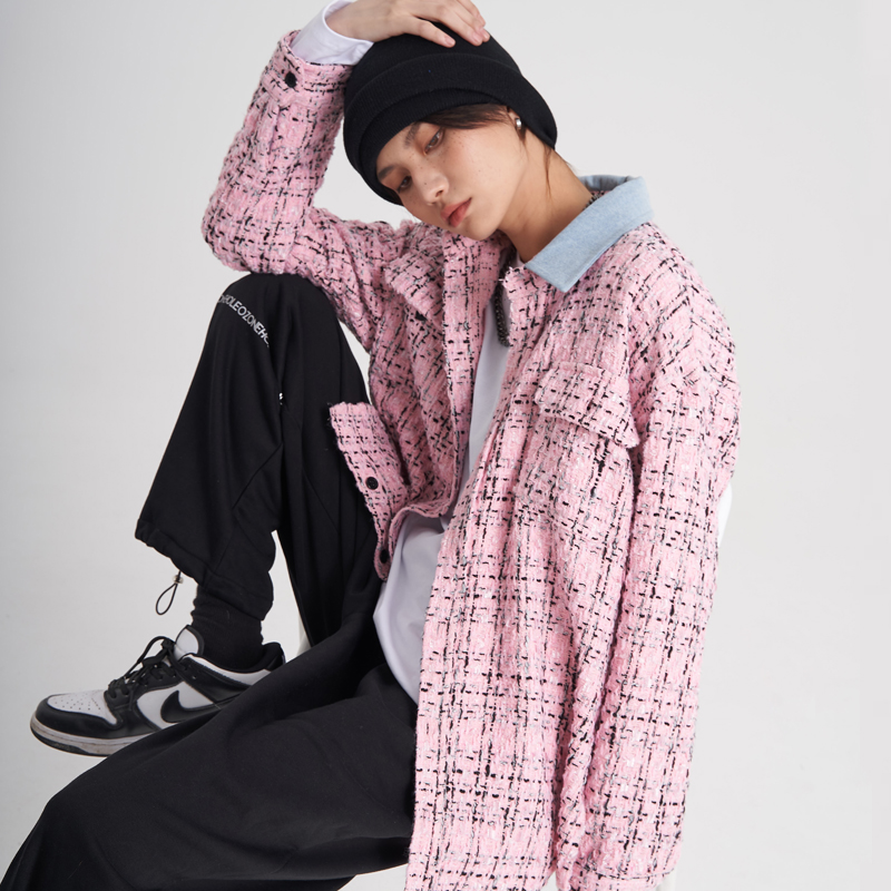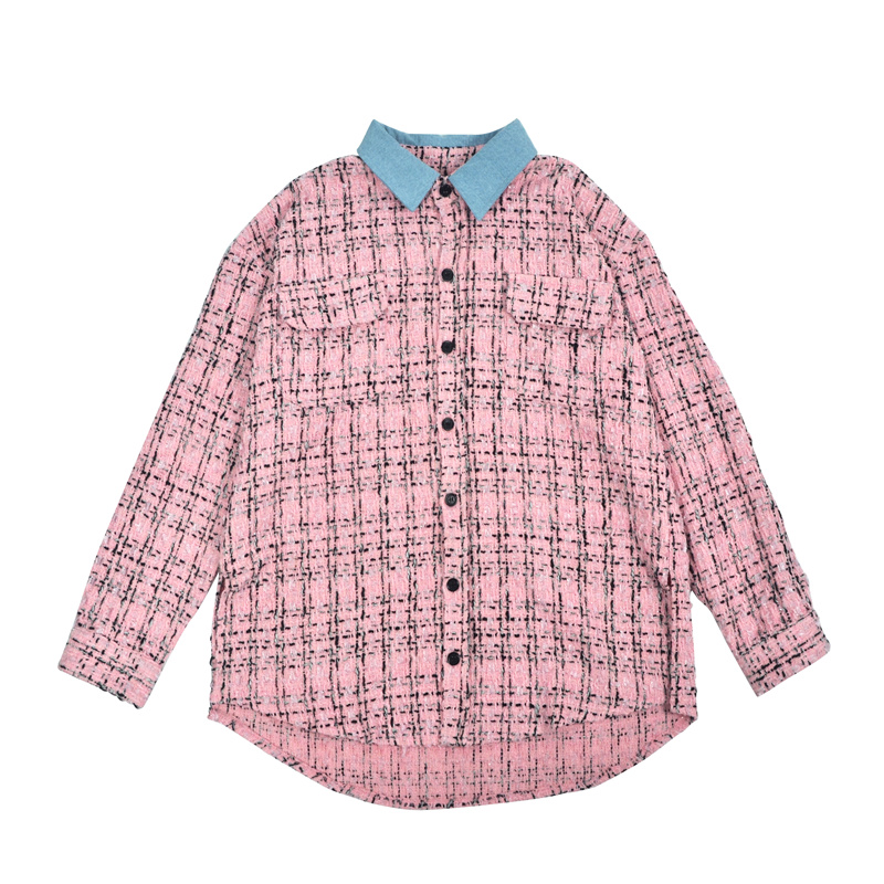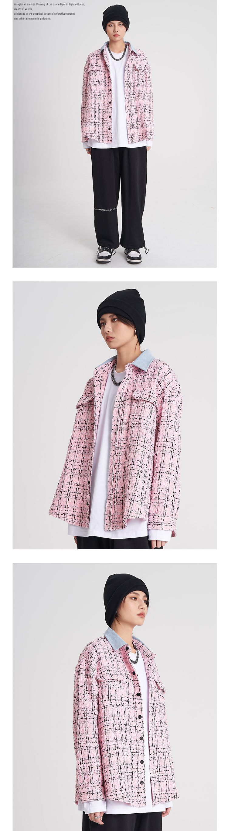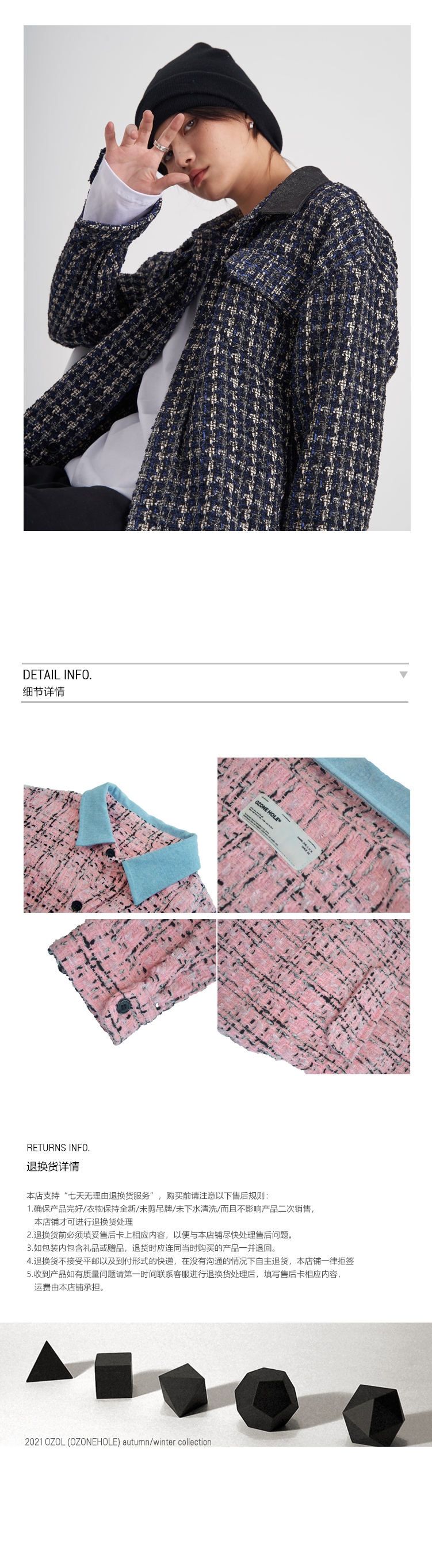 OZOL/Ozone Hole小香風襯衫潮牌格子男女情侶裝 寬鬆百搭顯瘦外套