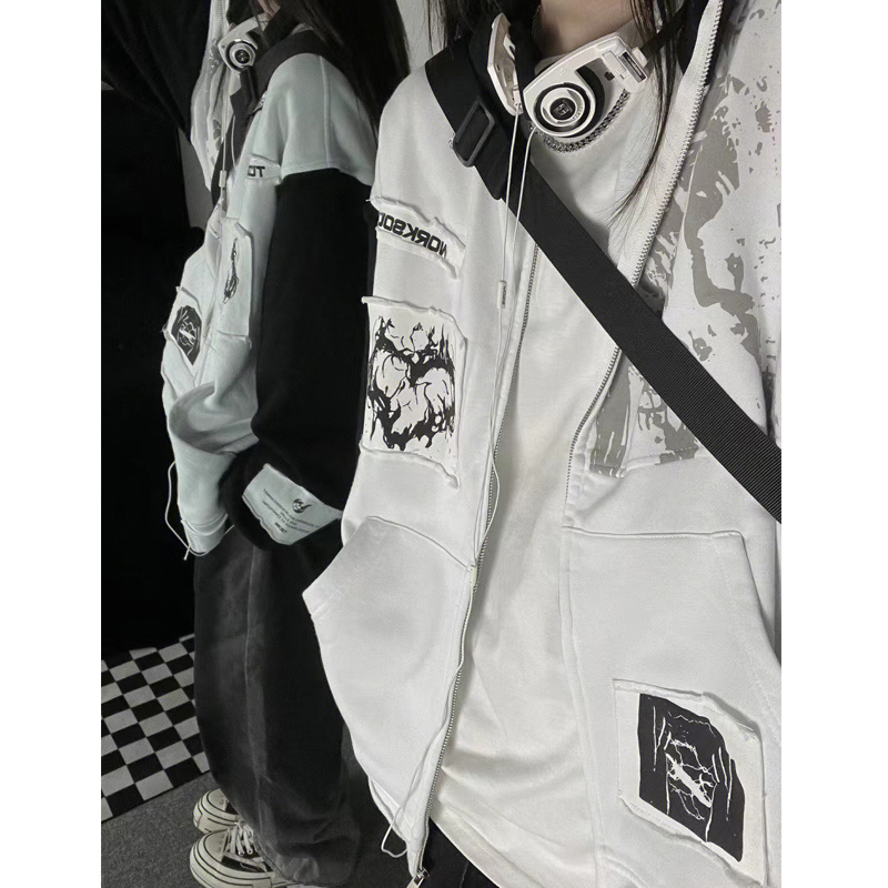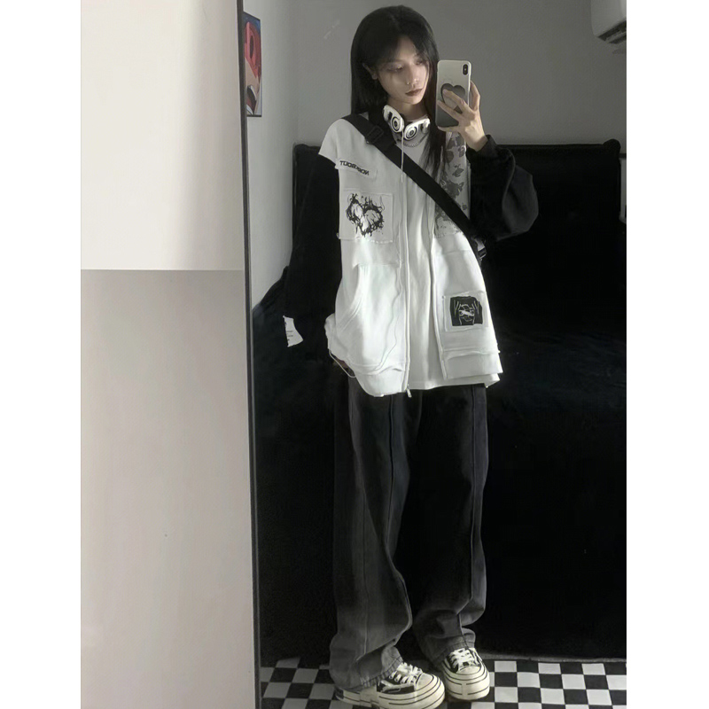 國潮牌美式復古hiphop衛衣外套女春季薄款oversize小眾高街棒球服