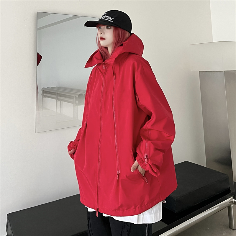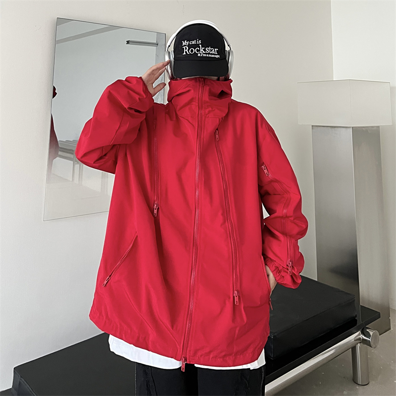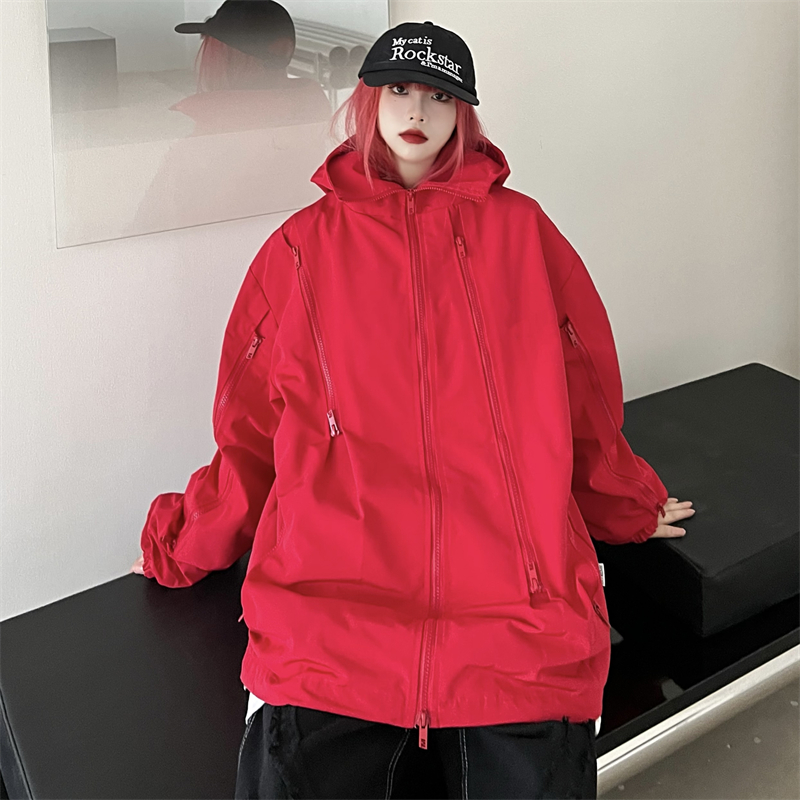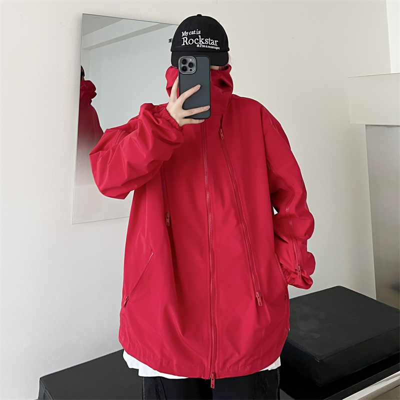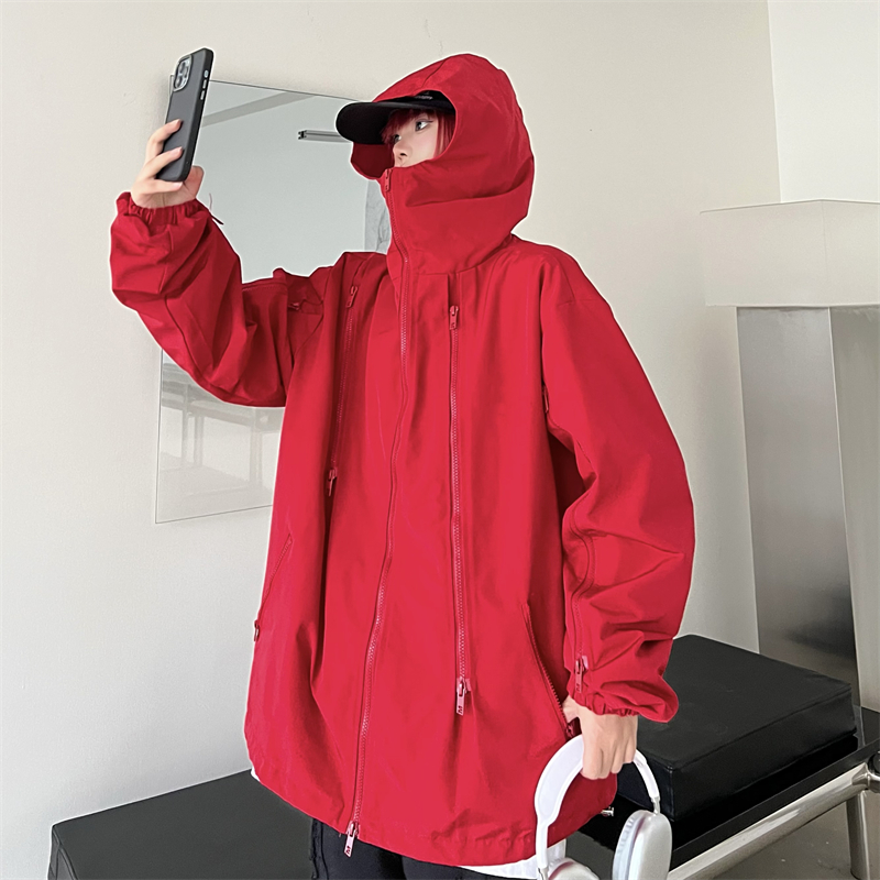 美式機能vibe衝鋒衣女大紅色vintage工裝夾克男進藏登山防風外套