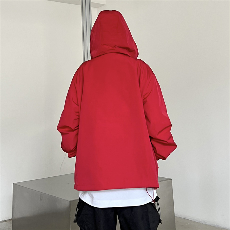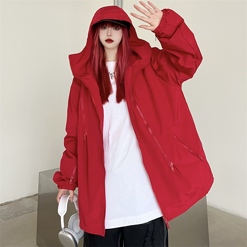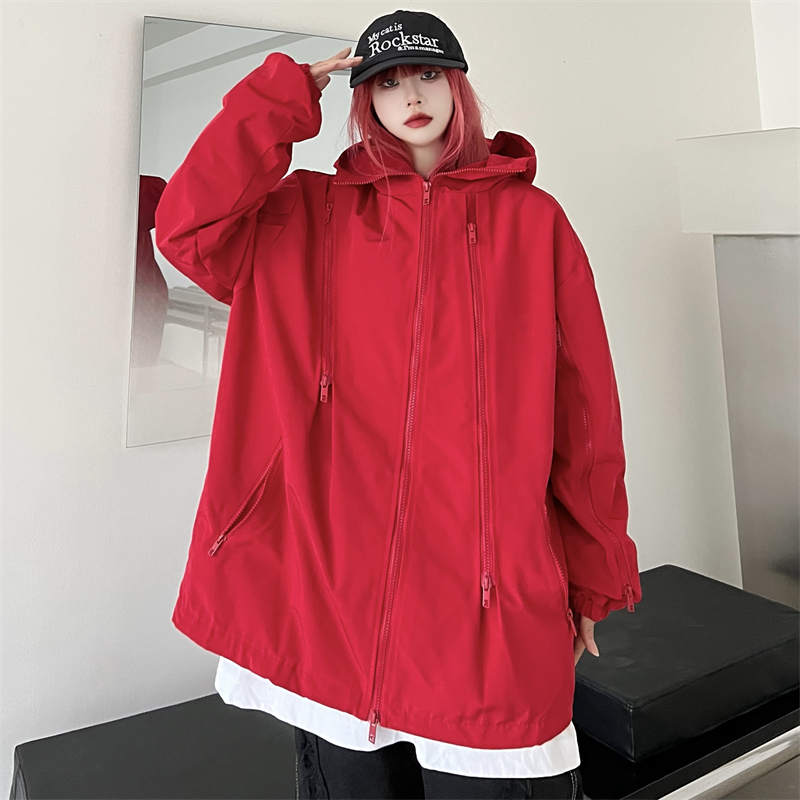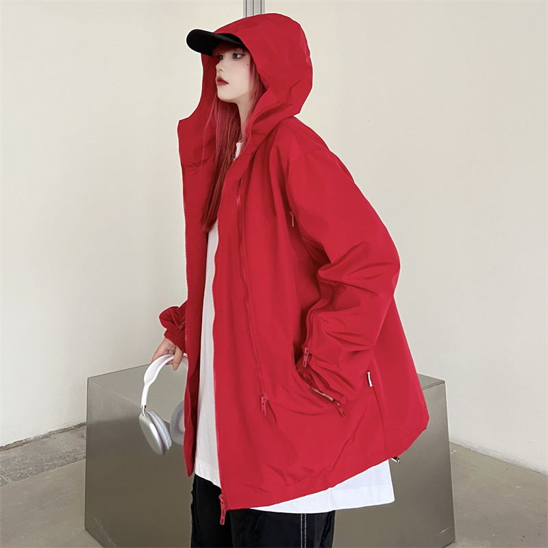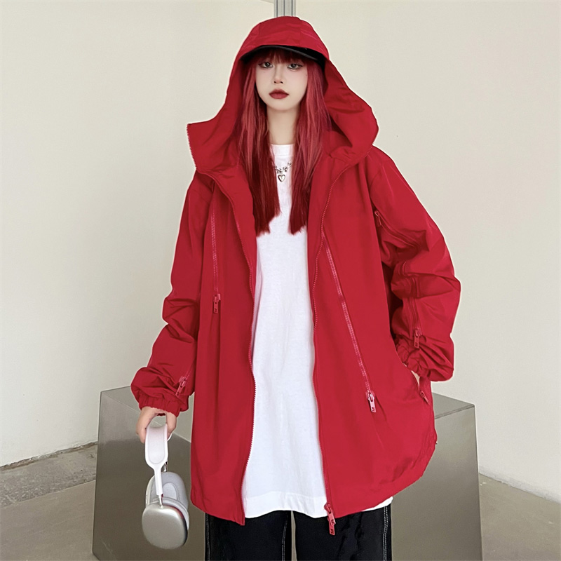 美式機能vibe衝鋒衣女大紅色vintage工裝夾克男進藏登山防風外套