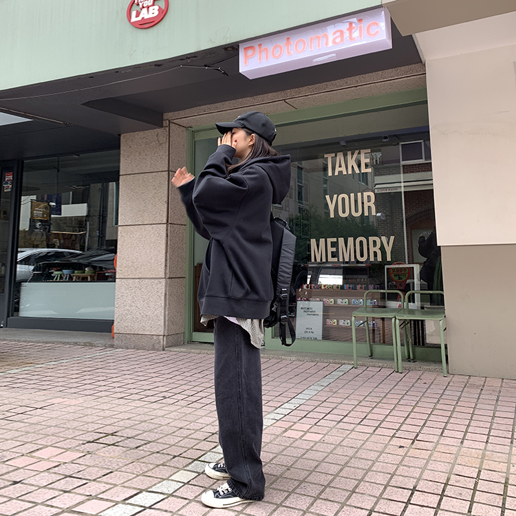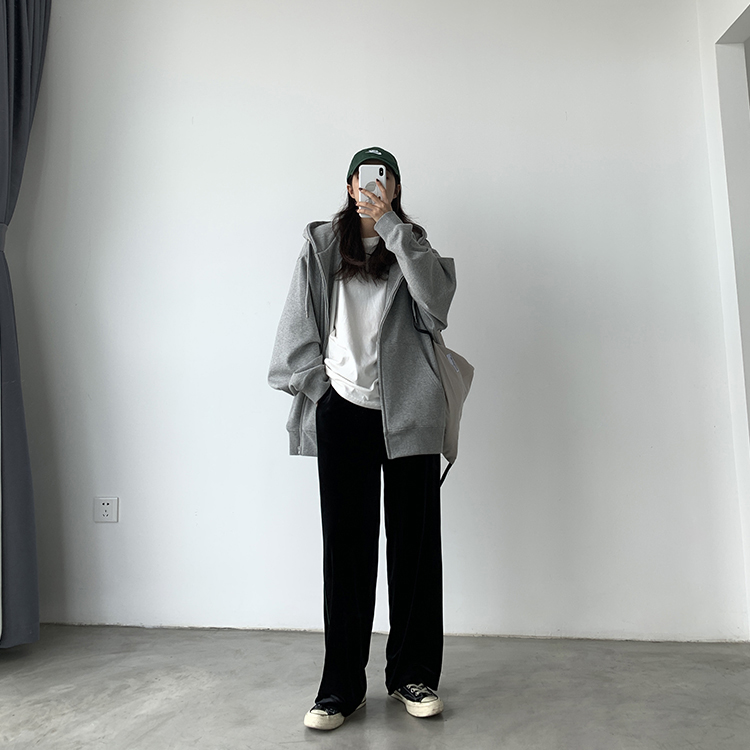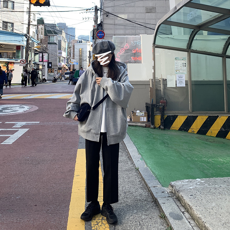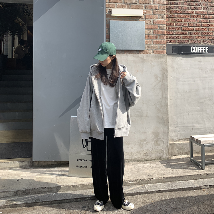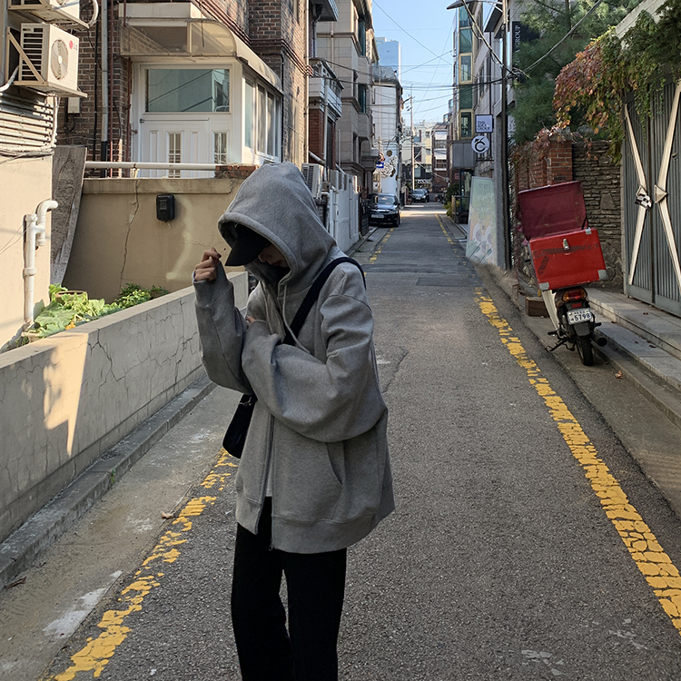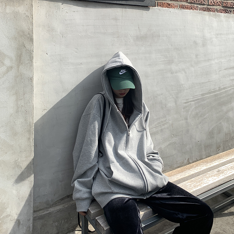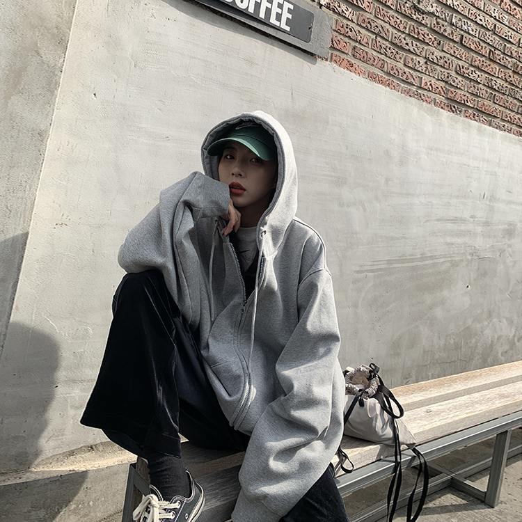 SIXI四喜家自制春季 拉鍊外套女連帽運動衫寬鬆韓版加絨百搭上衣
