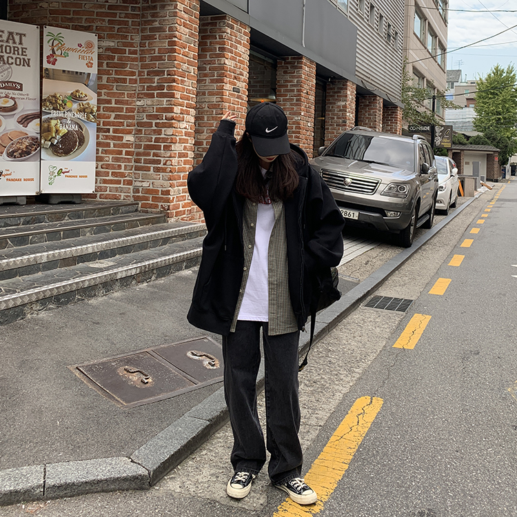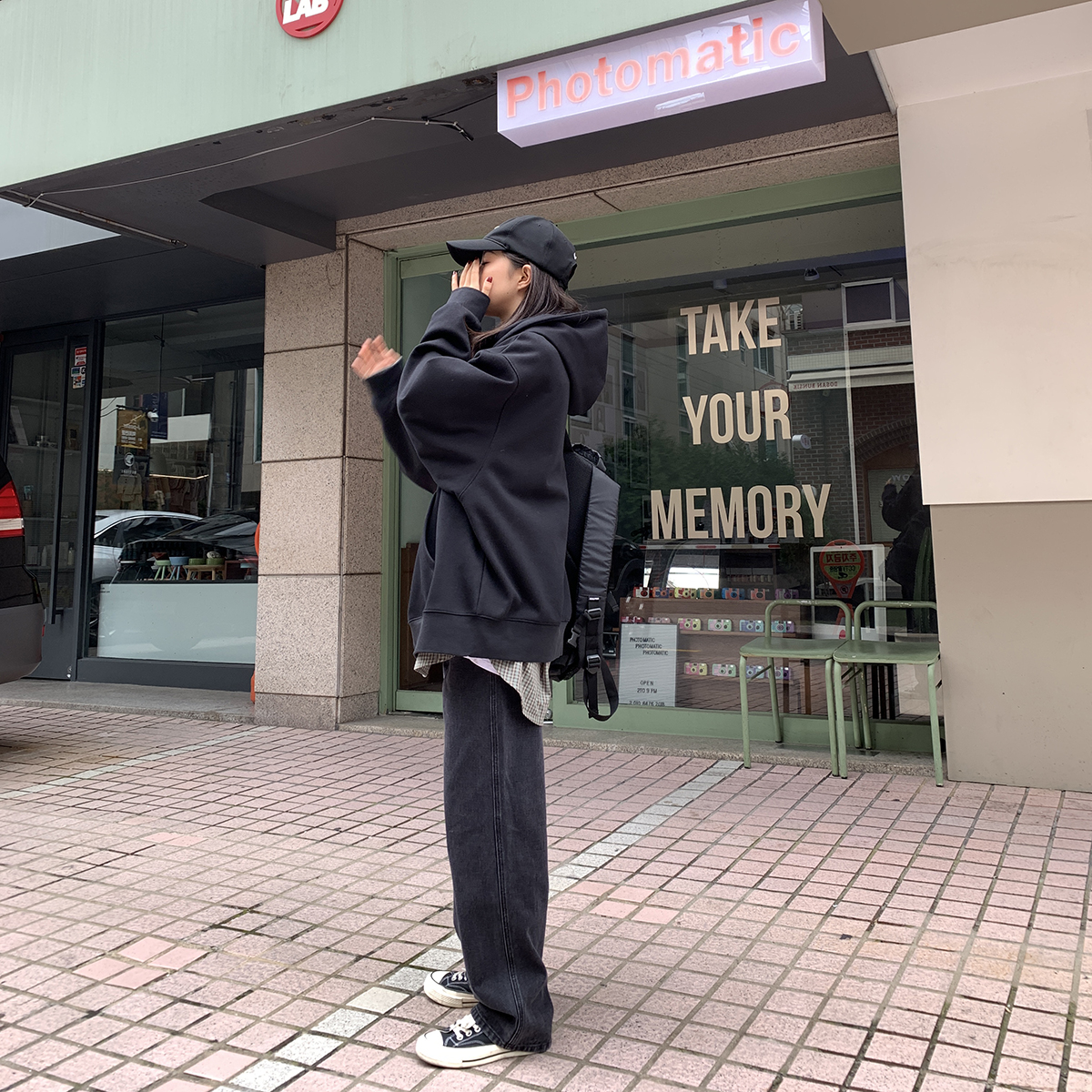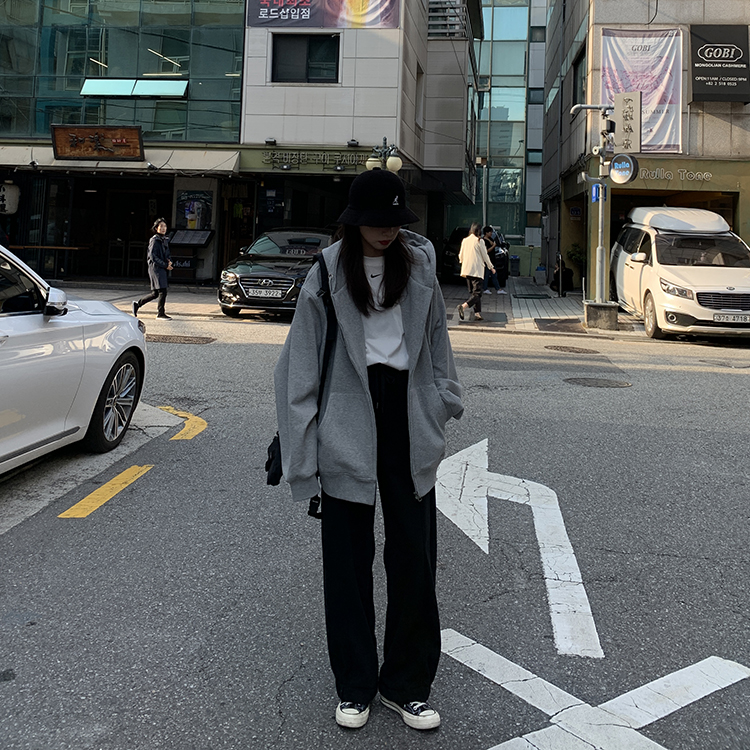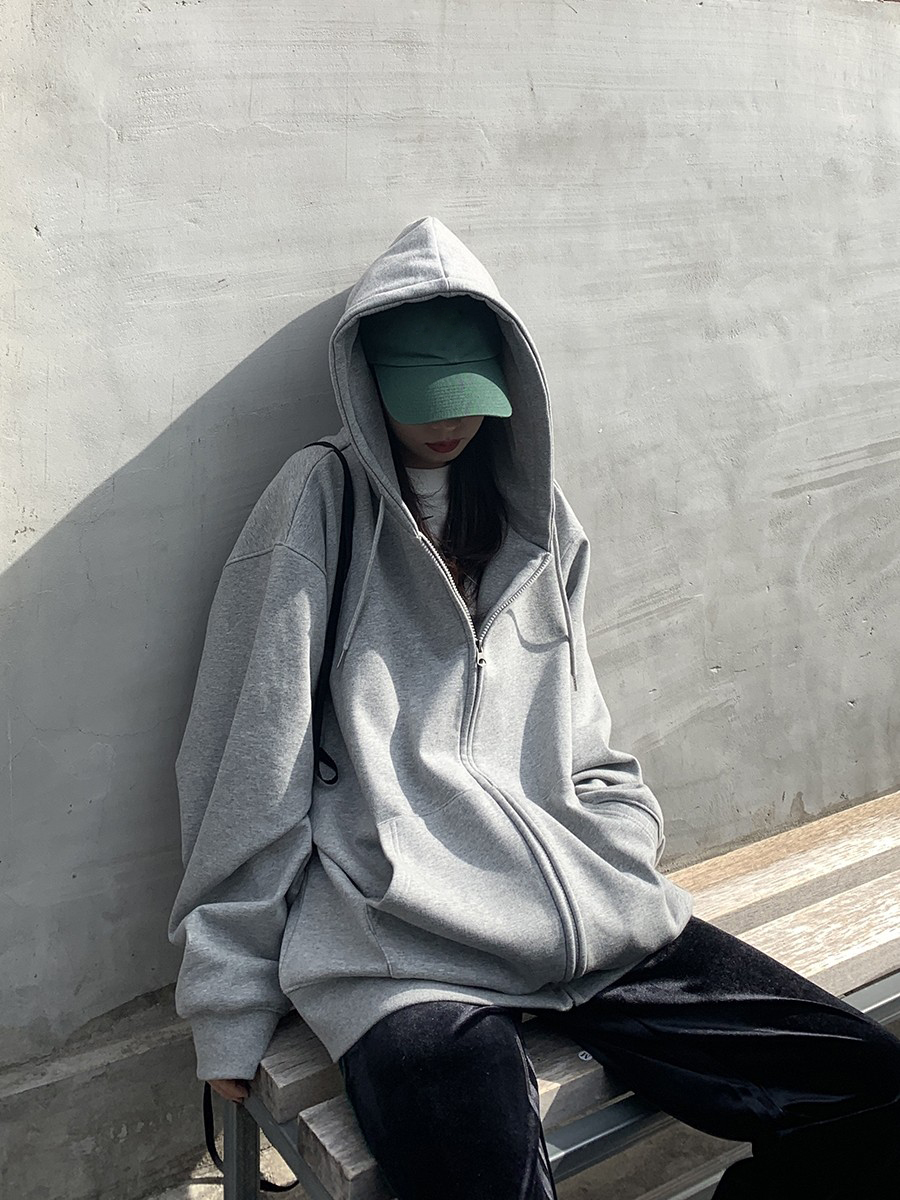 SIXI四喜家自制春季 拉鍊外套女連帽運動衫寬鬆韓版加絨百搭上衣