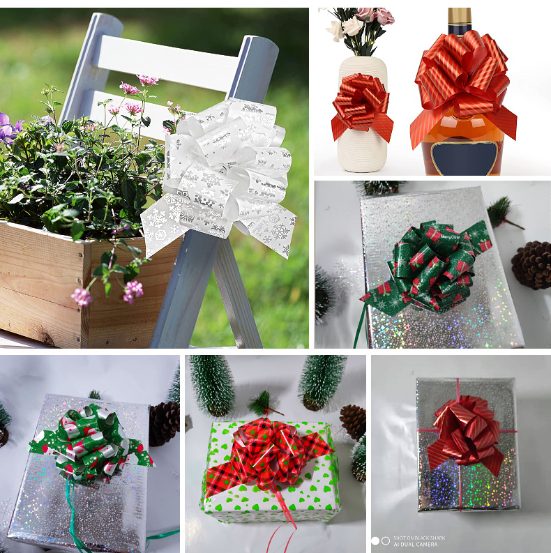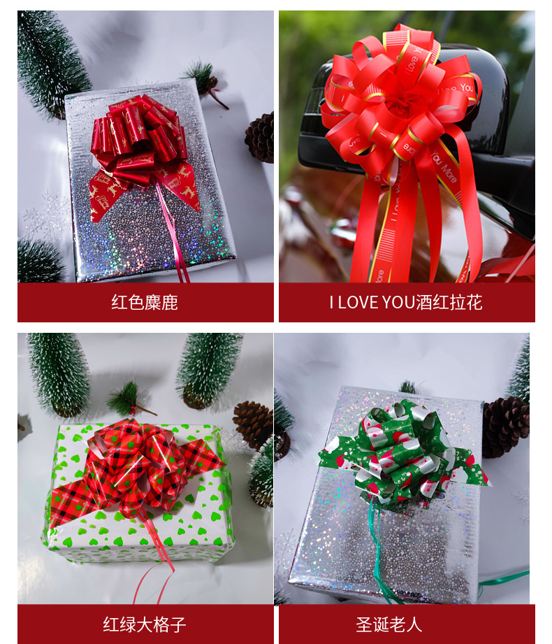 厂家直供50#纱线条礼盒包装拉花糖果袋束口圆形拉花婚车彩带塑料