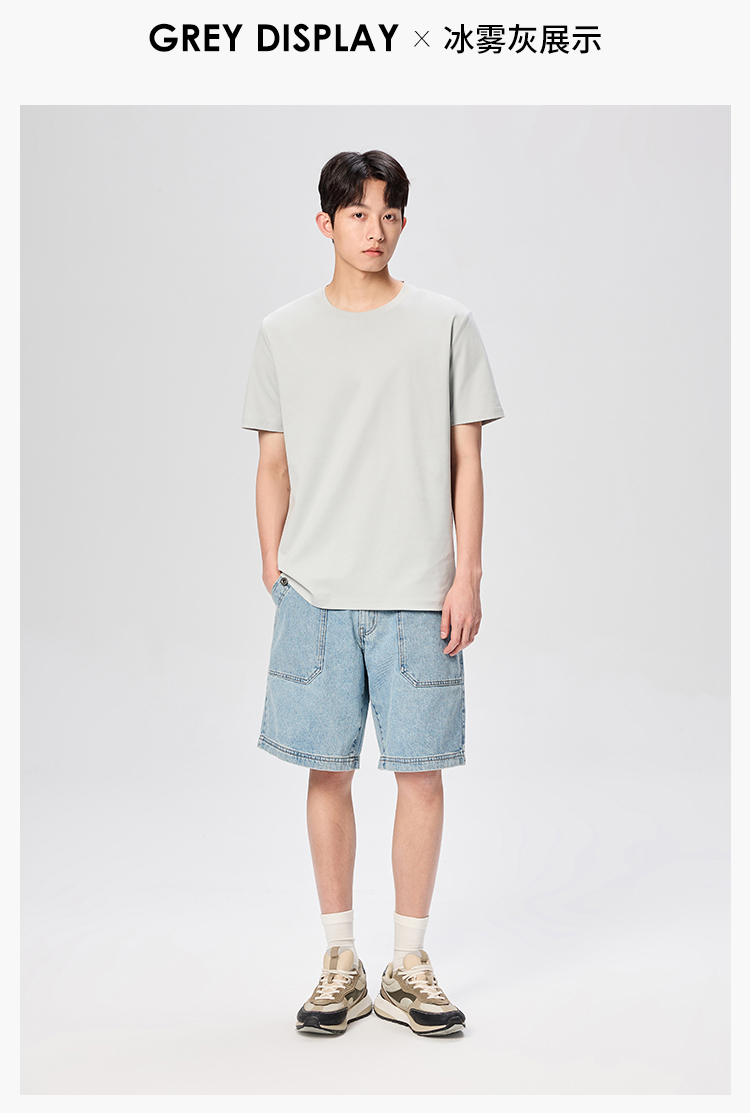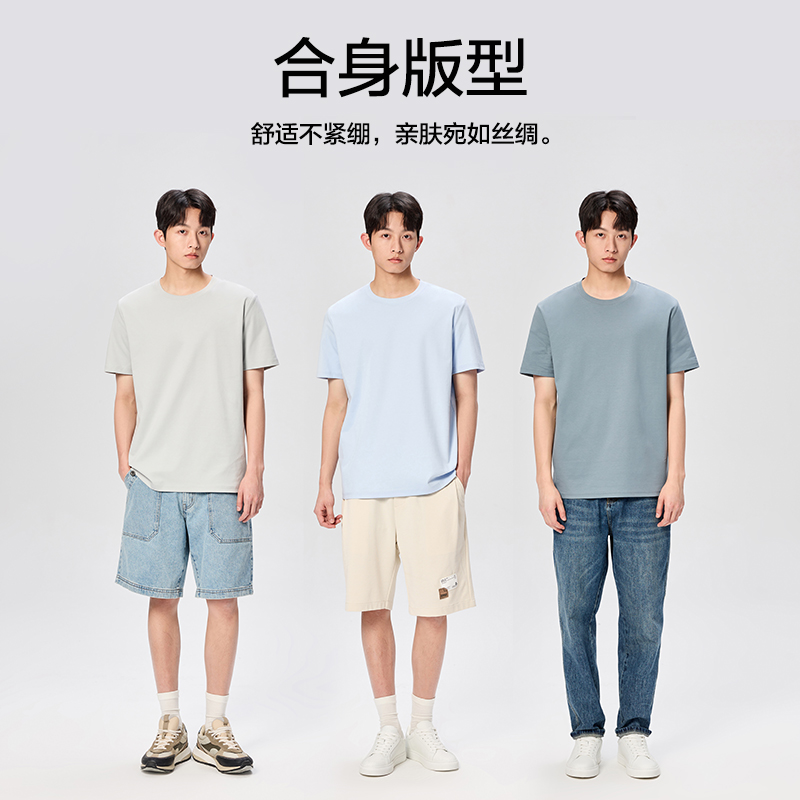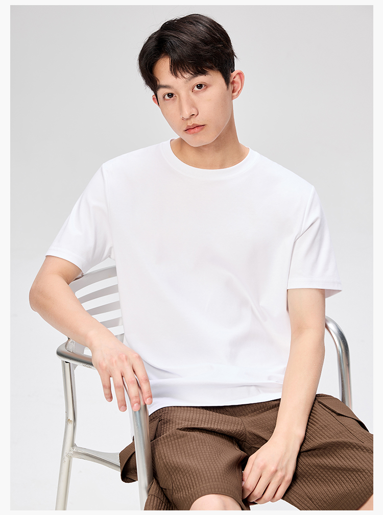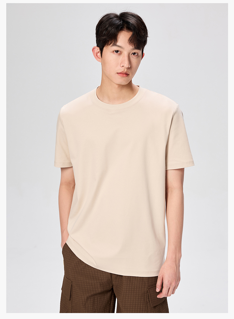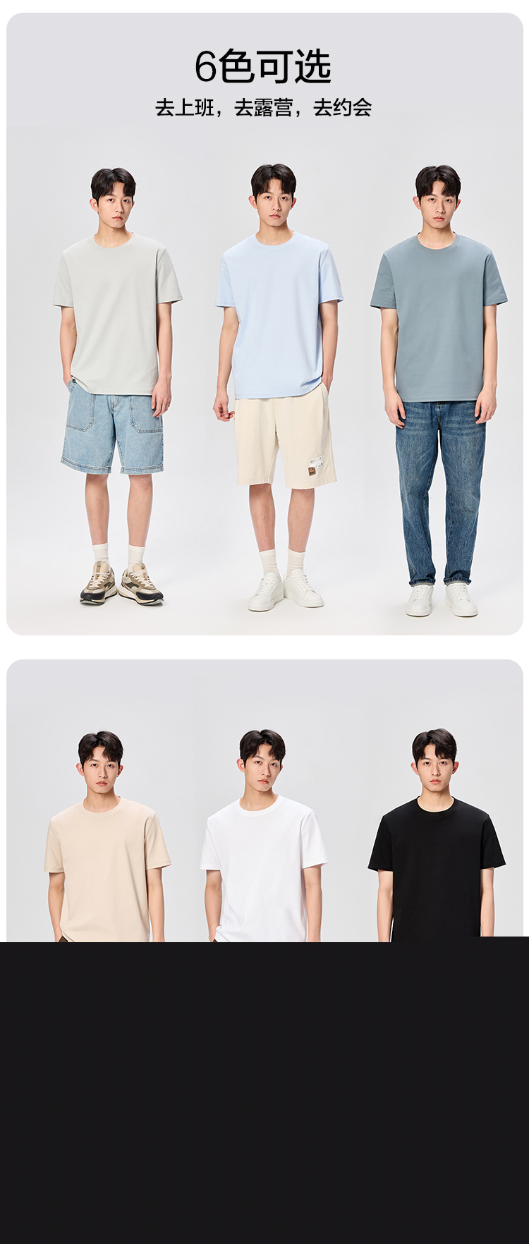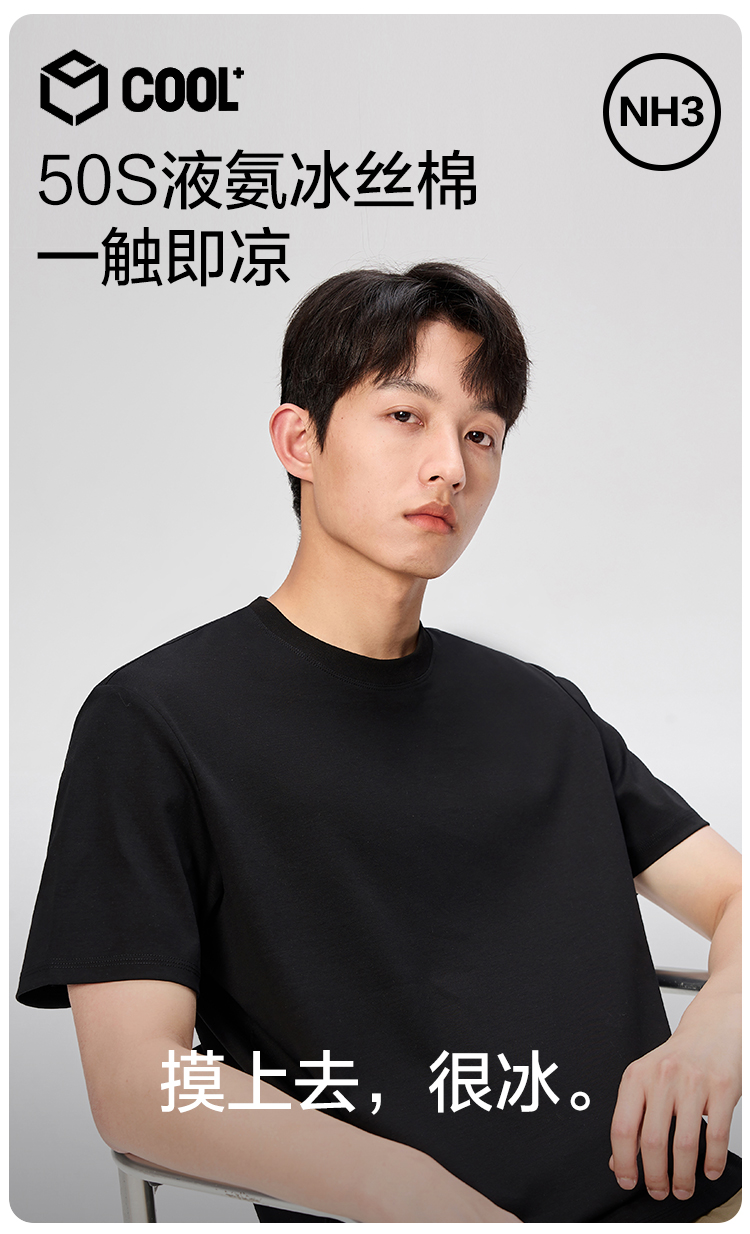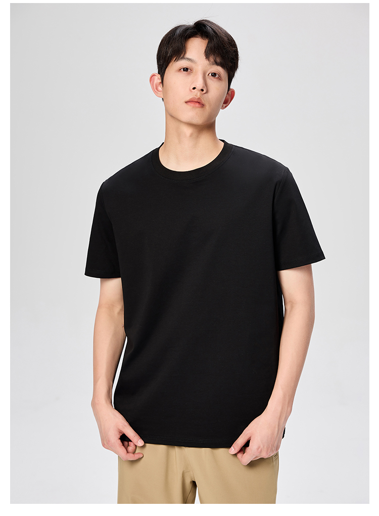 液氨冰絲棉 黑色涼感短袖t恤男2023夏季純色絲光長絨棉半袖打底衫