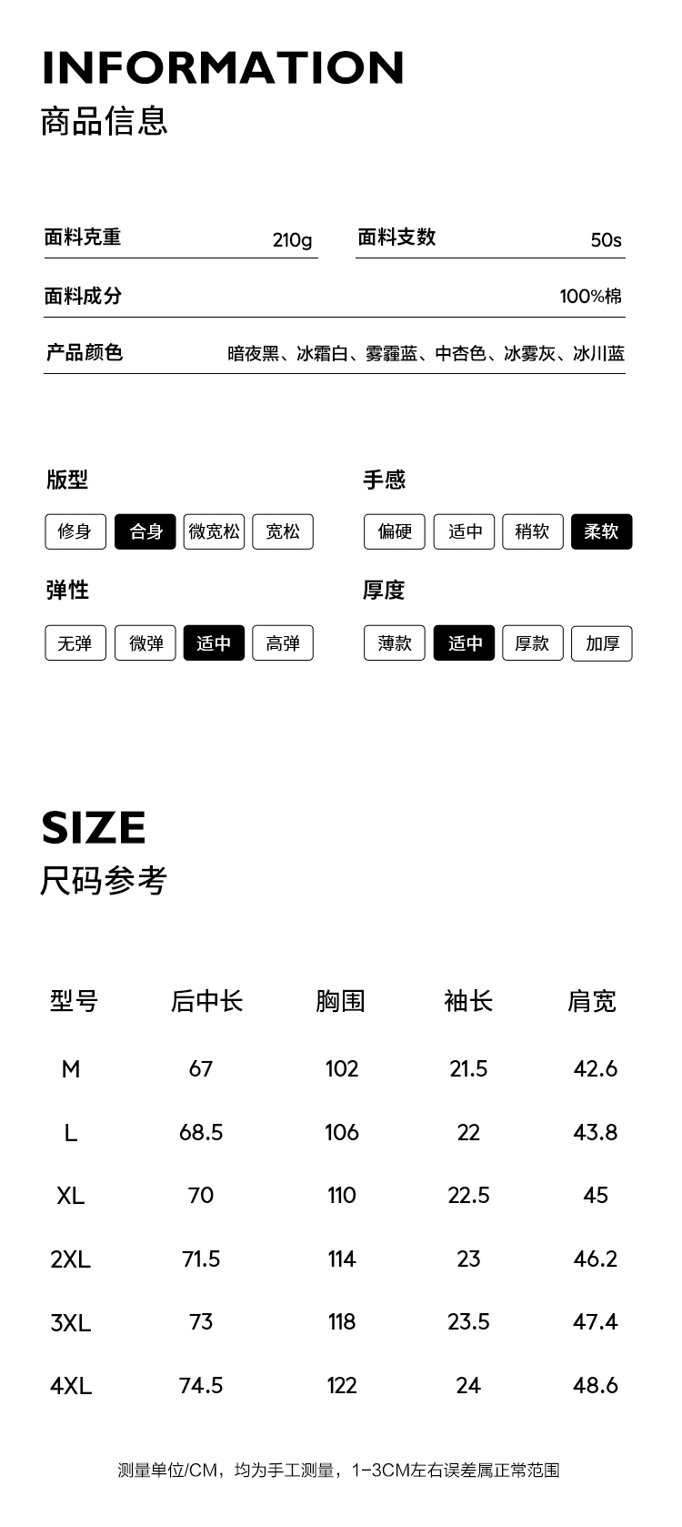 顏色 卡其色 暗夜黑 冰霜白 冰霧灰 中杏色 霧霾藍 西柚粉 冰川藍