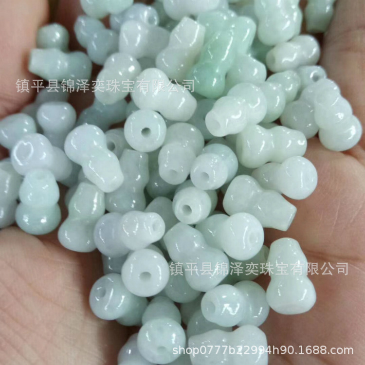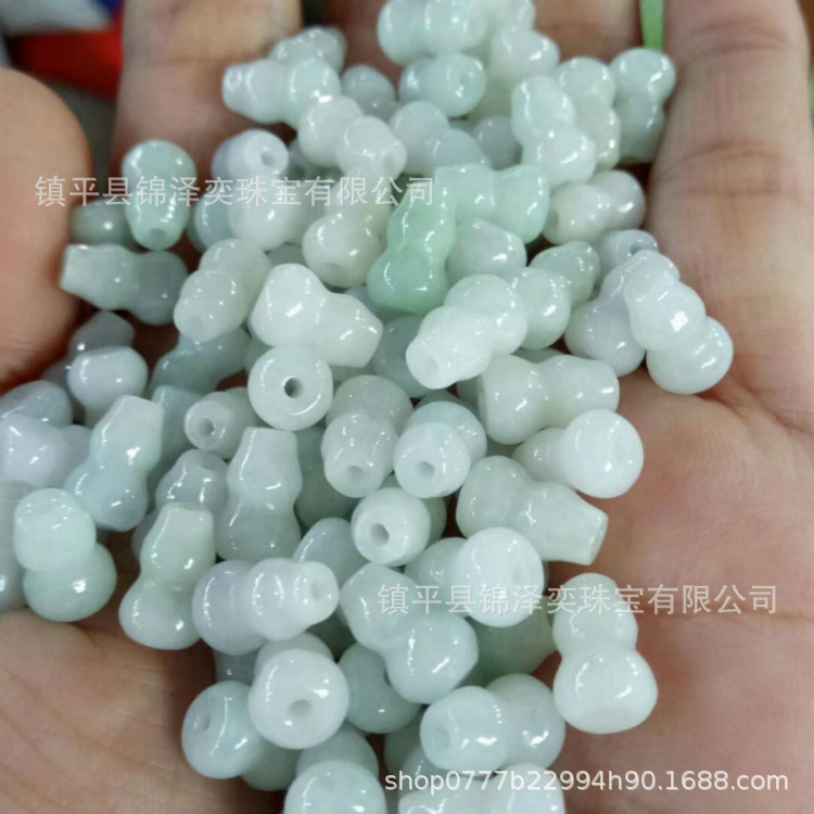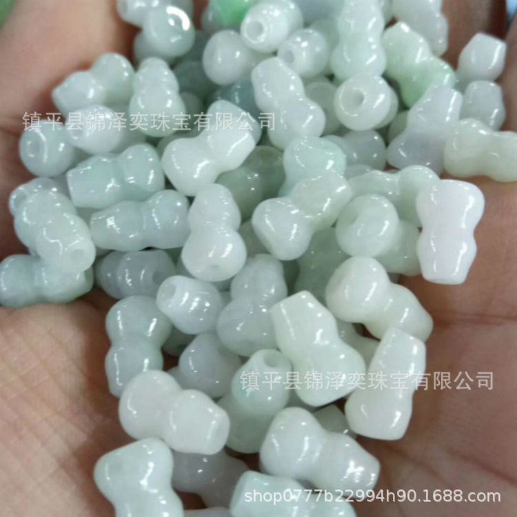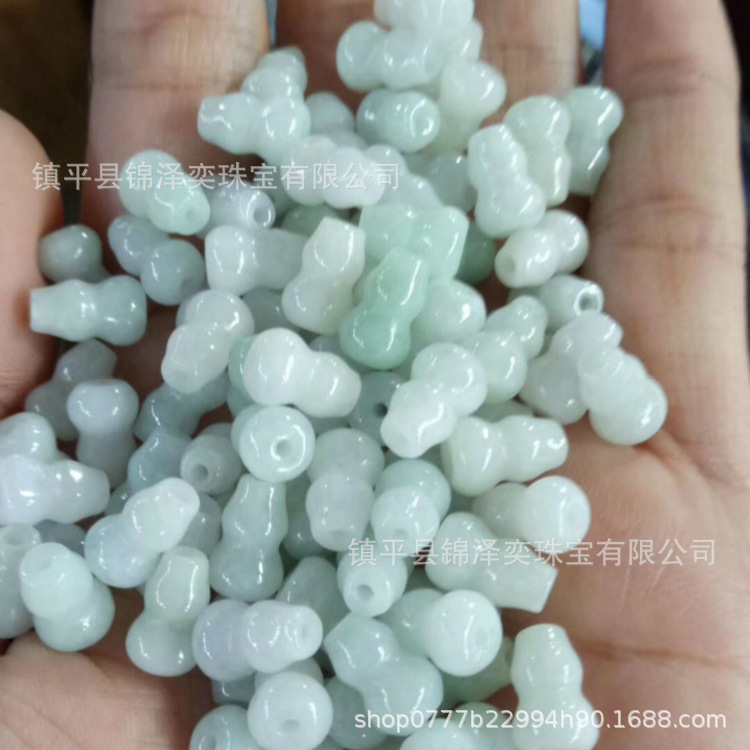 天然翡翠A货糯冰种小葫芦配件批发玉散珠子正品diy饰品配珠带底色